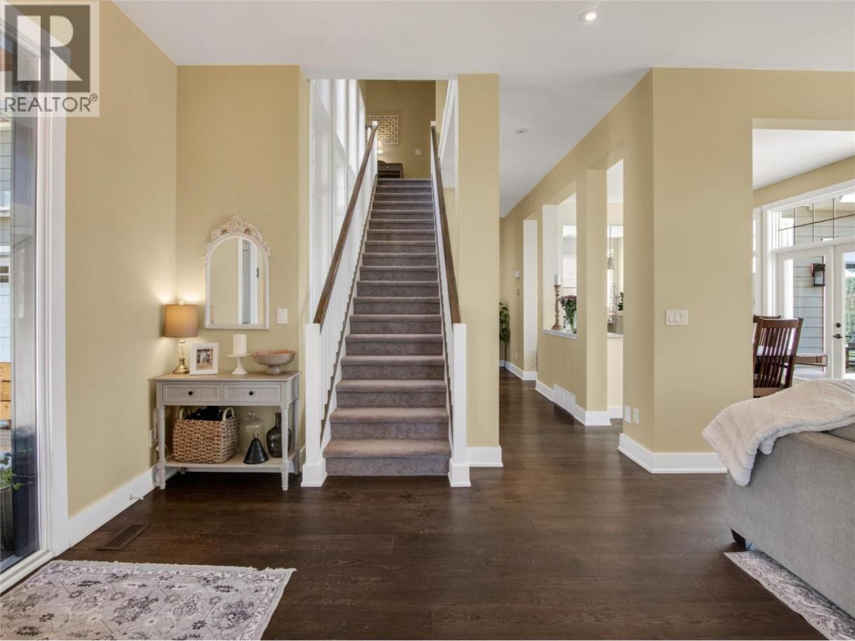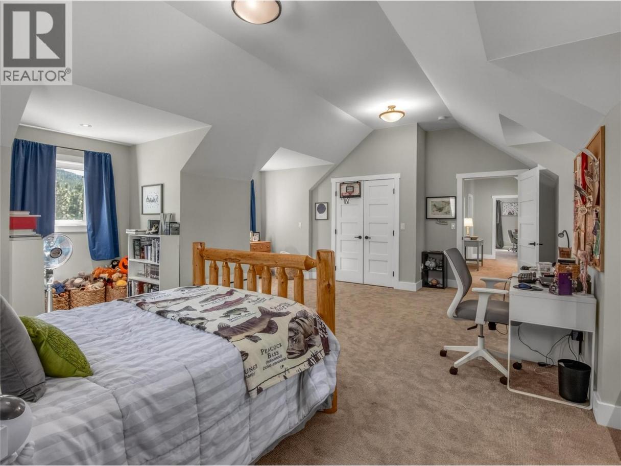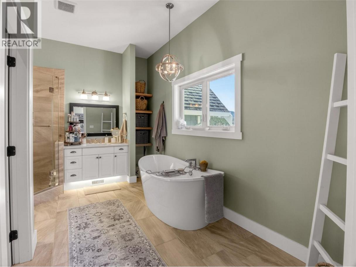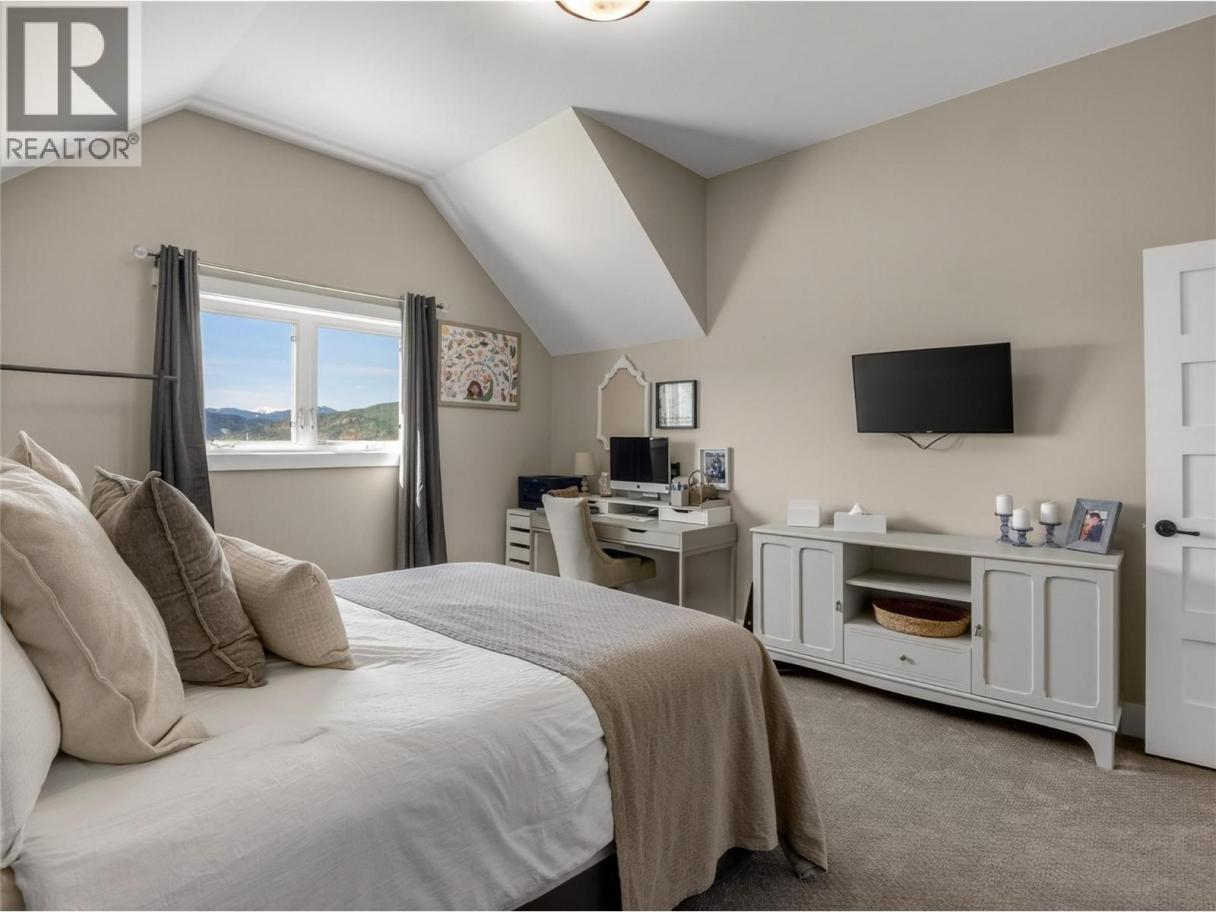 Perched above the Naramata Bench sits this once in a lifetime, completely private, legacy property on 17.15 acres with epic views! Built in 2016 this 4386sqft home has 4 bedrooms & 4 bathrooms with views from every window. As you enter the home you’ll notice the 10’ ceilings, hardwood floors, natural light, & views. The large living room has a stunning Giltin door wood fireplace, the gorgeous dining room has built ins, & both rooms have doors out to the beautiful front patio. The classic farmhouse style kitchen features quartz counters, gas stove, center island, tons of cabinetry, & access out to the South facing deck with BBQ adjacent to the kitchen garden beds. Off the kitchen is a 2nd family room with a cozy propane fireplace & 2 sets of patio doors for indoor/outdoor living. The upstairs has 10’ ceilings, laundry, a large guest room, huge kids room that could be divided into two, and the stunner primary suite complete with walk in closet, gorgeous ensuite with soaker tub and shower & double vanities + a private deck to take in the sunsets. The ICF basement has 9’ ceilings & features a rec room big enough for a pool table, a blaze king wood stove, & a wine bar. Theres also a 4th bedroom, bathroom, & an office. The irrigated yard has about a .5 acre fenced with garden beds & a chicken coop, plenty of room for a pool, + 2 acres behind the house in a field. Live with total privacy & access to three blind mice bike park, frisbee golf, KVR, 3 Mile Beach & pump track. (id:6769)