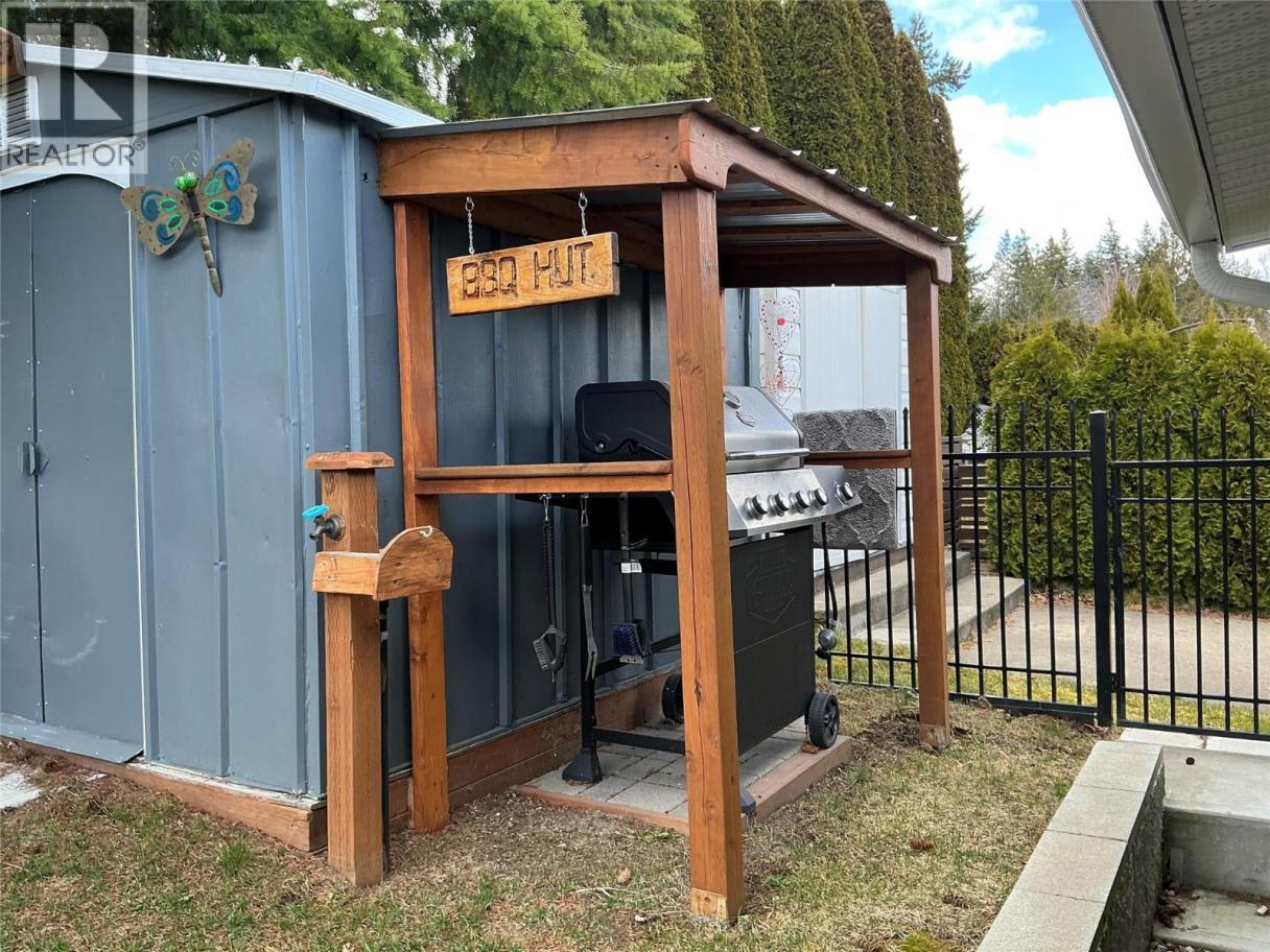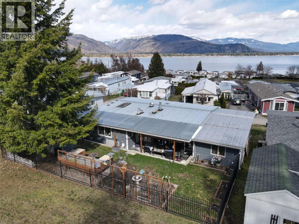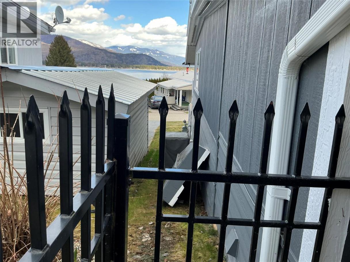 You said you need room! Check out the floor plan on this oversized double-wide in Shuswap’s most sought after WATERFRONT MHPark for seniors. Backing onto expansive green space, this property offers supreme privacy with southern exposure for an optimal gardening experience. Lake views of Copper Island can be enjoyed on the extra large covered porch out front. The best part is the abundant parking and long paved fairly-flat driveway that a rare attribute. Many improvements made over the last 8 years with the value added features like Air-Conditioning, a new bathroom, expanded kitchen w/ pantry and big boot room, newly relocated laundry plus a 23x8 outfitted work shop under front deck. All electrical work permitted and performed by licensed contractors. Windows were upgraded to vinyl double glazed in the not-so-distant past. Partial replacement of metal roof, addition of canning/storage room and fully fenced yard with attractive black iron detail and the exterior is freshly painted too! Visit the unfurnished version of this home to fully appreciate how your furniture could work. RV storage upon request for a cost. Measurements must be verified. (id:6769)
