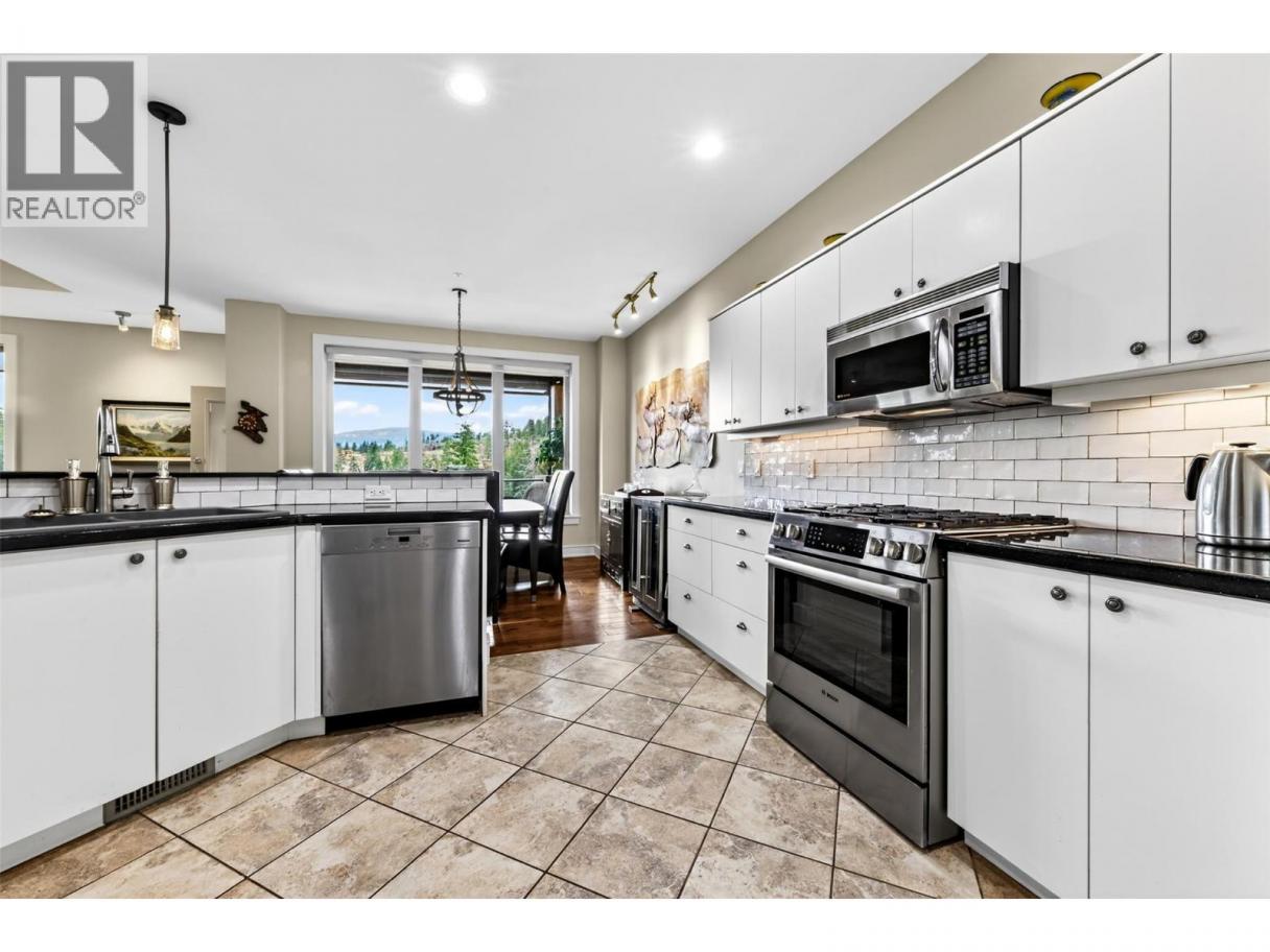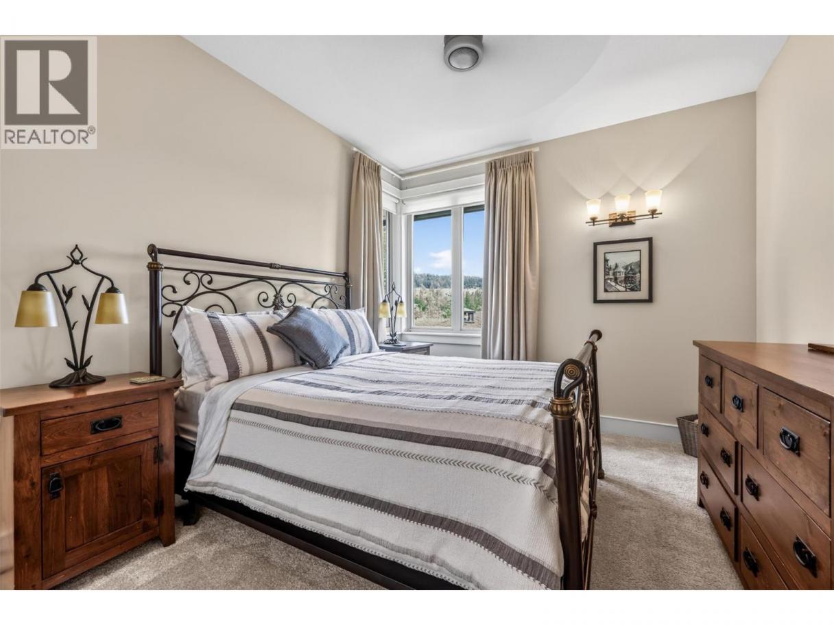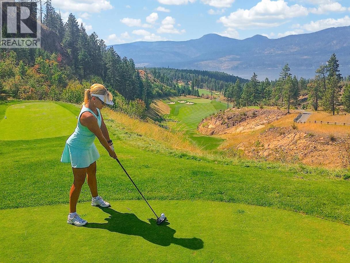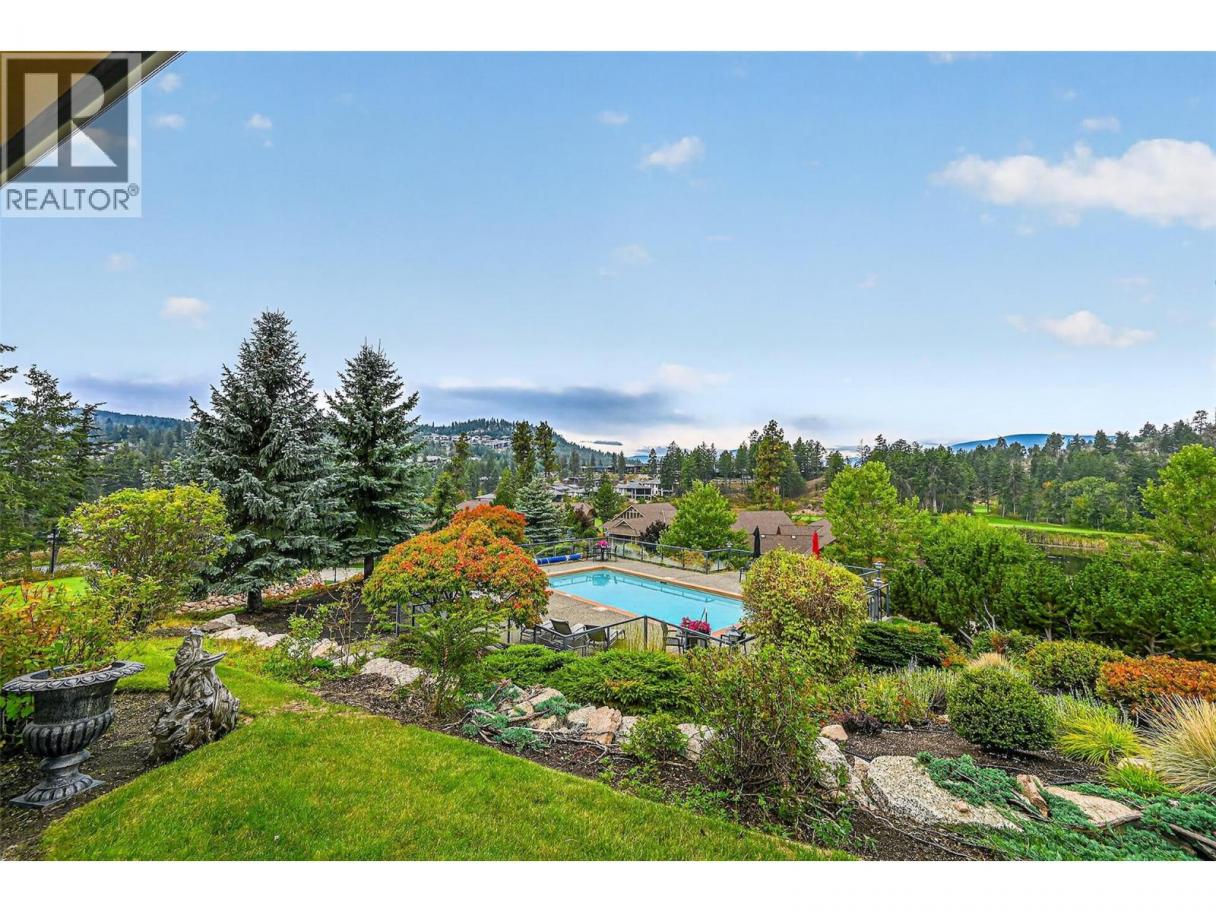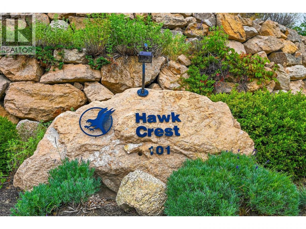 Predator Ridge sets the stage for elevated living in this stunning Hawk Crest residence—one of the community’s finest original builds, known for exceptional quality and forward-thinking design. Panoramic views over Birdie Lake and beyond create a truly special vantage point. Offering 1,850 square feet of single-level living, this beautifully updated home is perched on the second floor to maximize light and views (accessed via stairs from the spacious double garage) and features two bedrooms and two full bathrooms, plus a den or office. The master retreat is especially decadent. From the moment you enter, it’s clear—this home shows a perfect ten out of ten. Thoughtfully updated throughout with rich hardwood flooring, fresh paint, and beautifully finished bathrooms, the attention to detail is evident, creating a refined yet comfortable living space. The open-concept layout flows seamlessly to the outdoor living area—ideal for relaxing or entertaining while taking in uninterrupted lake views. The strata fee is comprehensive, covering exterior maintenance and repairs (including roof), building insurance, heated outdoor pool, landscaping, irrigation, snow removal to your door, road maintenance, contingency fund and management, plus PRCLA amenities including trails, boulevards and street lighting. Fitness Centre membership is included with indoor pool, hot tub, steam rooms, weight room and yoga studio. Pet Restriction: one dog or one cat (max 36 lbs; breed approval required) Showings: 24 hours notice required (id:6769)