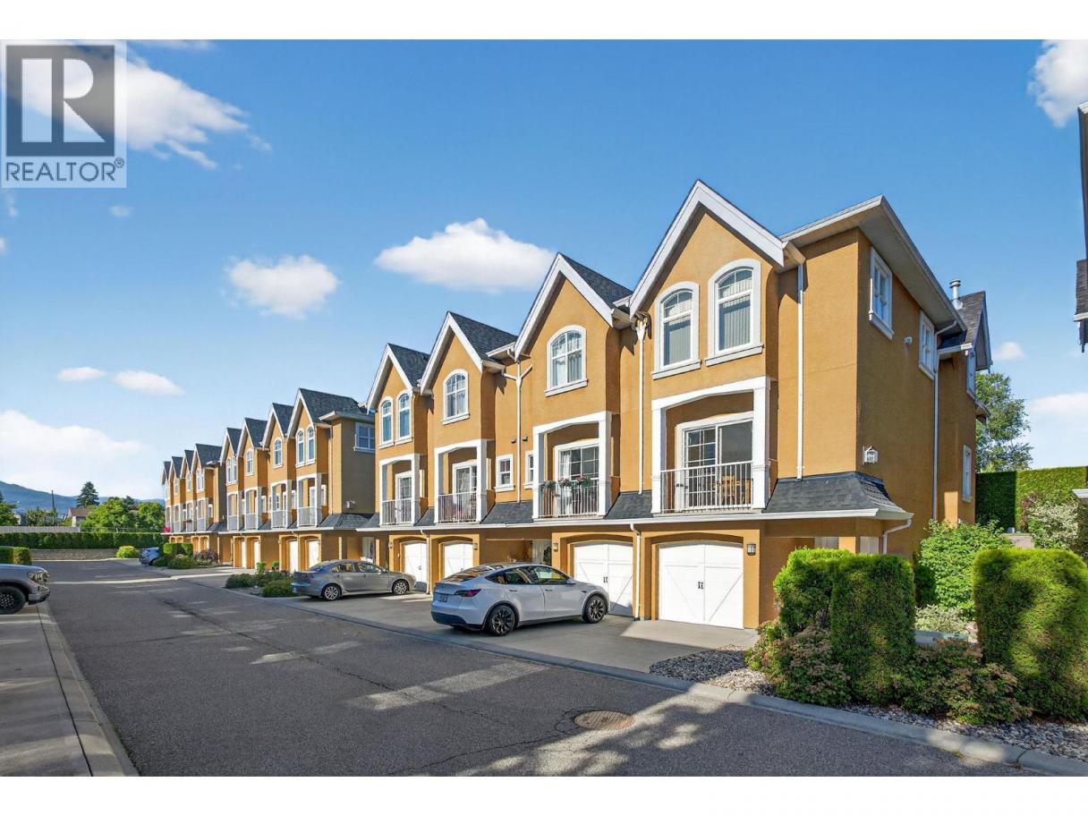 GREAT VALUE for this Immaculate unit! Parkside Villas – Rarely available 3 bed / 3 bath END-UNIT townhouse in a well-maintained, gated community beside Ben Lee Park! Residents love it here for the unbeatable location and lifestyle, just 10 mins to schools, UBCO, YLW Airport, Walmart, Costco, and more.This bright, clean & well kept unit features 9 ft ceilings, a cozy fireplace, new vinyl plank flooring, fresh paint, and a spacious primary bedroom with walk-in closet and ensuite. Enjoy outdoor living with a balcony off the dining room and a landscaped backyard patio with planter boxes and a gas BBQ hookup. Tandem garage fits 2 vehicles. Well maintained complex, Roof recently replaced. Pet-friendly 2 dogs allowed, any size! Reasonable strata fee of $357.20 (includes water, snow removal). Don't miss this one! THIS ONE IS STILL AVAILABLE AND EASY TO SHOW! (id:6769)
