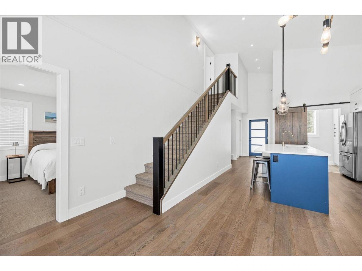 This is one of McKinley Beach's most delightful views! This 2020 rancher (with a basement) offers spacious living across three levels, perfectly framing a stunning lakeview. This home offers 4 bedrooms, 4 bathrooms, and a layout built around how people actually live. Two primary suites with full ensuites mean guests feel genuinely welcome. The open kitchen with a large island, main-floor primary bedroom, and two private patios is ideal for everyday life and hosting friends. Downstairs, a fully finished basement with two additional bedrooms and a flex room adapts to whatever you need most. The outdoor space is generous without being demanding, irrigated, low-maintenance, with multiple patios and decks, three sheds, a double driveway, golf cart parking, and a freshly paved path to custom outdoor stairs. The hot tub pad and electrical are already in place. Central air, natural gas heat, attached garage. This home has it all! McKinley Beach is Kelowna's only lakefront community, including hiking trails, a marina, pickle ball, tennis, a pool, community gardens, and 15 minutes to downtown. Blue Bunch Court has a friendly warmth to it with a great sense of community. Whether you're buying your first home or settling into your next chapter, this is a beautiful place to begin! (id:6769)