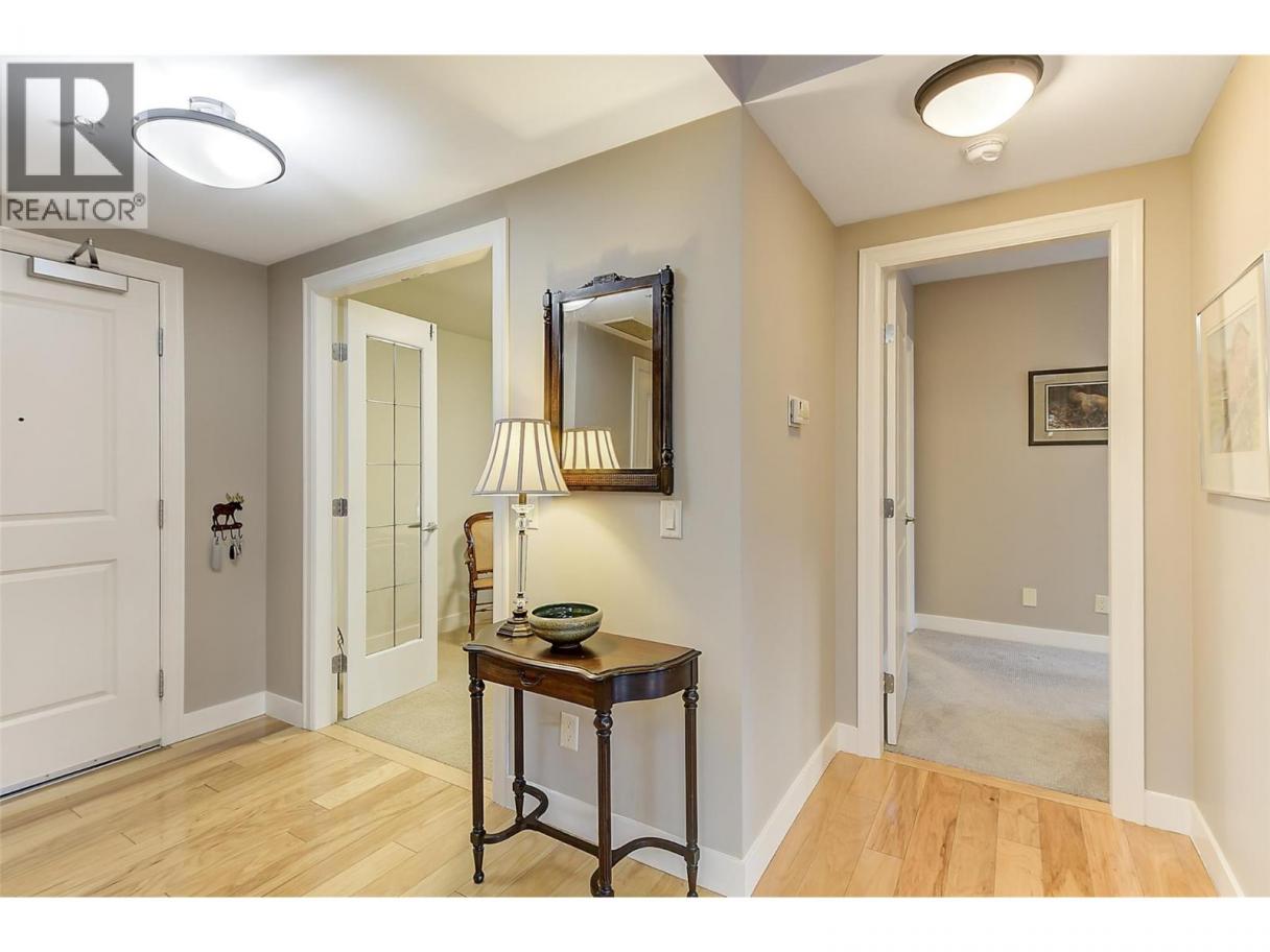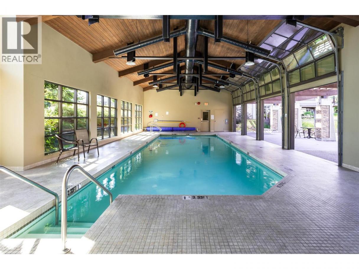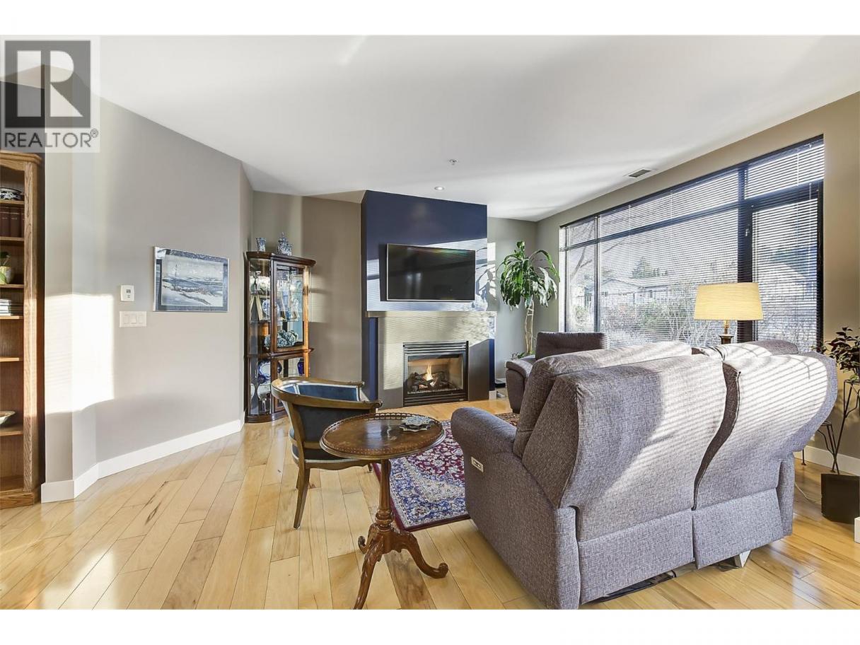 LUXURY LIVING AT UPSCALE 'SOUTHWIND AT SARSONS' only a 10 minute walk to Lake and stunning Sarsons Beach! This stunning 1497 SF Level Entry Condo with a Sun filled South Covered Patio and walk right onto grass and garden. All inclusive Strata Fee includes Heat, Central Air, Water and hot water, landscaping, and amenities. Huge windows flood the open plan with tons of natural light! 9' ceilings, warm decor, hickory hardwood in main living areas, tile in bathrooms and cozy carpets in bedrooms. Large Open Maple Kitchen with generous island, granite counters, oodles of cabinets, and under cabinet lighting. SS appliances, New Bosch dishwasher! Dining area has glass door to a covered concrete patio and garden area for seamless in-out lifestyle. Open Great room features a gas fireplace and huge wall to wall windows bringing the outside in. Double glass doors to a separate office/den off the entry. Luxurious primary bedroom with Extra large 5 piece Ensuite with separate soaker tub/shower, travertine style tile floors, granite counters. Split bedroom design: 2nd bedroom has walk through closet, generous 3 piece bathroom & huge tiled frameless glass shower. Separate laundry rm. Southwinds is a 'Cut Above' in luxury amenities with Gorgeous clubhouse, full Fitness workout center, Massive indoor Pool and Hot tub, & extensive landscaped pond areas, walking trails & gardening opportunities for the green thumb! U/G parking & Extra Huge Storage room. 1 dog or cat, 15"". You will be impressed! (id:6769)