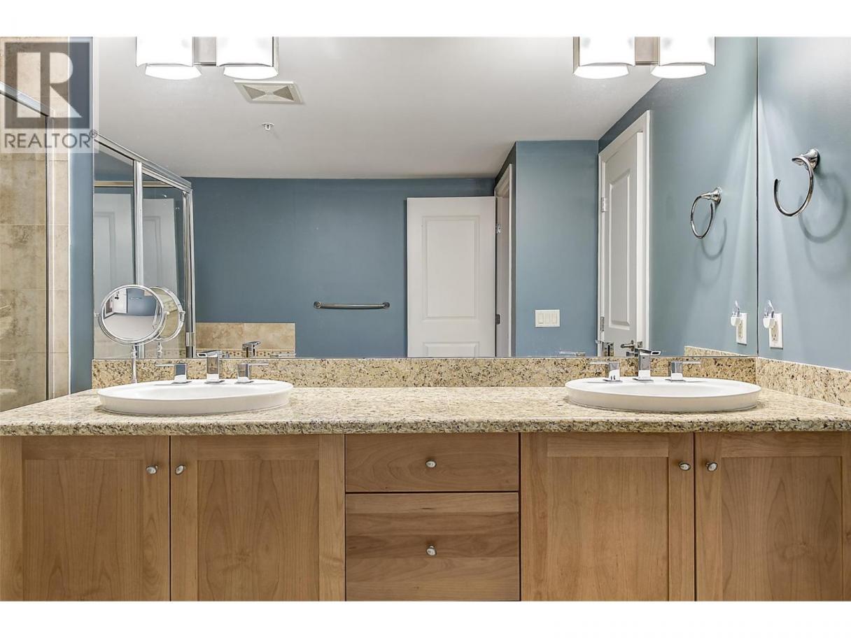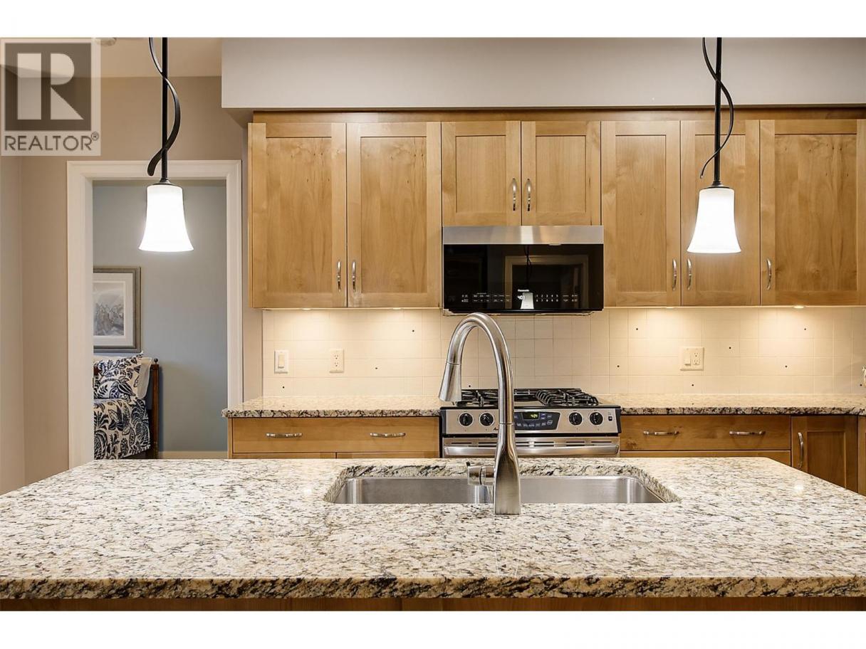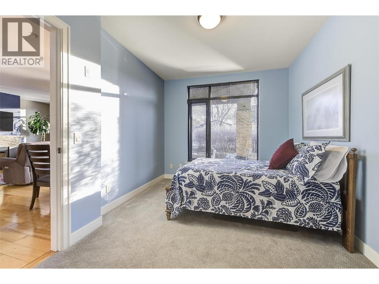 LUXURY LIVING AT UPSCALE 'SOUTHWIND AT SARSONS' only a 10 minute walk to Lake and stunning Sarsons Beach! This stunning 1497 SF Level Entry Condo with a Sun filled South Covered Patio and walk right onto grass and garden. All inclusive Strata Fee includes Heat, Central Air, Water and hot water, landscaping, and amenities. Huge windows flood the open plan with tons of natural light! 9' ceilings, warm decor, hickory hardwood in main living areas, tile in bathrooms and cozy carpets in bedrooms. Large Open Maple Kitchen with generous island, granite counters, oodles of cabinets, and under cabinet lighting. SS appliances, New Bosch dishwasher! Dining area has glass door to a covered concrete patio and garden area for seamless in-out lifestyle. Open Great room features a gas fireplace and huge wall to wall windows bringing the outside in. Double glass doors to a separate office/den off the entry. Luxurious primary bedroom with Extra large 5 piece Ensuite with separate soaker tub/shower, travertine style tile floors, granite counters. Split bedroom design: 2nd bedroom has walk through closet, generous 3 piece bathroom & huge tiled frameless glass shower. Separate laundry rm. Southwinds is a 'Cut Above' in luxury amenities with Gorgeous clubhouse, full Fitness workout center, Massive indoor Pool and Hot tub, & extensive landscaped pond areas, walking trails & gardening opportunities for the green thumb! U/G parking & Extra Huge Storage room. 1 dog or cat, 15"". You will be impressed! (id:6769)
