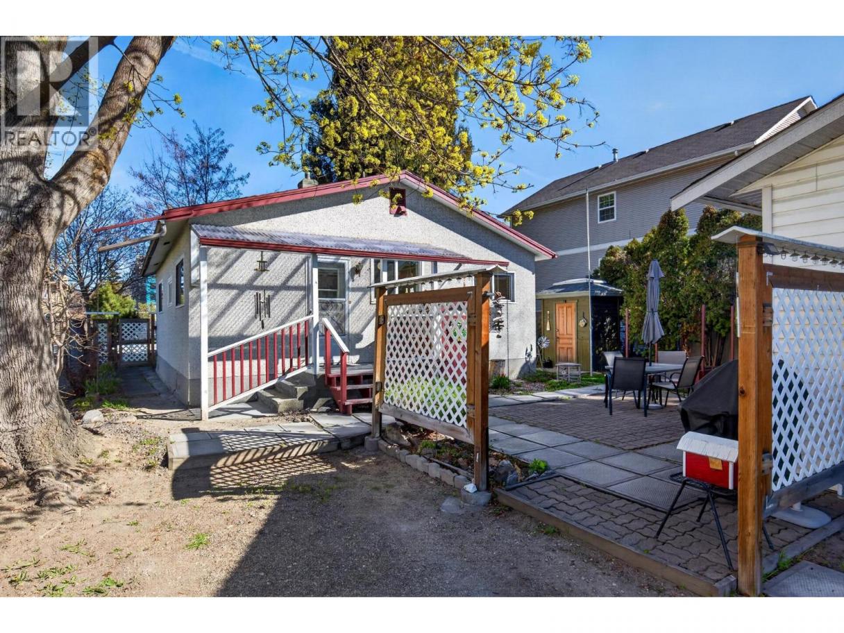Charming character home in one of Kelowna’s most walkable central locations featuring an incredible detached heated 375 sq ft shop/garage with lane access. This well maintained 2 bedroom plus office, 2 bathroom home offers 925 sq ft of bright and functional living space filled with warmth and timeless appeal. Inside you will find a bright and spacious living room, two comfortable bedrooms plus a versatile front flex room ideal for a home office or hobby space, two bathrooms, and a sunny kitchen with adjoining dining nook, great natural light, and everyday functionality. Stay comfortable year round with the newer A/C unit installed in 2024 and hot water tank replaced in 2020. The detached heated shop/garage built in 2005 is a rare and valuable bonus, perfect for secure parking, a workshop, gym, games room, hobby space, or extra storage. Added bonus of boat or RV parking with convenient rear lane access. The private backyard offers patio space for entertaining, mature trees for added privacy, plus a handy garden shed for tools, storage, or seasonal items. Zoned MF1, this property also offers future redevelopment potential for buyers planning ahead. Located just steps to Rowcliffe Park, public transit, and only minutes to the lake, beaches, downtown Kelowna, restaurants, shopping, and everyday amenities. Ideal for first time buyers, downsizers, investors, or anyone seeking a detached home with outstanding utility in a prime central location. (id:6769)
