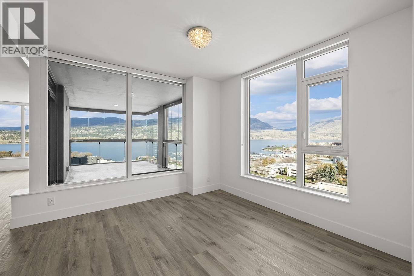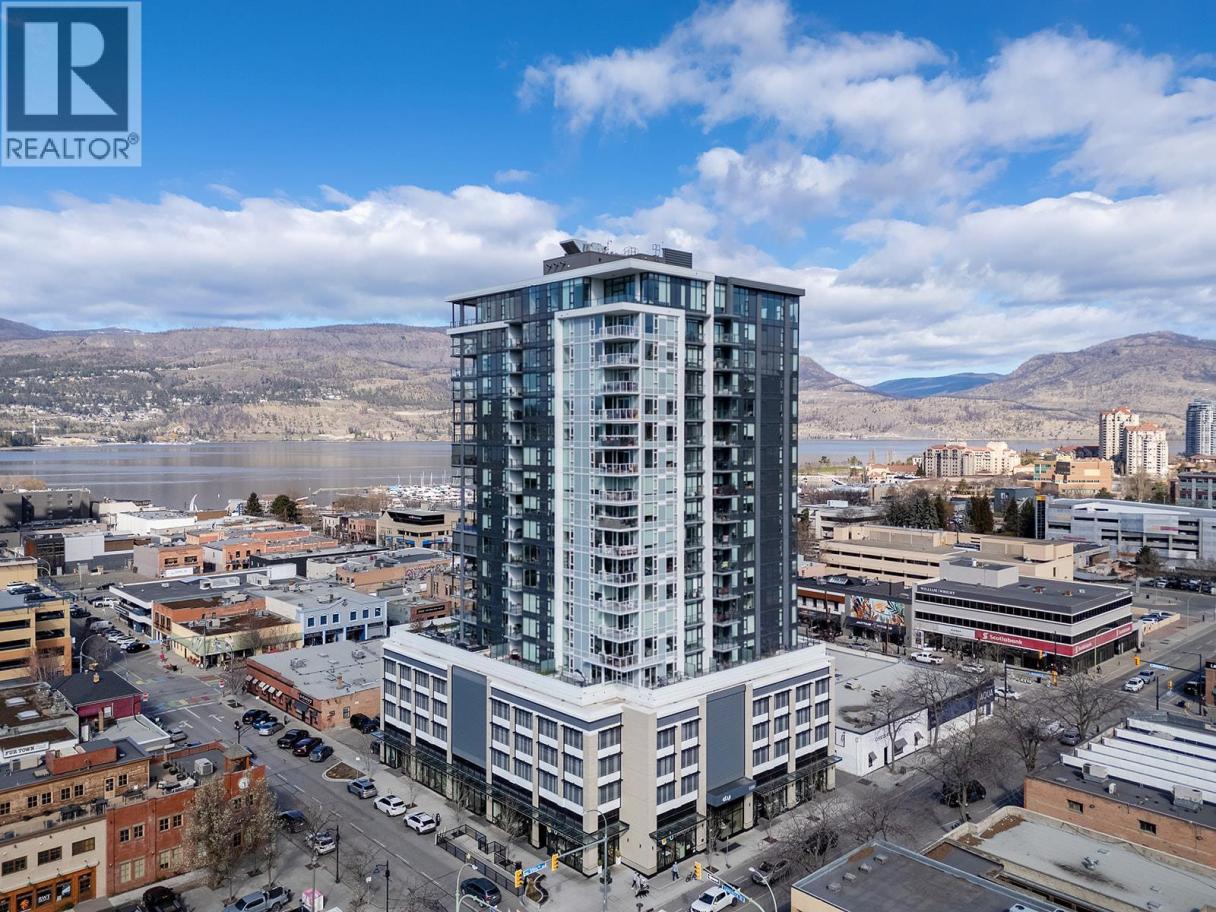 PRICE $1,150,000! fixed tmrw! Perched on the 19th floor, this exceptional corner residence in Kelowna’s premier concrete high-rise offers 1,377 sq. ft. of refined living with 2 bedrooms + den and 3 bathrooms, designed for comfort, privacy, and entertaining. Floor-to-ceiling windows frame breathtaking lake, city, mountain, and Yacht Club views, filling the home with natural light and showcasing downtown Kelowna from above. This thoughtfully designed split-bedroom layout features two spacious primary suites, each with its own ensuite, plus a versatile den ideal for a home office or guest space. The open-concept living area is anchored by a chef-inspired kitchen with quartz countertops, high-end appliances, and sleek European-style cabinetry, complemented by upgrades beyond developer standards. This residence also includes 2 secure parking stalls, a rare offering in downtown Kelowna. A standout feature is the ~300 sq. ft. enclosed terrace with a premium glass enclosure, creating a seamless extension of your living space and a year-round indoor-outdoor experience—perfect for entertaining or enjoying the panoramic views. Residents of ELLA enjoy quiet concrete construction, quality craftsmanship, and building features including a guest suite, pet wash station, bike storage, EV charging, and on-site management. Located in the Bernard District with a WalkScore of 97, you are steps to Okanagan Lake, restaurants, cafes, boutiques, and downtown amenities, all within walking distance. (id:6769)