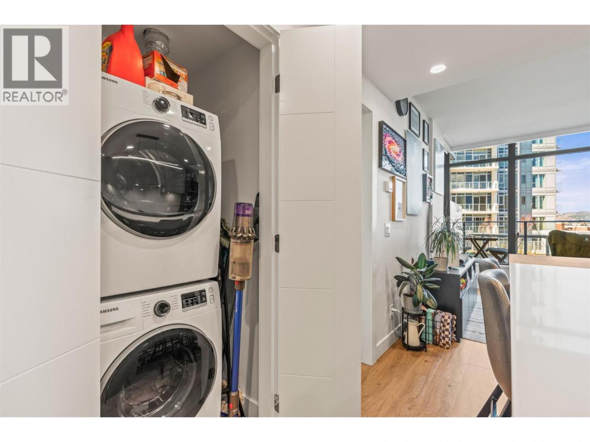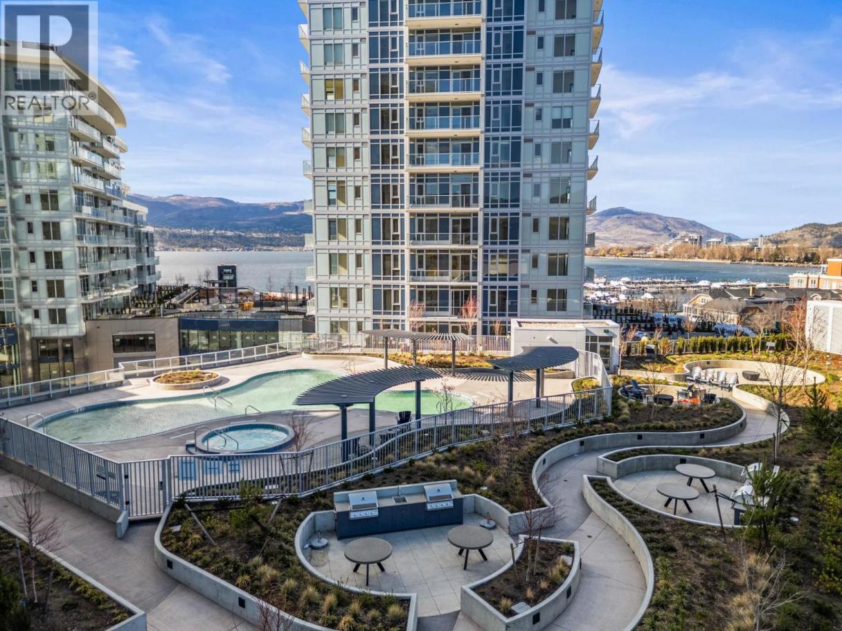 Welcome to waterfront living in suite 601 at AQUA Phase 1. This lake-facing 1 bedroom, 1 bathroom home offers 500 sq. ft. of well-designed living space, showcasing beautiful water, mountain and pool views from the oversized patio. The home includes 1 secure parking stall, a storage locker, and a customized in-suite laundry system. Quality construction features 8” concrete between floors, oversized windows, and a central hot water system (included in strata fees), along with energy-efficient VRV heating and cooling and ERV. Modern finishes include quartz countertops, stainless steel appliances, upgraded closet organizers and fiber-optic connectivity. This building is pet-friendly, permitting 2 pets with no size restrictions. AQUA will soon allow short-term rentals, offering excellent flexibility and investment potential. Enjoy premium amenities including an outdoor pool and hot tub, BBQ area, fireside lounge, two-storey fitness centre with yoga space, co-working area, shared kitchen, and dog wash station. Ownership offers priority access to the Aqua Boat Club (subject to availability). Located steps to Kelowna’s vibrant waterfront, dining, shopping, and recreation. New home warranty in place. GST paid. Measurements to be verified. (id:6769)