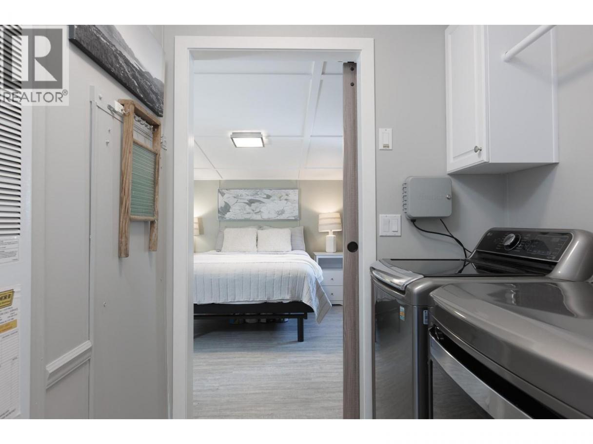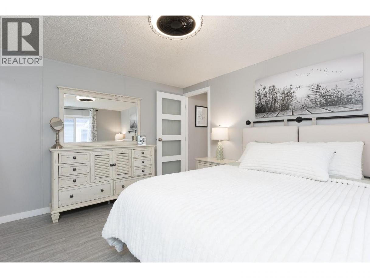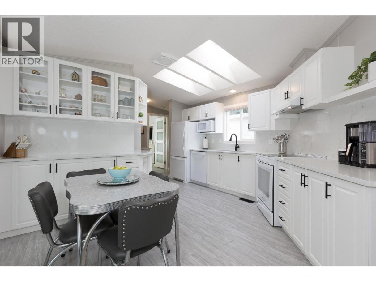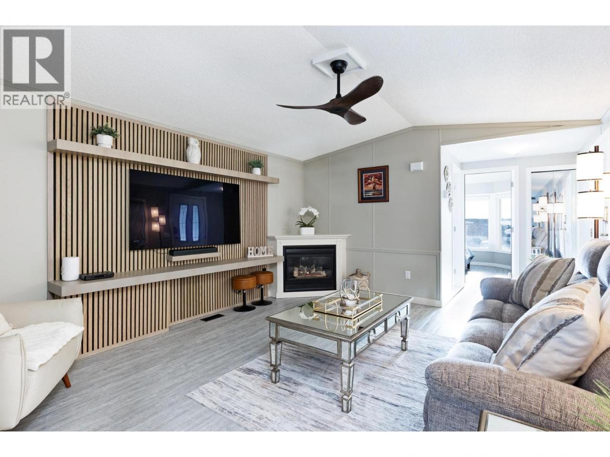 Comfort meets elegance in this exquisitely renovated 3 bedroom, 2 bathroom sanctuary in the esteemed Crystal Springs Park - a gated 55+ haven. Extensive upgrades include new plumbing, electrical, lighting, interior doors, blinds, vanities, toilets, and LG washer and dryer. The living room features a custom-built wall feature that adds warmth, character, and a polished focal point, complemented by a cozy gas fireplace and modern ceiling fan. The fully updated kitchen is adorned w/ skylights, quartz counters, undermount sink, modern fixtures, high-end appliances (including a smart-stove w/ air-fry), wine fridge, large pantry, and freshly refinished cabinetry. The primary suite is a lavish retreat boasting a spa-inspired ensuite w/ body-jet shower, while a second bedroom boasts captivating bay windows and a versatile third bedroom offers exterior access. Revel in the serene ambiance of the outdoor oasis, complete with a spacious sunroom, inviting gazebo and patio, exterior led lights, smart irrigation, and powered shed - all set on a no-through road just steps from Nature and walking trails. One dog or indoor cat allowed (12 lbs. max), immediate possession available and room to park the RV! Close to all amenities that West Kelowna has to offer. It's easy to see that this is not your average Manufactured Home or Mobile Home Park - Beyond these gates you'll discover a welcoming, meticulously maintained, tight-knit community. (id:6769)