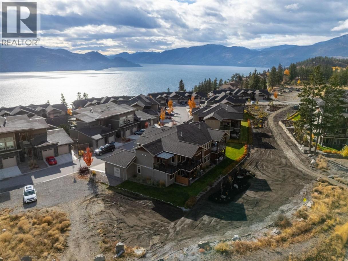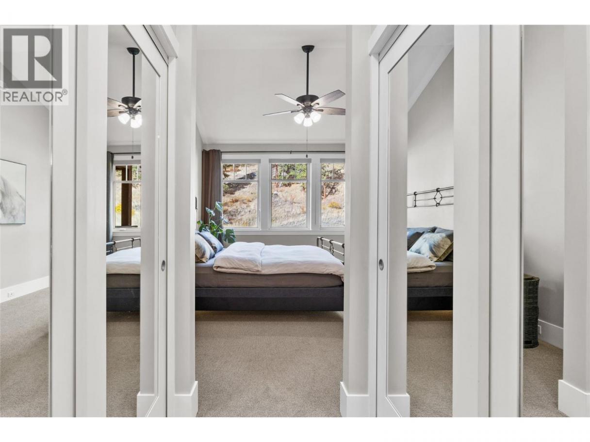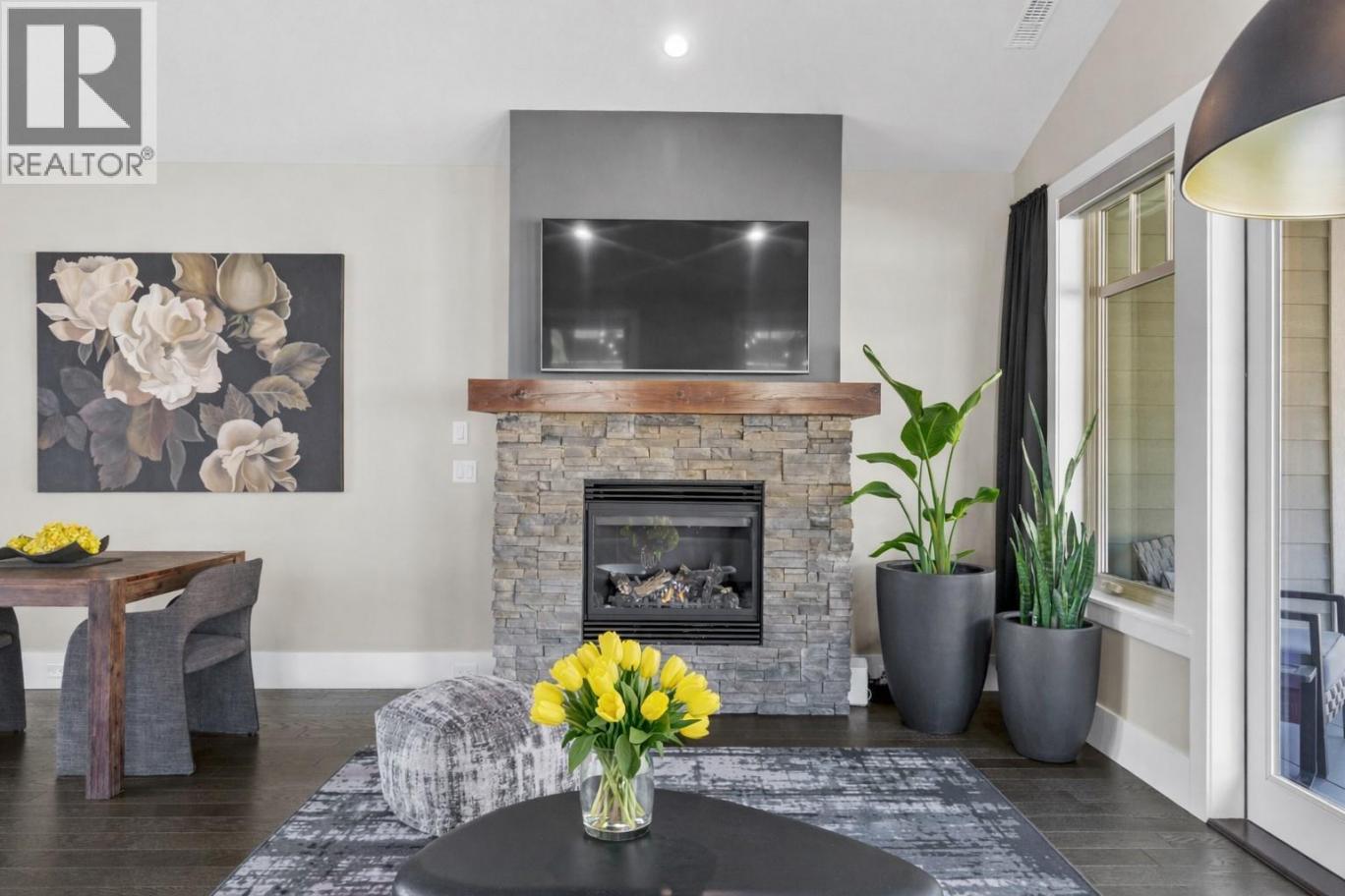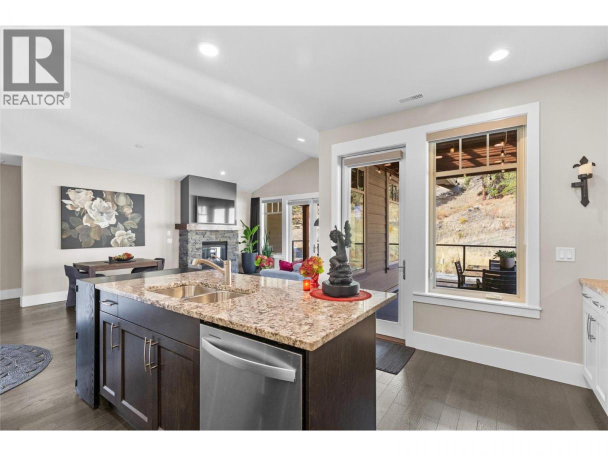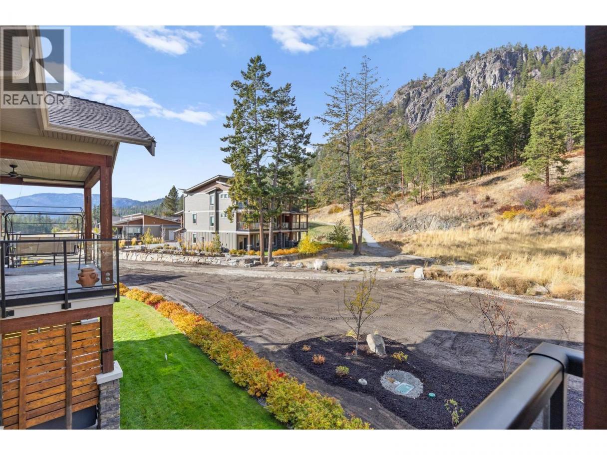 This lovely semi-detached top-floor home offers a comfortable living space in an inviting open-concept design. Freshly painted throughout, it feels bright and refreshed from the moment you step inside. Panoramic windows fill the home with natural light and showcase the gorgeous natural backdrop, while vaulted ceilings add a sense of spaciousness. The stylish kitchen features ample cabinetry, a large island, granite countertops, stainless steel appliances including a gas range, and a pantry. The luxurious primary suite boasts stunning views of Pincushion Mountain and a spa-inspired ensuite with a soaker tub, tile shower, and double vanity. Both bedrooms feature new carpet for a cozy, updated feel. Step outside to a sprawling wrap-around covered deck with pavers—ideal for dining al fresco or relaxing in the fresh air. Enjoy year-round comfort with geothermal heating and cooling (included in the strata fee), complemented by a cozy gas fireplace. Private setting with no home behind and breathtaking views. Single garage with private driveway. Pet friendly—up to two pets allowed. Minutes to Peachland’s waterfront, coffee shops, restaurants, lakeside boardwalk, and endless hiking trails right at your doorstep. Situated next to an approved 9-hole executive golf course—The Trails offers the best of Okanagan living! (id:6769)
