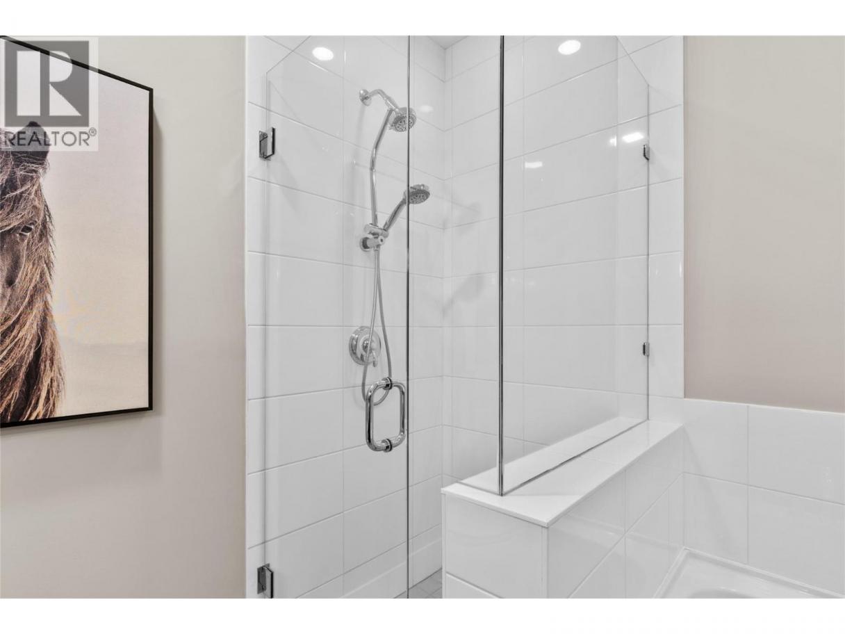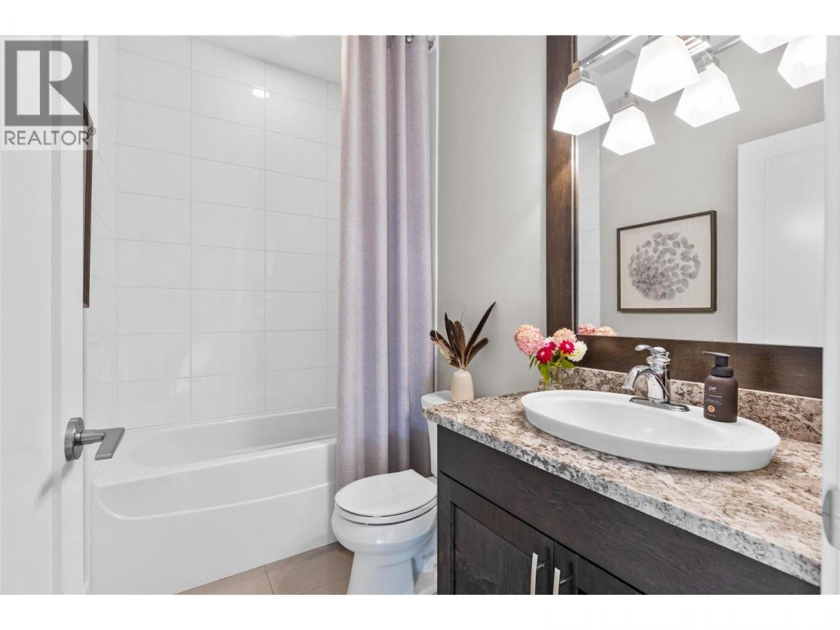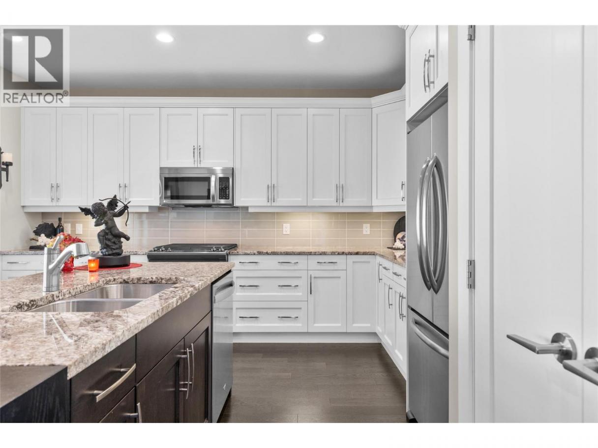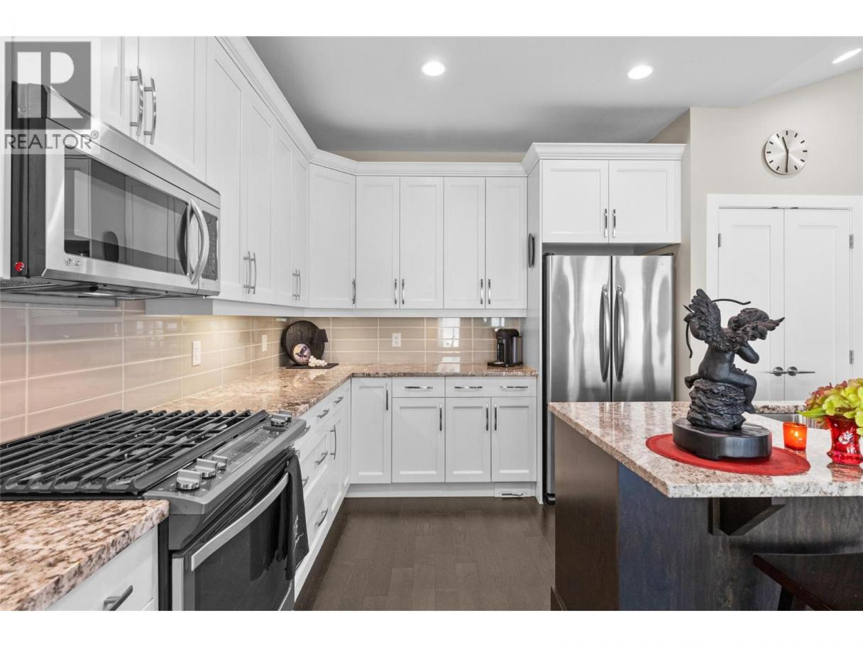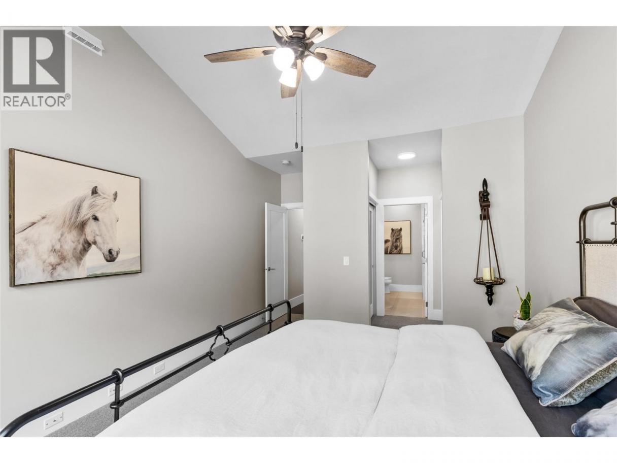 This lovely semi-detached top-floor home offers a comfortable living space in an inviting open-concept design. Freshly painted throughout, it feels bright and refreshed from the moment you step inside. Panoramic windows fill the home with natural light and showcase the gorgeous natural backdrop, while vaulted ceilings add a sense of spaciousness. The stylish kitchen features ample cabinetry, a large island, granite countertops, stainless steel appliances including a gas range, and a pantry. The luxurious primary suite boasts stunning views of Pincushion Mountain and a spa-inspired ensuite with a soaker tub, tile shower, and double vanity. Both bedrooms feature new carpet for a cozy, updated feel. Step outside to a sprawling wrap-around covered deck with pavers—ideal for dining al fresco or relaxing in the fresh air. Enjoy year-round comfort with geothermal heating and cooling (included in the strata fee), complemented by a cozy gas fireplace. Private setting with no home behind and breathtaking views. Single garage with private driveway. Pet friendly—up to two pets allowed. Minutes to Peachland’s waterfront, coffee shops, restaurants, lakeside boardwalk, and endless hiking trails right at your doorstep. Situated next to an approved 9-hole executive golf course—The Trails offers the best of Okanagan living! (id:6769)