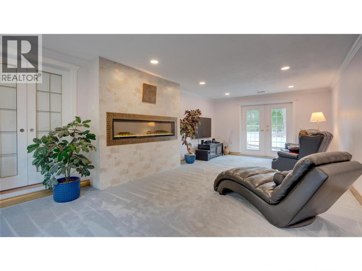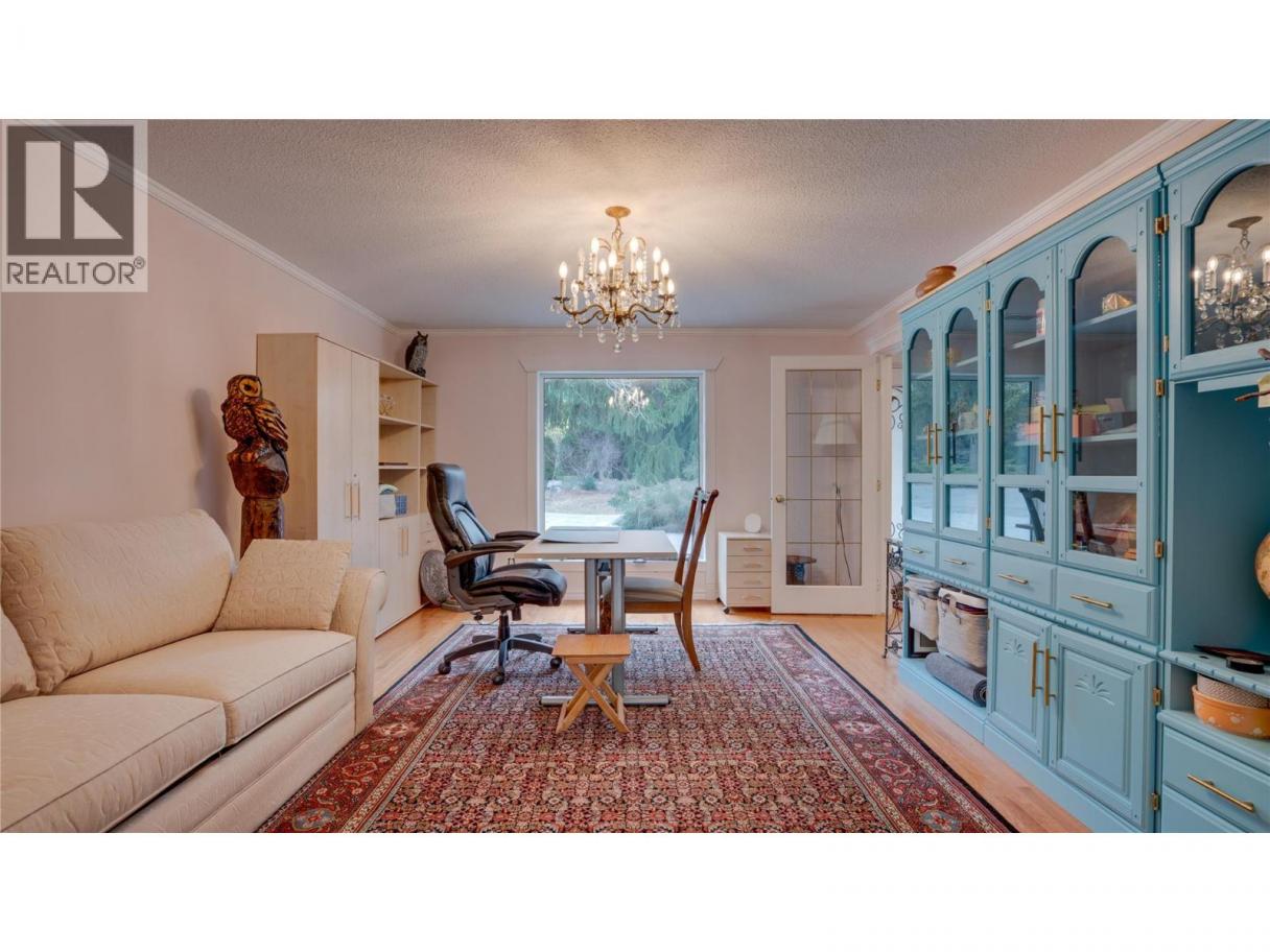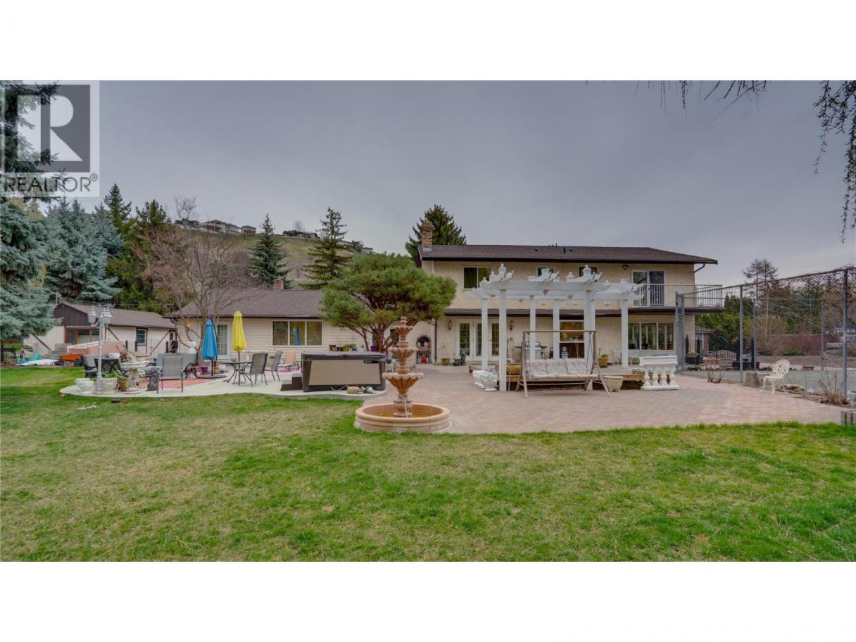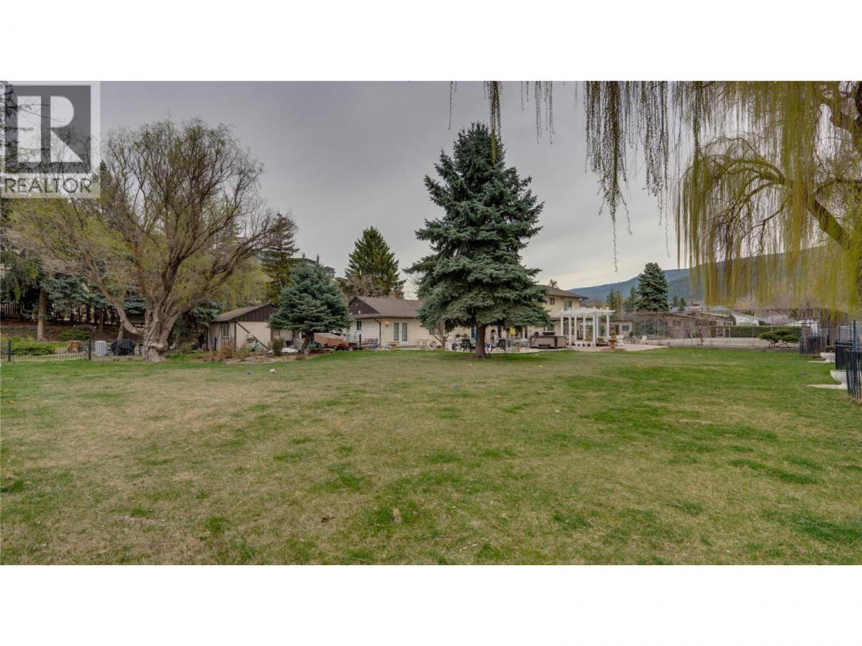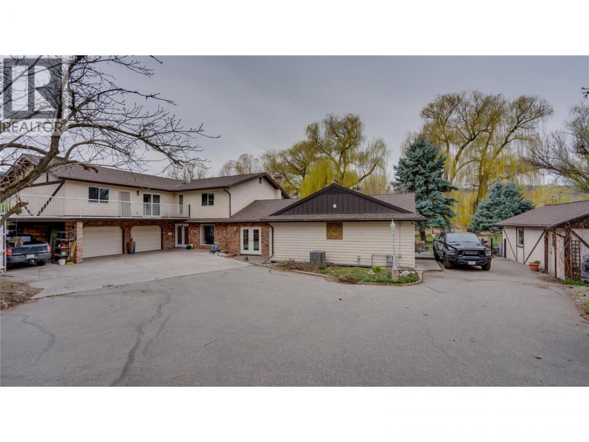This stunning 1.13-acre private Coldstream estate backing onto Kalavista Lagoon Park spans 2 fully fenced lots & features an updated home with an attached 2-bedroom in-law suite—ideal for multigenerational living/ income- with the option to easily convert back to a single residence. Enjoy everything this exquisitely updated residence offers- mature park-like grounds, a rose garden, circular driveway, double garage, carport, RV parking, detached workshop, large sheds, private tennis court, hot tub, and exceptional privacy. Spacious throughout, this 6-bedroom, 4-bath home offers seamless indoor-outdoor living featuring an elegant fireplace room, a gourmet kitchen crowned with quartz counters & premium appliances all leading outside spaces anchored by an oversized fountain, pergola, and hot tub that faces both the lagoon & sunsets! Upstairs, retreat to the expansive primary bedroom with impressive walk-in closet, Juliette balcony, and 4-piece ensuite, along with 3 additional bedrooms, media room, bath, laundry, and wraparound deck. Updates include 2 new furnaces & 2 A/C’s, upgraded 200 AMP service, garage EV charge capability, plus new customized luxury bathrooms, newly replaced and newly added windows to create sun-flooded interiors. Located in a sought-after beach vibe neighbourhood with coffee shop, eateries, pier, with both urban & rural amenities nearby makes this a one-of-a-kind estate to treasure for years to come! Come & embrace the Kal Lake lifestyle! (id:6769)