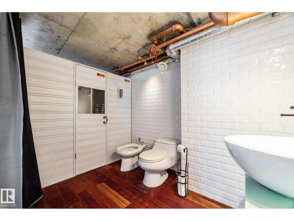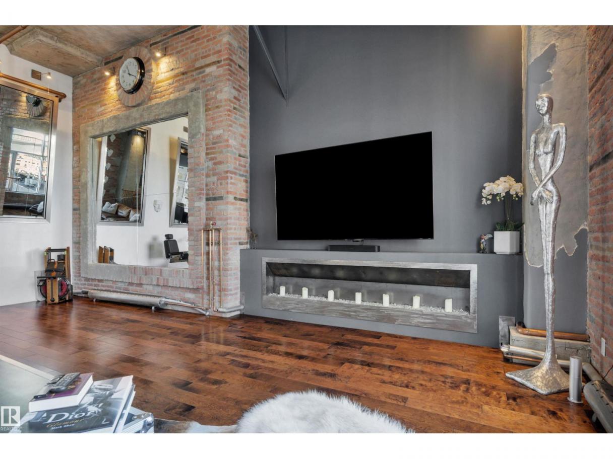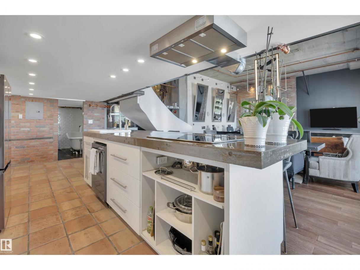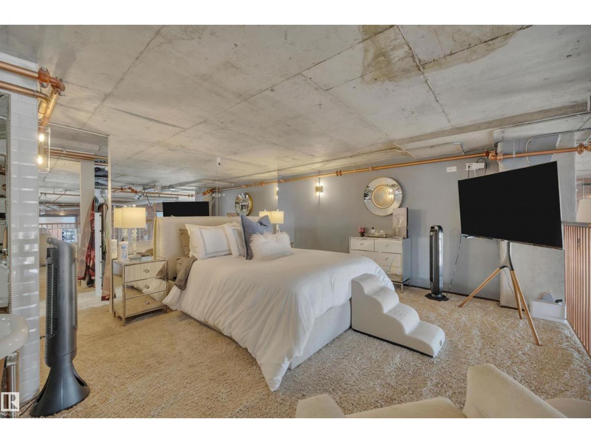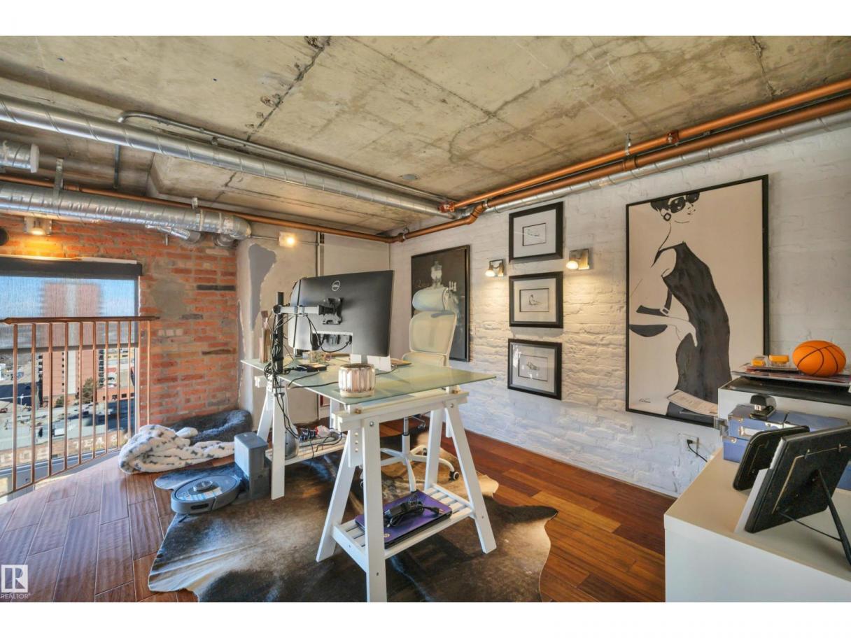You won’t believe the WOW FACTOR in this NY-style urban penthouse loft in Edmonton’s trendy Downtown Warehouse District. One of only four penthouses, this stunning home offers over 2,000 sq ft of open-concept living with soaring 13’ ceilings, floor-to-ceiling windows, and striking mirrored accents. The main level features a spacious living area with exposed brick and concrete, a dining space, dream kitchen, den, 4-piece bath, and a laundry room with storage. A dramatic curved copper staircase leads to the mezzanine, complete with two generous bedrooms, a 5-piece ensuite, and a two-person sauna. Recent upgrades include Hunter Douglas remote-controlled blinds, statement lighting, new stove, washer & dryer. This 2 bed, 2 bath unit includes three underground parking stalls (1 single, 1 tandem) and a storage unit. Steps to the Ice District, restaurants, cafes, shopping, dog park, transit, and Grant MacEwan University. (id:6769)