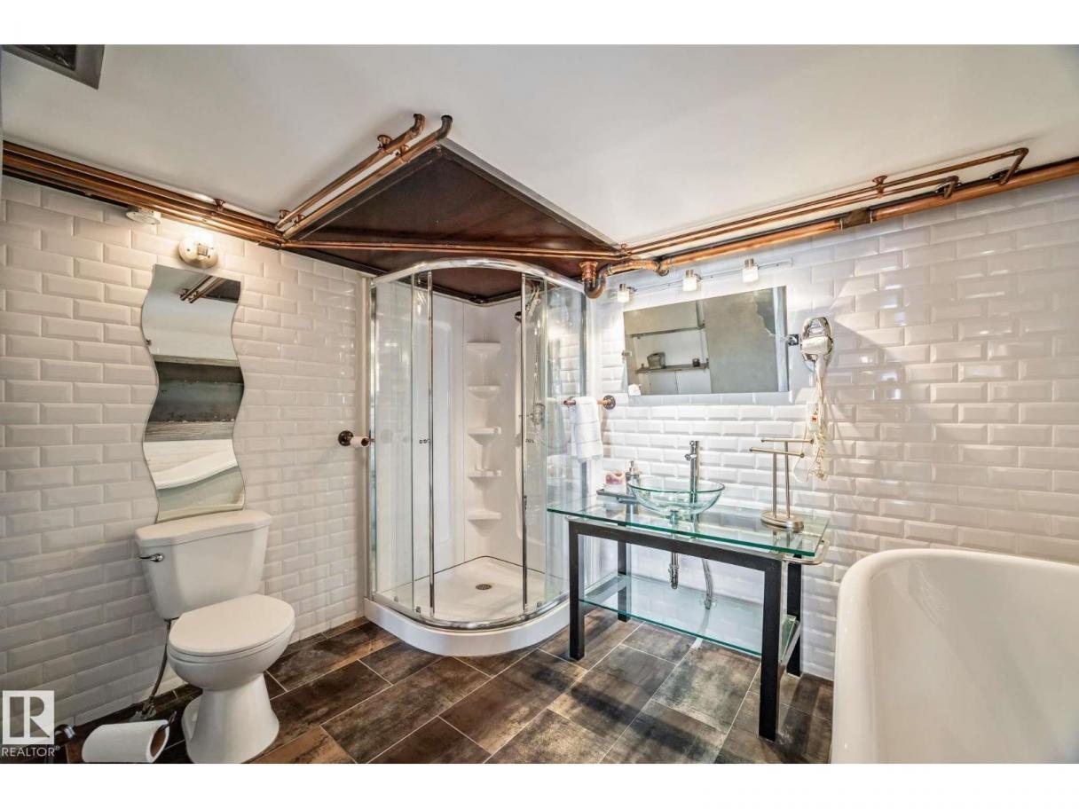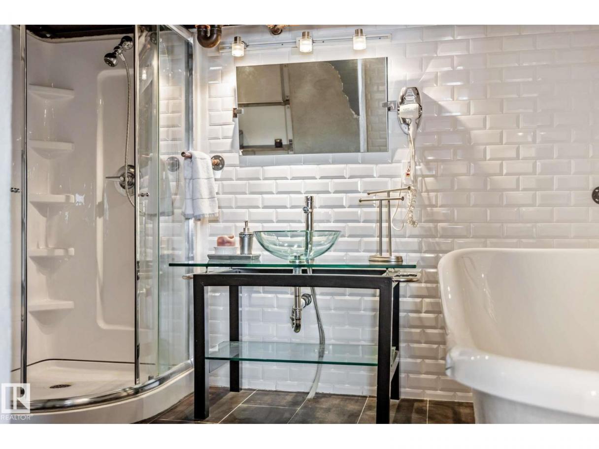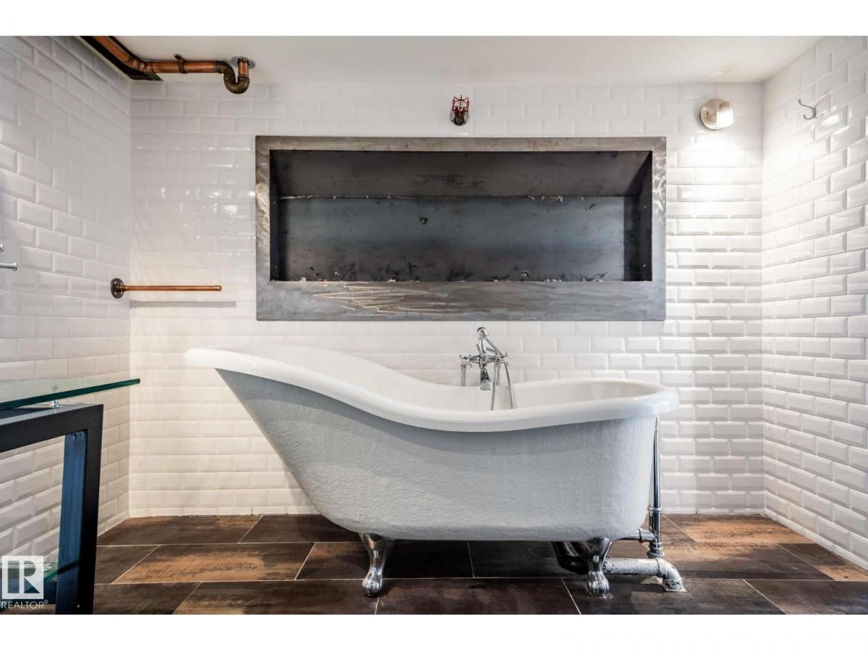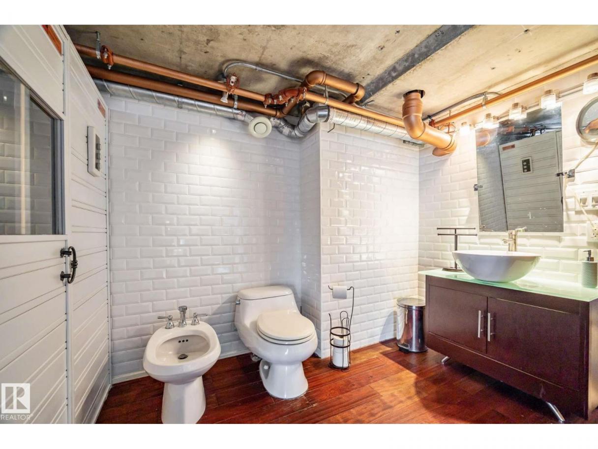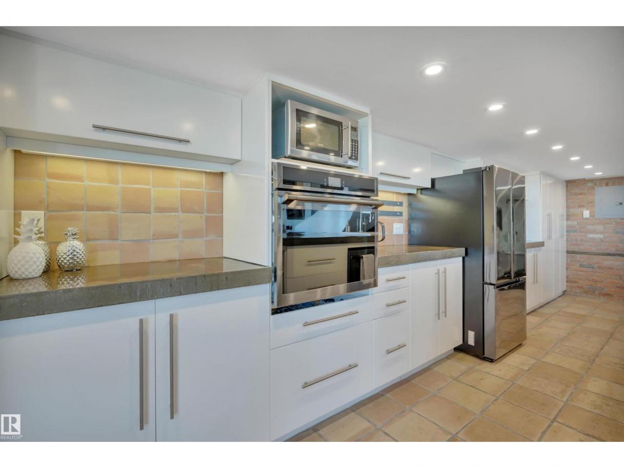 You won’t believe the WOW FACTOR in this NY-style urban penthouse loft in Edmonton’s trendy Downtown Warehouse District. One of only four penthouses, this stunning home offers over 2,000 sq ft of open-concept living with soaring 13’ ceilings, floor-to-ceiling windows, and striking mirrored accents. The main level features a spacious living area with exposed brick and concrete, a dining space, dream kitchen, den, 4-piece bath, and a laundry room with storage. A dramatic curved copper staircase leads to the mezzanine, complete with two generous bedrooms, a 5-piece ensuite, and a two-person sauna. Recent upgrades include Hunter Douglas remote-controlled blinds, statement lighting, new stove, washer & dryer. This 2 bed, 2 bath unit includes three underground parking stalls (1 single, 1 tandem) and a storage unit. Steps to the Ice District, restaurants, cafes, shopping, dog park, transit, and Grant MacEwan University. (id:6769)