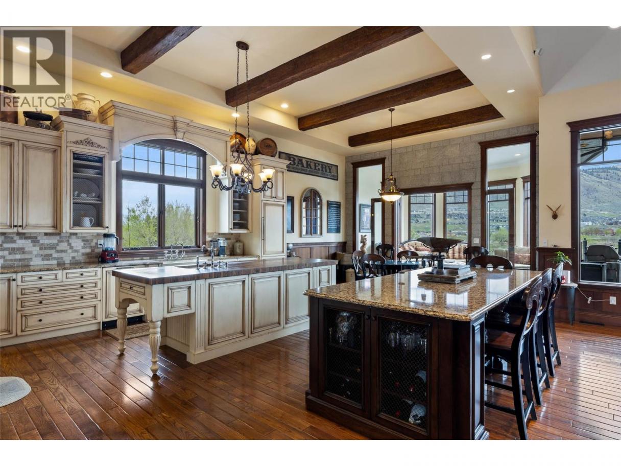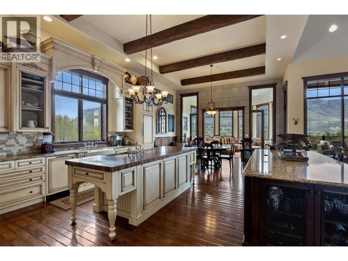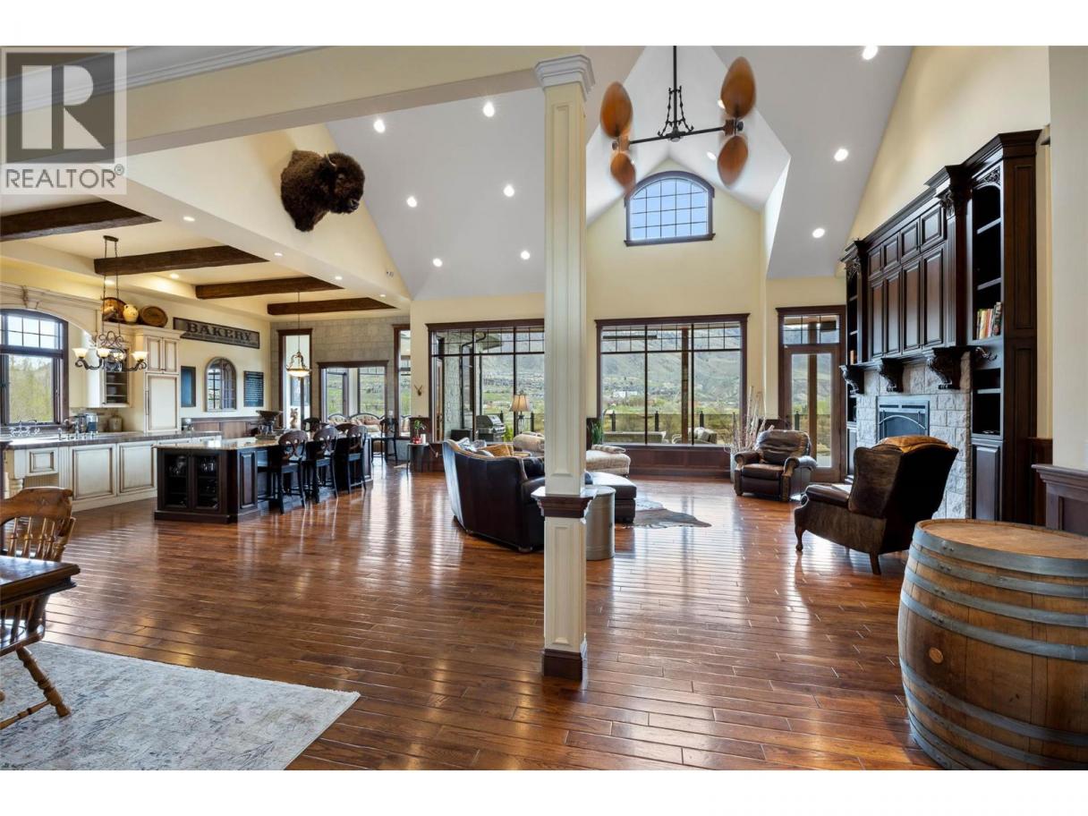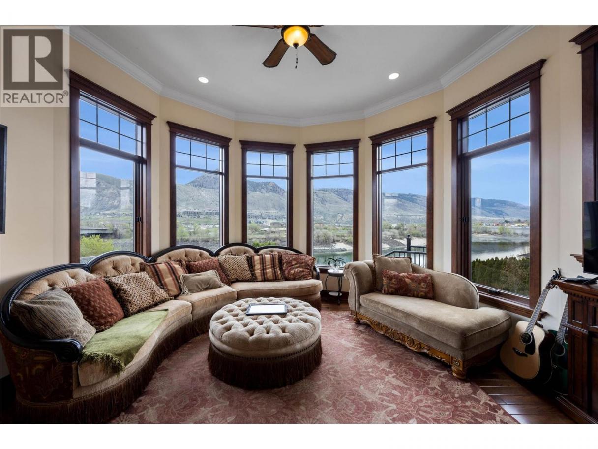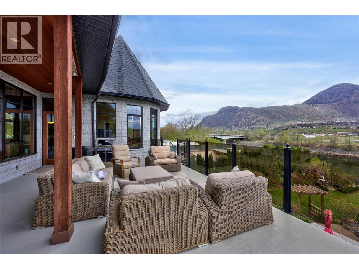 Grand riverfront offering on the Thompson! Beautifully appointed 7000 sq ft home with exceptional space for family and entertaining. Stunning chef’s kitchen with oversized islands and seamless indoor/outdoor dining. Expansive main floor features 20 ft ceilings, open concept layout, and wall of windows leading to a large upper deck overlooking the landscaped yard, riverside sitting area, and private dock. Offering 4 large bedrooms, office, and 6 bathrooms, with suite potential. Upper-level media/bonus room provides flexible living space. Lower level boasts 12ft ceilings, spacious living area, 3 bedrooms, 2 bathrooms, ample storage, and daylight walk-out basement access to the lower deck. Situated on nearly ½ acre with tranquil river and mountain views. Walking distance to the downtown core. This custom designed home was built in 2012 for the current owners. Oversized 3-car garage with bathroom and plenty of additional parking. Full feature sheet available. Exceptional lifestyle property. Call for your appointment to view. (id:6769)