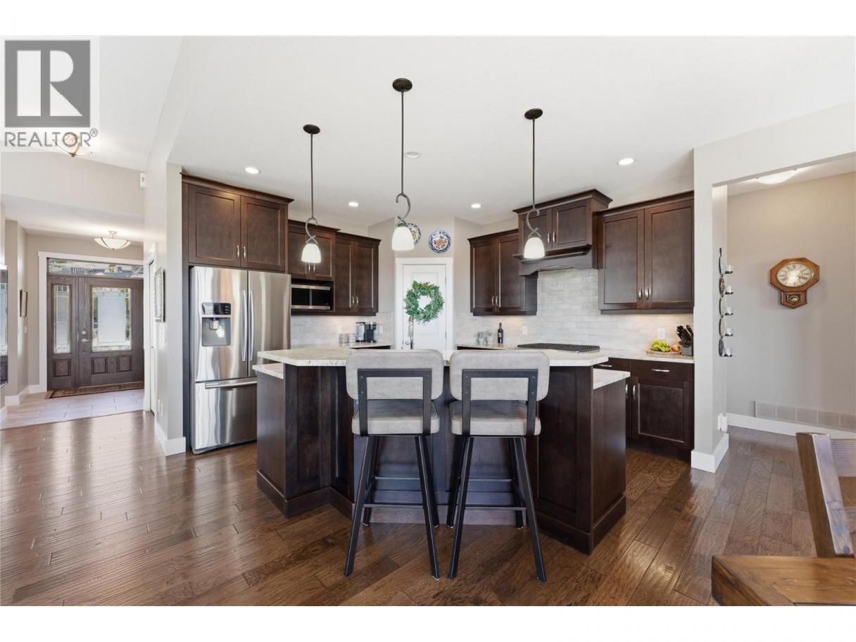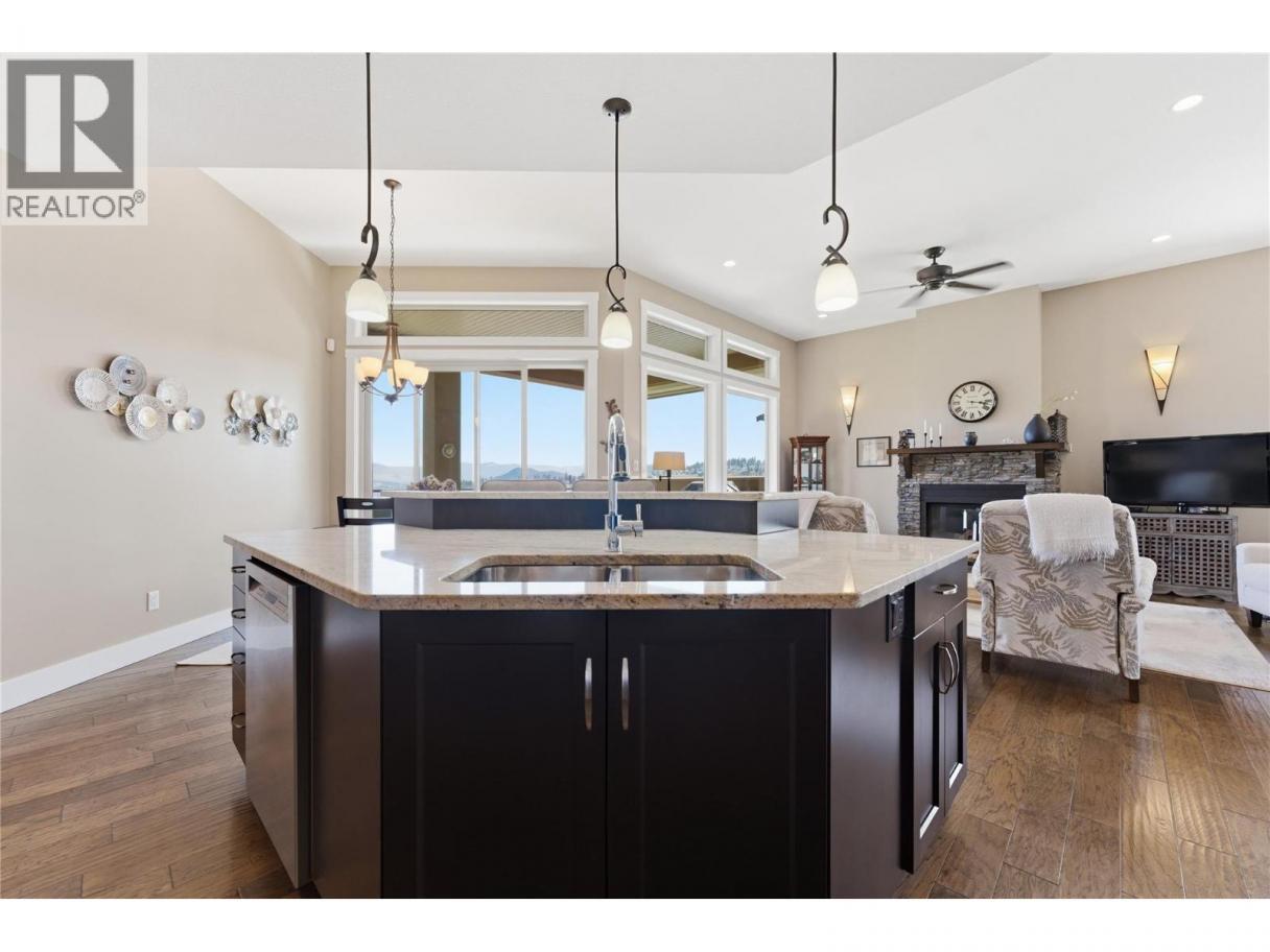Set above Wood Lake with unobstructed views of the water and surrounding orchards, this south facing 4-bedroom, 4-bathroom rancher captures the essence and beauty of Okanagan living. At the heart of the home, the chef’s kitchen features stainless steel appliances, a gas range, custom cabinetry, and a large island. The adjoining living and dining areas flow seamlessly onto the covered balcony, creating the perfect setting to host or enjoy quiet evenings overlooking the lake. The main floor primary suite is a private retreat, complete with a spa-inspired ensuite and generous walk-in closet. A second main floor bedroom or office features soaring 16-foot ceilings and oversized windows, filling the space with natural light. Downstairs, the walk-out basement opens into a bright and welcoming lower level. A large rec room complete with a wet bar and a Scandinavian-style gas fireplace is perfect for cozy nights or a dedicated games and entertainment area. Two additional bedrooms and bathrooms provide ample space for family or guests. The level backyard extends your living outdoors, perfect for kids to play, with the option to add a pool if desired. A double garage plus RV or boat parking gives you plenty of room for all your vehicles and toys. Located in one of Lake Country’s most desirable neighborhoods, The Lakes, you are just minutes from the airport, world-class wineries, trails, beaches and the pristine waters of Okanagan Lake. HWT 2021, Roof 2012, Furnace 2011, A/C 2011, 200amp (id:6769)