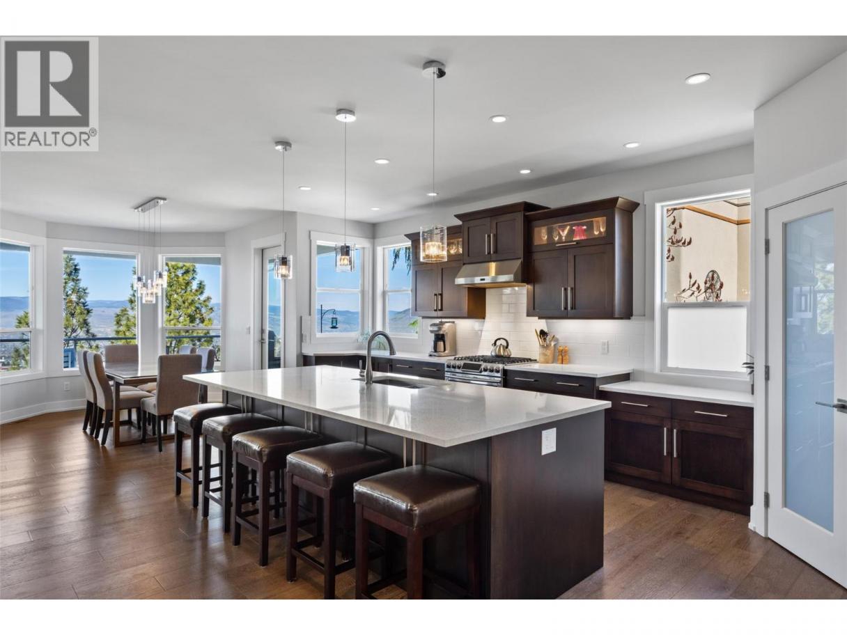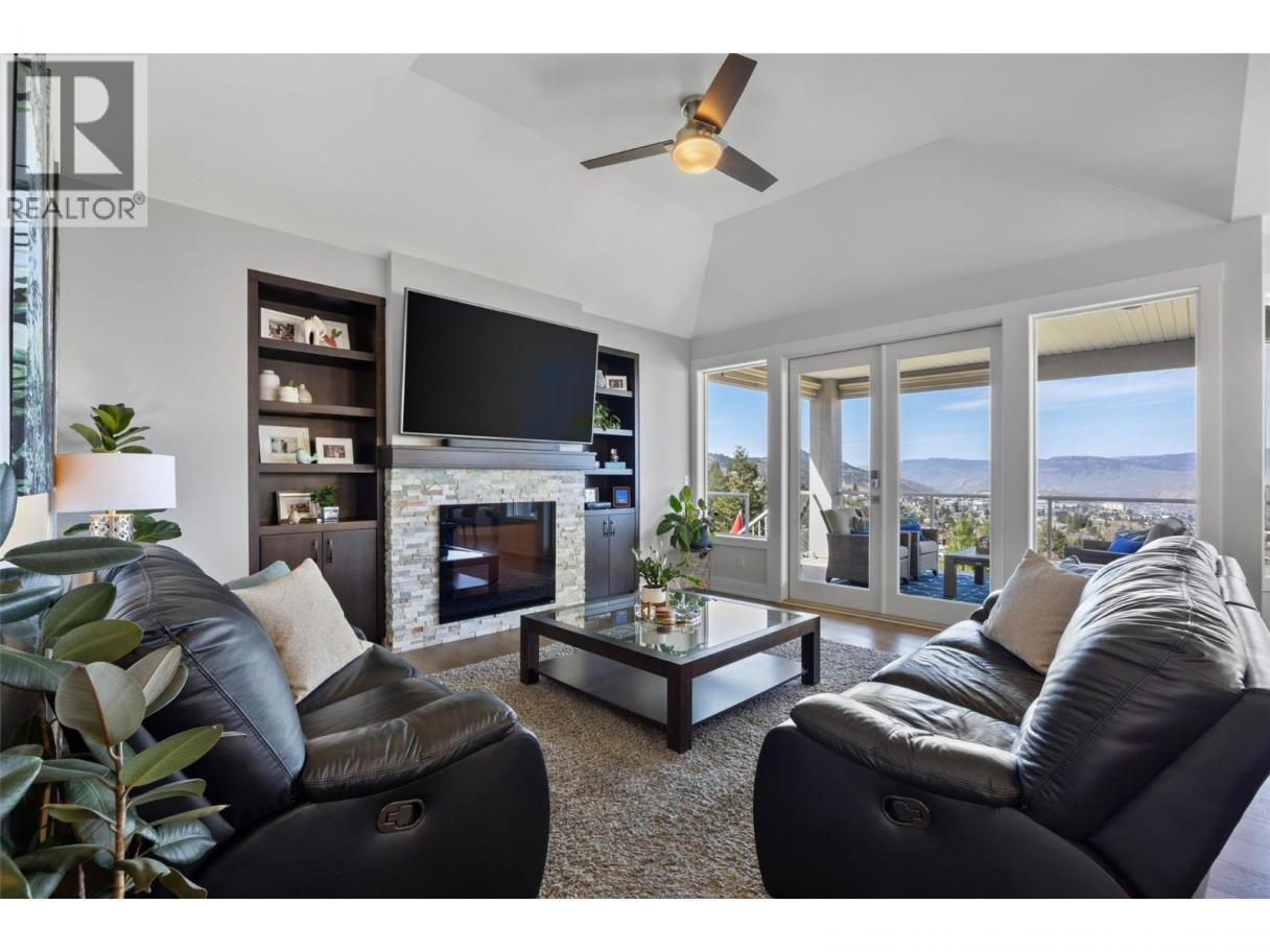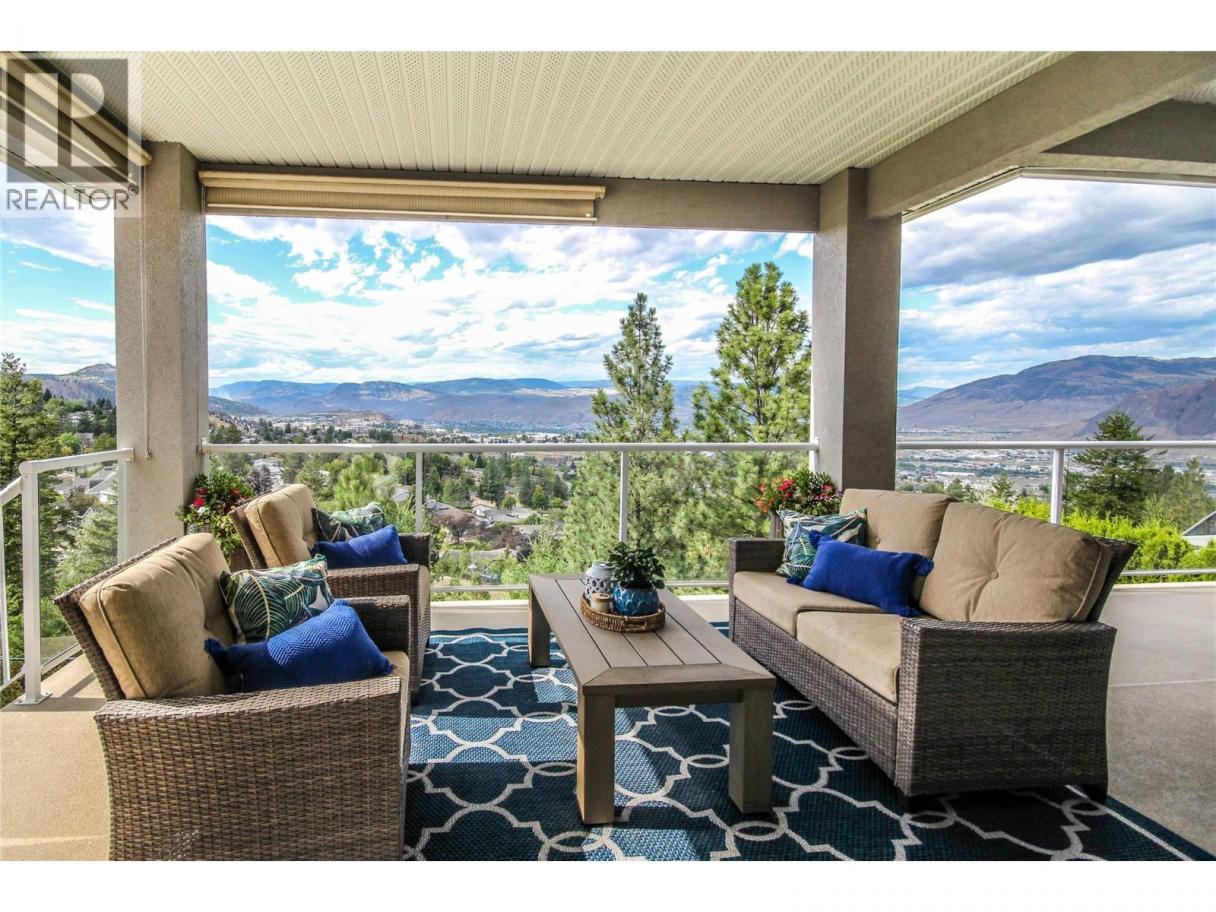 Experience this centrally located, fully updated level-entry executive rancher overlooking nearly all of Kamloops — city, river, mountains, and the north valley. Backing onto Peterson Creek Park, this home on sought-after Coppertree Court offers sweeping 180-degree views that are truly unmatched in location and scenery. RV parking is available for all your toys. Inside, a grand 12-foot entry ceiling and elegant curved staircase welcome you into an open-concept great room with vaulted ceilings, walls of windows, and breathtaking views. The stunning kitchen features stone counters, soft-close cabinetry, stainless steel appliances with a gas range, and a large corner pantry. Step out to the mostly covered deck with a natural gas BBQ hookup — perfect for entertaining while soaking in the views. Extensive upgrades include: kitchen and all bathrooms, engineered hardwood throughout, custom curved stair rails, built-ins, fireplace, light fixtures, fresh paint, and EV charging. The main floor offers a spacious primary bedroom with a 6-piece ensuite and walk-in closet, a second bedroom, 4-piece bath, and laundry leading to an oversized 2-car garage (23'5x23'3). The lower level features a large family room, two bedrooms, a 4-piece bath, storage, and additional unfinished space under the garage. In-floor radiant heat, an air exchanger for summer cooling, underground sprinklers, raised garden beds, and a berry patch complete this exceptional home! (id:6769)