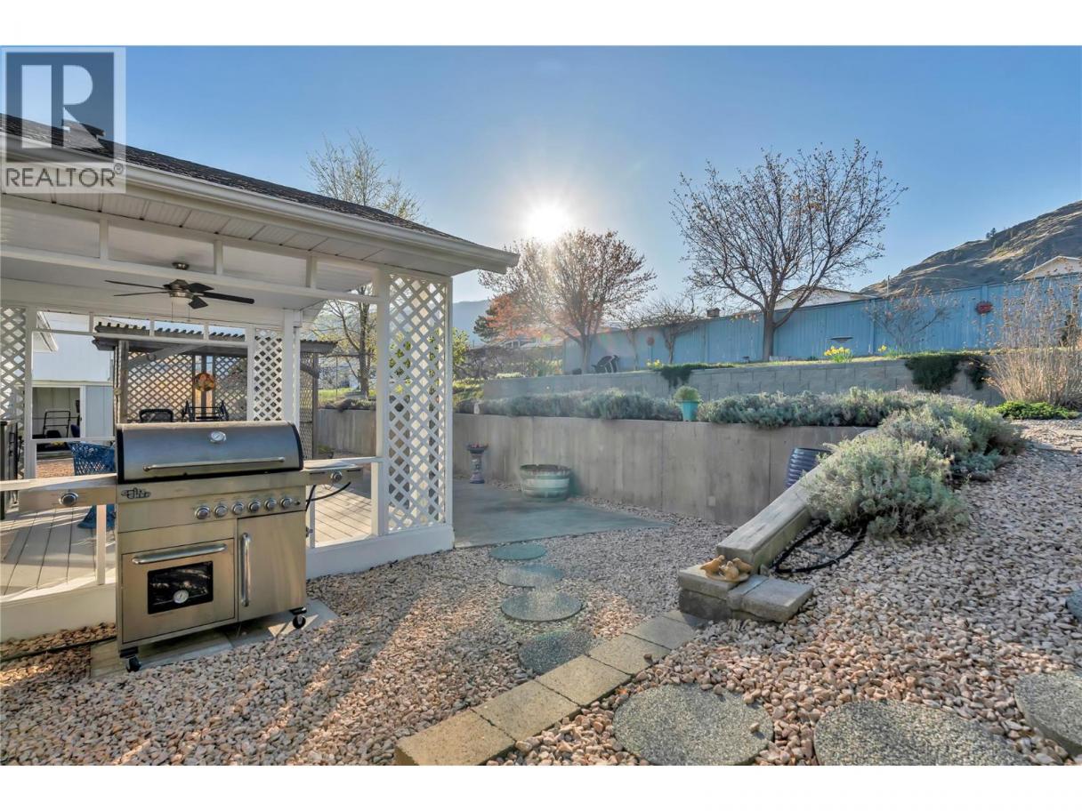 OPEN HOUSE SATURDAY 1:30 - 2:30. Move-in ready 2 bed + den, 2 bath rancher in the heart of Oliver! This well-maintained home offers RV parking, stunning mountain views, and a host of recent upgrades. Backing onto an irrigation channel with direct trail access, it’s perfect for those who enjoy outdoor living. Inside, you’ll find engineered hardwood floors and a bright open-concept layout. The gourmet kitchen features quartz countertops, island seating, and excellent storage—ideal for both everyday living and entertaining. The spacious primary suite includes a walk-in closet and full ensuite, while the versatile den is perfect for a home office or guest space. Recent updates include a new hot water tank (July 2024) and replacement of Poly-B plumbing with PEX for peace of mind. Step outside to a private, fully fenced backyard complete with a covered deck, pergola-covered patio, grapevines, and a terraced garden area—perfect for green thumbs. The xeriscaped front yard offers low-maintenance curb appeal. Additional features include a large single car garage, 4-ft crawl space, and ample extra parking. Conveniently located within walking distance to schools, shopping, and amenities—this South Okanagan gem has it all! (id:6769)