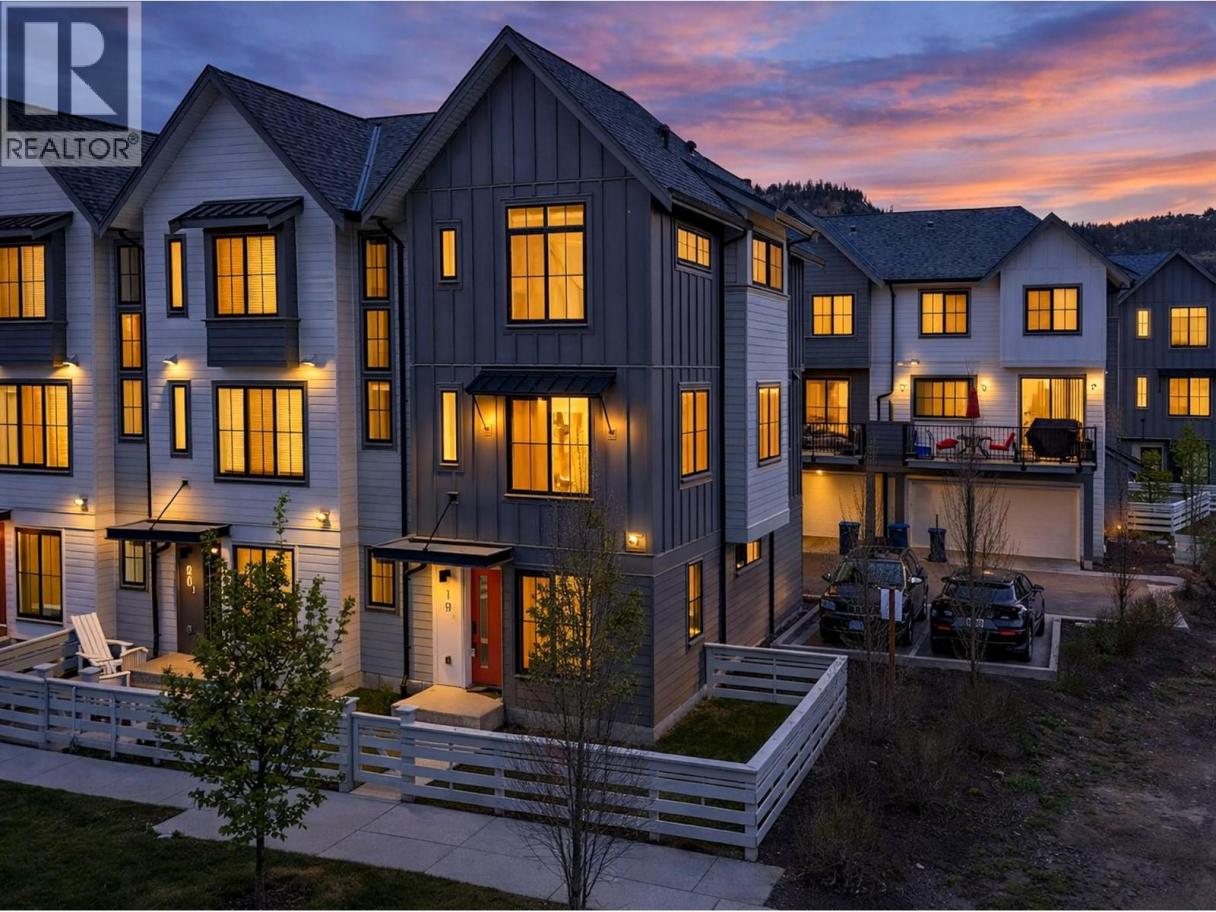 2023-built, upgraded 4-bedroom, 3-bathroom END-UNIT townhome with DOUBLE GARAGE offers a preferred, quiet location within the complex, set back from the main road for added privacy. Enjoy hill-side and park views along with abundant natural light from extra windows throughout. With only one shared wall, this home feels bright, airy, and private. Offering 1,500 sq. ft. of thoughtfully designed living space, the open-concept main floor features laminate flooring throughout, stainless steel appliances, and a gas range. The kitchen is enhanced with a premium pantry rollout system and ample cabinet space. Upstairs, upgraded laminate flooring continues throughout. The spacious primary bedroom includes a walk-in closet and large ensuite, while two additional bedrooms, laundry, and a 4-piece bathroom complete the top floor. The entry level features a fourth bedroom, added as an upgrade ideal for guests, a home office, or extended family. Step outside to your private, fenced outdoor space, perfect for pets, kids, or quiet relaxation. A large double garage provides generous parking and additional storage. Ideally located just minutes from downtown Kelowna, UBC Okanagan, Kelowna International Airport, and close to parks, schools, shopping, and transit, this home delivers modern comfort in one of Kelowna’s most sought-after neighbourhoods. Pet friendly 2 dogs OK! Don’t miss this one! (id:6769)