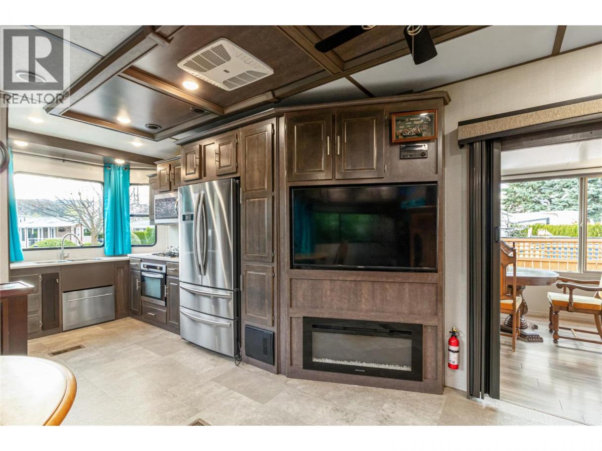 Luxury Destination Hampton Model 2018 in Holiday Park resort! Discover the perfect blend of comfort and lifestyle in this extensively upgraded unit with a massive addition, totaling over 550 sq. ft. of living space. Located on one of the larger, fully fenced lots (2927 sq ft ) in the prestigious Holiday Park, this home is designed for year-round enjoyment. Features 2 distinct living areas with a divider for privacy, plus a cozy upper loft with queen bed. Modern Kitchen offers solid wood cabinetry, high-end stainless steel appliances. Unit also Includes a stackable Splendide washer/dryer. ?Upgraded Systems: 4 heat sources including 2 fireplaces, a new Heat Pump (2024), and a furnace fully serviced in 2026. 3 separate AC units with individual thermostats ensure cost-efficient cooling. Easy-care laminate and linoleum flooring throughout (carpet only in the loft/slide). Roof sealed in 2022, custom roofing on all slides, Insulated skirting and heated water box with 100 watt light bulb and water hose wrap. Home is flooded with Natural Light pouring from 23 windows. Huge deck offers you cozy outdoor living. Just steps away - Amenities include BEACH, kayak storage, indoor POOL, hot tubs, GOLF, pickleball, a GYM, a woodworking shop and much more! SHORT TERMS rentals allowed! 3 PETS welcome (max 2 dogs, no breed restrictions). Taxes $850 and NO PTT! 2 parking stalls + RV storage available. Annual park fee $5800 include Water, Sewer, amenities! Lease paid till 2046. (id:6769)