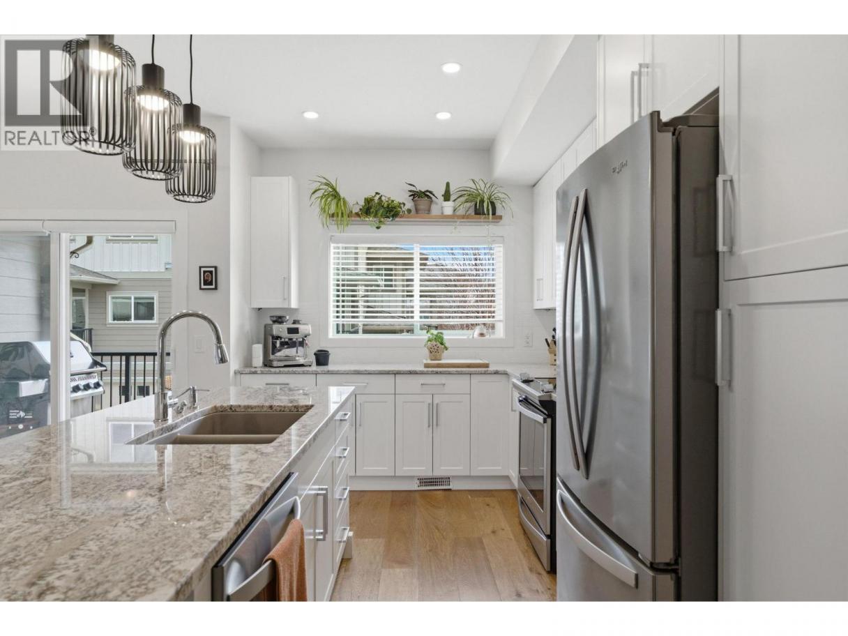 Thoughtfully designed for families, first-time buyers, or investors, this 1,564 sqft 3 bed 3 bath townhome features a bright, open-concept layout with engineered hardwood flooring, a custom kitchen complete with European granite countertops, stainless steel appliances, and seamless flow to a sun-filled deck perfect for BBQs, morning coffee, or relaxing evenings. Upstairs, you’ll find three spacious bedrooms, including a generous primary suite with walk-in closet and private ensuite, along with conveniently located laundry for easy day-to-day living. The oversized double tandem garage offers incredible flexibility with room for two vehicles, extra storage, or even a home gym or workshop setup. This pet-friendly complex allows 2 dogs, 2 cats, or one of each, with no size restrictions. Enjoy low-maintenance living with affordable strata fees and professionally landscaped grounds. Located in the heart of North Glenmore, just steps to shopping, parks, Watson Elementary, and Knox Middle School, with a short drive to UBCO. Ample street parking right outside your private entrance makes hosting guests easy. Well priced, well located, and move-in ready is a home that offers true value and functionality in a family-friendly neighbourhood. Well priced, well located, and move-in ready with quick possession possible—this is a home that offers true value and functionality in a family-friendly neighbourhood. (id:6769)