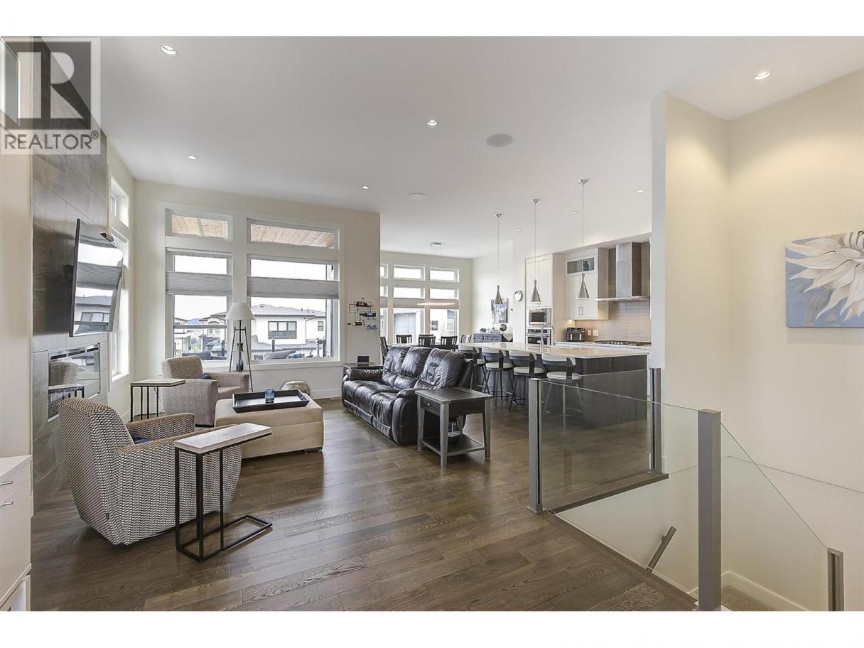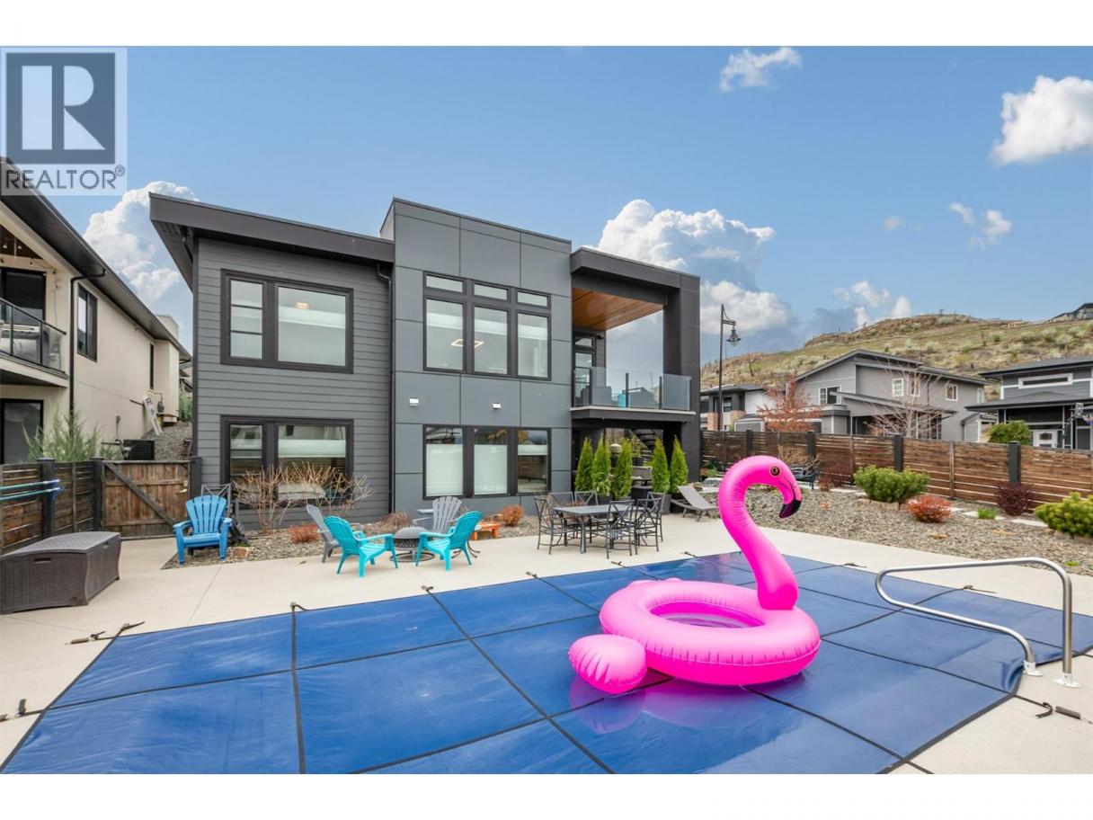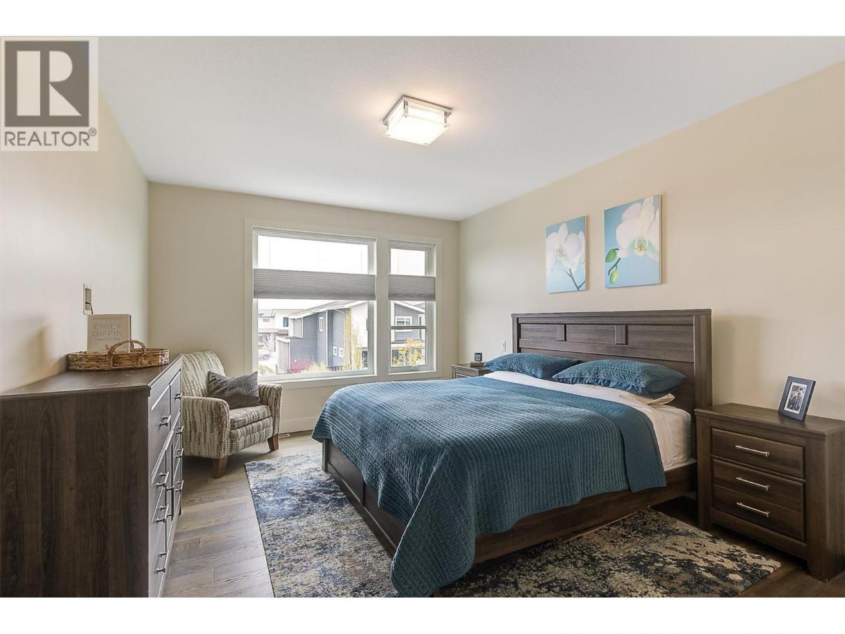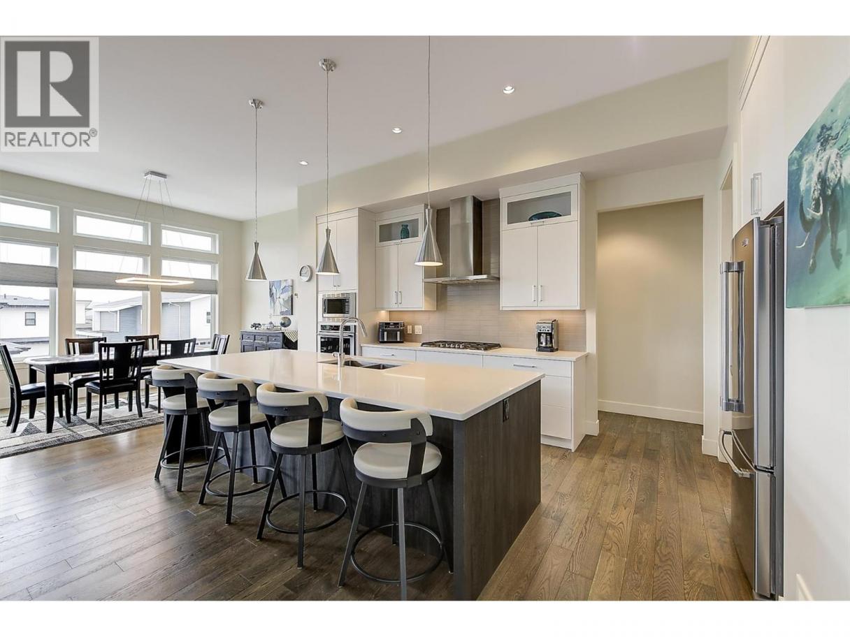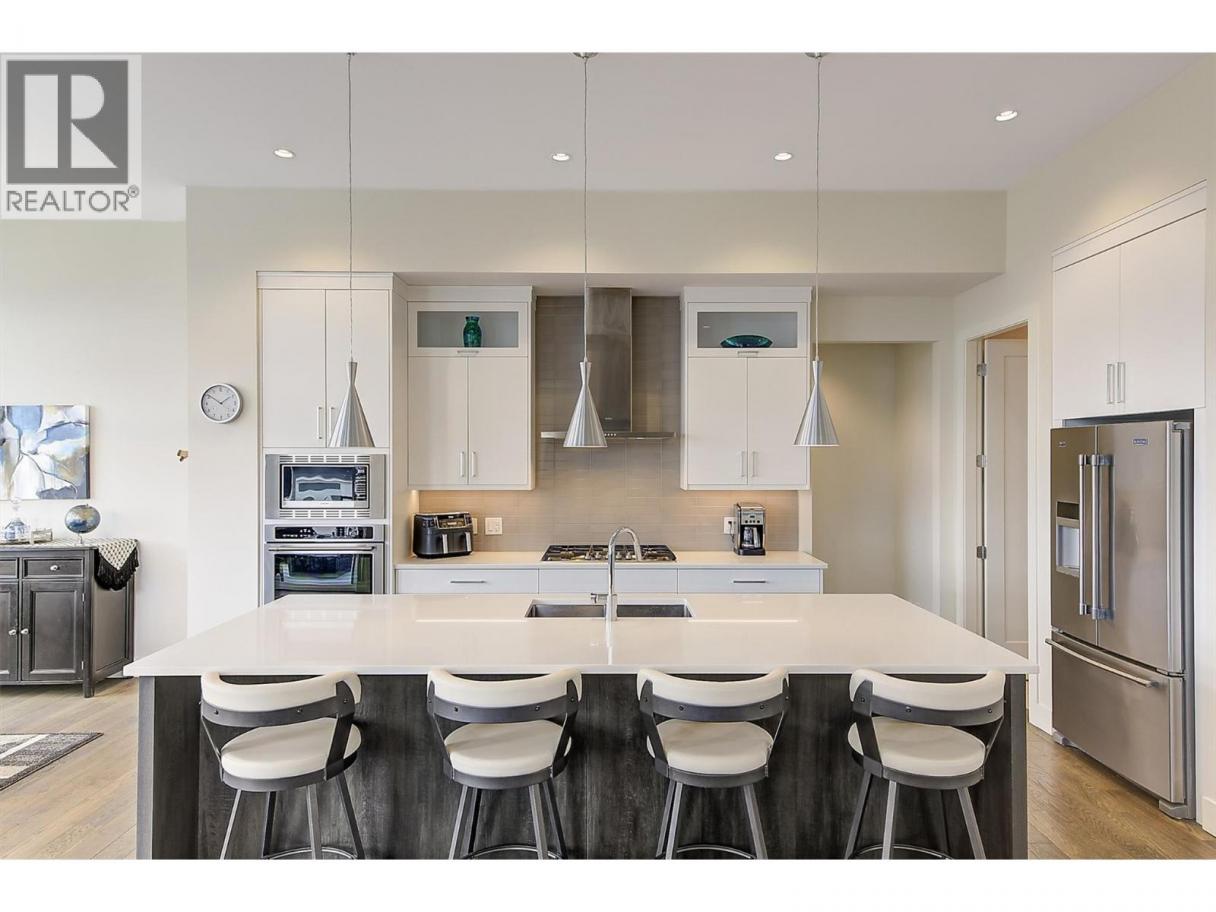Elevated Living in The Ponds | Lake Views • Legal Suite • Resort-Style Backyard. This stunning 5-bedroom, 3-bathroom walkout rancher. Step inside to an elegant open-concept main level, anchored by rich hardwood flooring and a chef-inspired kitchen featuring quartz countertops, premium stainless steel appliances, a built-in oven, and a layout designed for both everyday living and effortless entertaining. The grand living area extends to a spacious covered deck, where panoramic lake views create the perfect backdrop for morning coffee. The main-level primary bedroom is a true sanctuary, complete with a walk-in closet and a spa-inspired ensuite boasting heated floors, a designer double vanity, tiled shower, and a freestanding soaker tub. A second bedroom or ideal home office completes the upper level. Downstairs, the fully finished walkout level offers an additional bedroom plus a beautifully appointed legal 2-bedroom suite, featuring high-end appliances, premium finishes, and enhanced sound separation, ideal for extended family or rental income. Outdoors, your private backyard oasis awaits. Enjoy a resort-style saltwater pool, surrounded by peaceful natural beauty and designed for ultimate relaxation and entertaining. Located in the Ponds community, you’re steps to scenic hiking trails, winter skating, and minutes to top-rated schools including Canyon Falls Middle and Bellevue Creek Elementary, along with convenient shopping at Save-On-Foods. This is modern luxury. (id:6769)