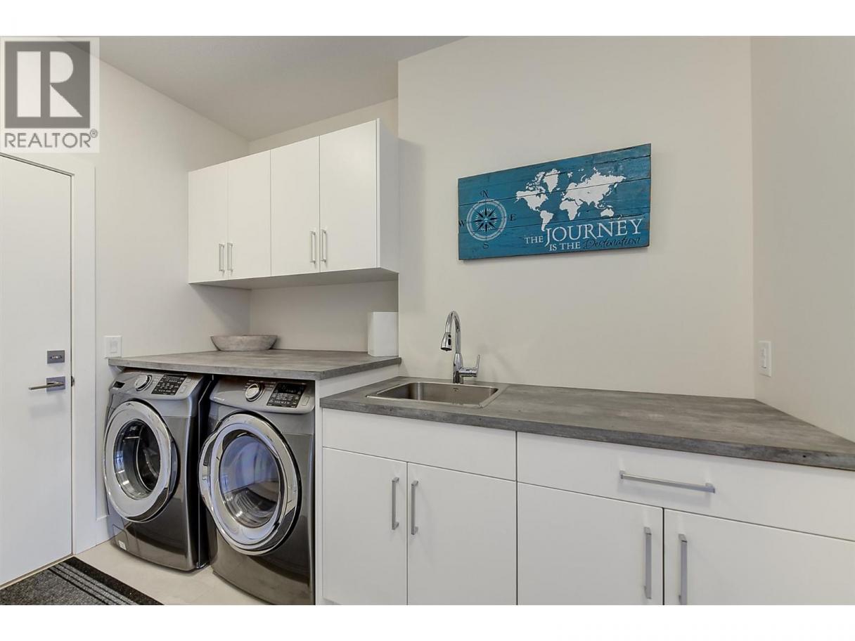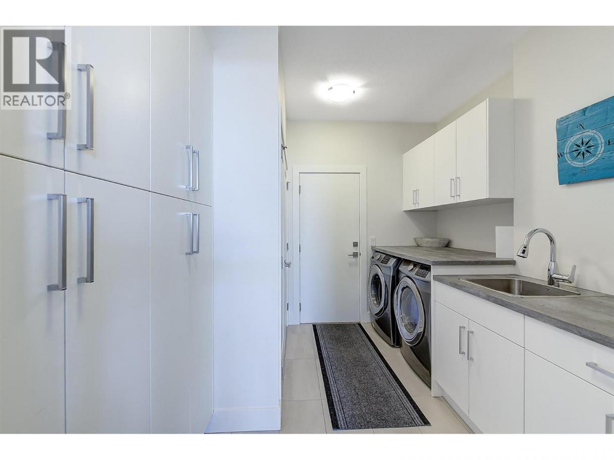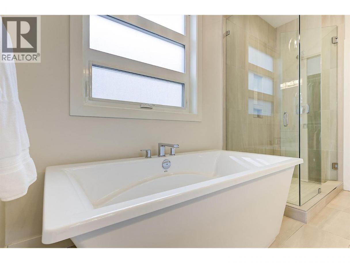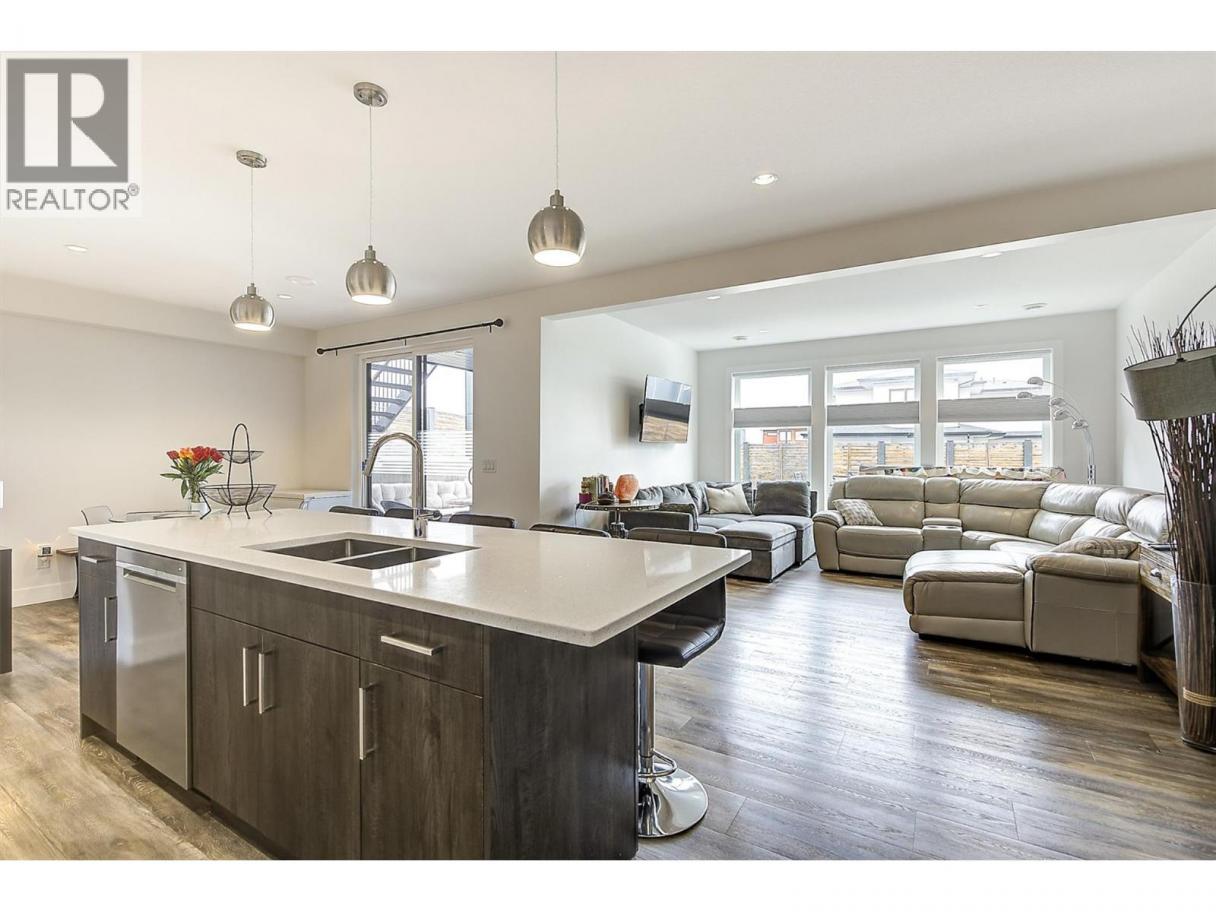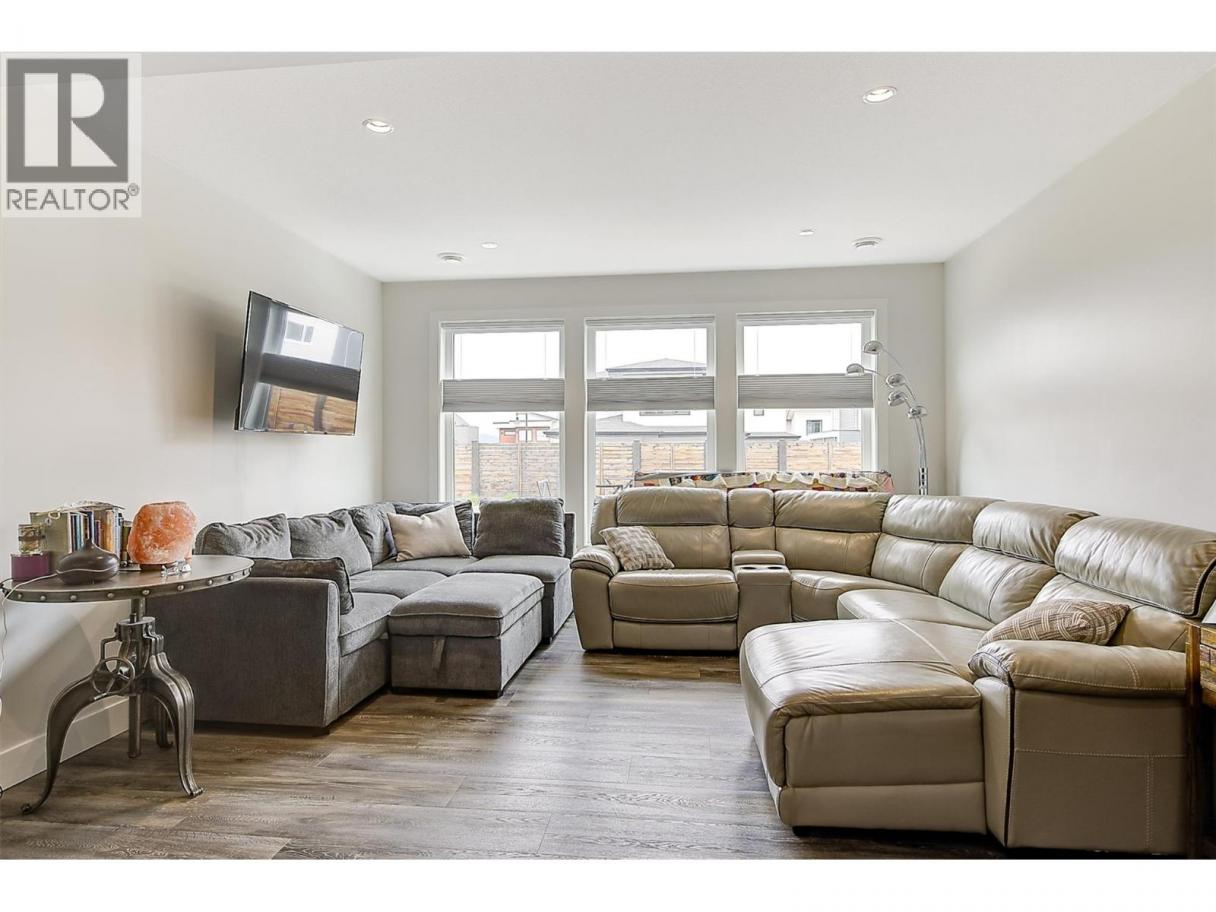 Elevated Living in The Ponds | Lake Views • Legal Suite • Resort-Style Backyard. This stunning 5-bedroom, 3-bathroom walkout rancher. Step inside to an elegant open-concept main level, anchored by rich hardwood flooring and a chef-inspired kitchen featuring quartz countertops, premium stainless steel appliances, a built-in oven, and a layout designed for both everyday living and effortless entertaining. The grand living area extends to a spacious covered deck, where panoramic lake views create the perfect backdrop for morning coffee. The main-level primary bedroom is a true sanctuary, complete with a walk-in closet and a spa-inspired ensuite boasting heated floors, a designer double vanity, tiled shower, and a freestanding soaker tub. A second bedroom or ideal home office completes the upper level. Downstairs, the fully finished walkout level offers an additional bedroom plus a beautifully appointed legal 2-bedroom suite, featuring high-end appliances, premium finishes, and enhanced sound separation, ideal for extended family or rental income. Outdoors, your private backyard oasis awaits. Enjoy a resort-style saltwater pool, surrounded by peaceful natural beauty and designed for ultimate relaxation and entertaining. Located in the Ponds community, you’re steps to scenic hiking trails, winter skating, and minutes to top-rated schools including Canyon Falls Middle and Bellevue Creek Elementary, along with convenient shopping at Save-On-Foods. This is modern luxury. (id:6769)