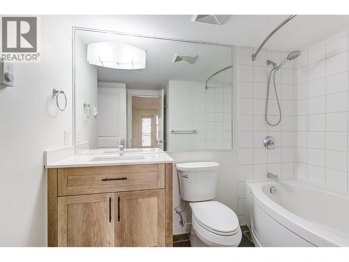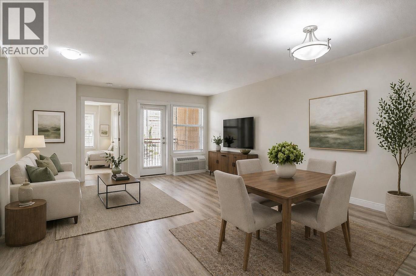 Tastefully and completely renovated 2 bed/1 bath 784 sq ft condo in a desirable location! Bright open layout featuring kitchen with new stainless steel appliances, updated countertops, and eating bar open to the dining and living areas. Enjoy two covered private decks, one off the living room and one off the spacious primary bedroom, both overlooking the pool and mountains. Large primary with walk in closet and updated cheater ensuite. Second bedroom is perfect for guests, home office or hobby room. Stylish laminate flooring throughout and freshly painted. New heating/cooling unit in the living room plus newer baseboard heaters. In-suite laundry, secure underground parking and storage locker included. Offering exceptional amenities: outdoor pool, hot tub, volleyball courts, BBQ, picnic areas and pet friendly spaces. Walk to shopping, restaurants, parks, and transit with easy access to UBCO. (id:6769)