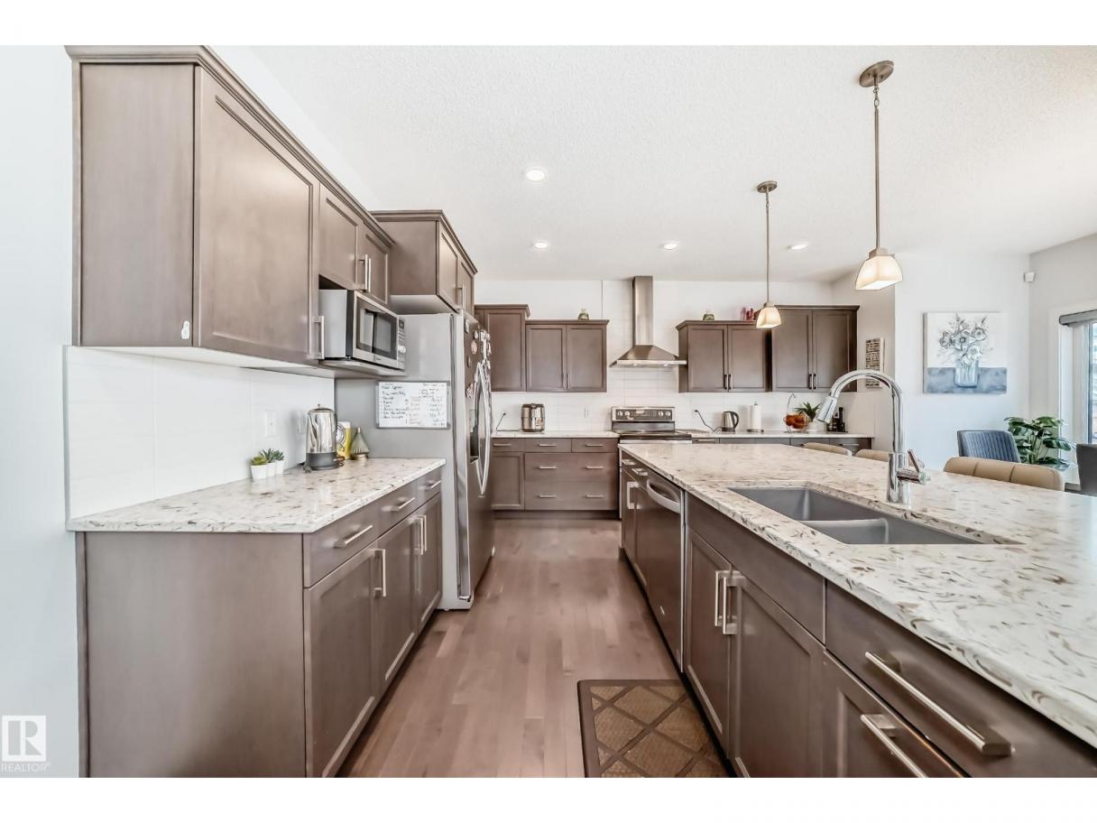 SECLUDED CUL-DE-SAC, AIR CONDITIONED, FINISHED BASEMENT, 4 BEDROOMS, 4 BATHS! Ideally positioned in the sought-after community of Windermere, this well-appointed residence offers 3,200 sq. ft. of thoughtfully designed living space (including the professionally finished basement). Sunny, west-facing backyard. Bright, open-concept main floor (9 windows). A striking stairwell extends seamlessly from the upper level to the basement, enhancing the home’s sense of space and architectural flow. Chef-inspired kitchen features an oversized quartz island, premium stainless-steel appliances, walk-in pantry. Three spacious bedrooms include a generously sized primary retreat with a spa-inspired 5-piece ensuite. Large bonus room, second-floor laundry. Finished basement offers a spacious family room, bedroom, full bath, den. Double attached garage with additional driveway parking. Minutes to top schools, Currents of Windermere, golf, trails, and Movati. Quick possession available. (id:6769)