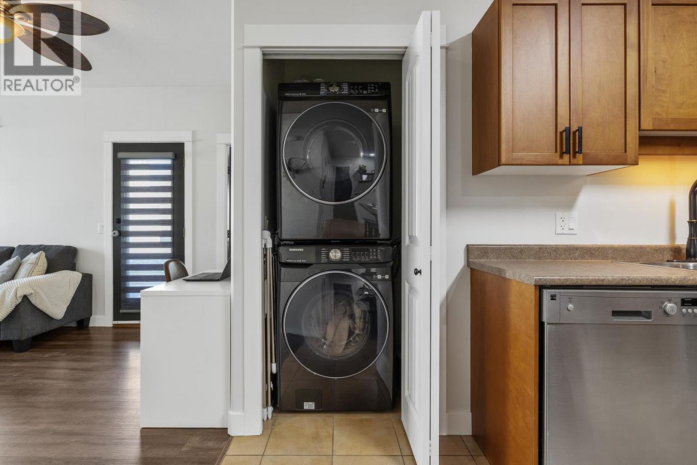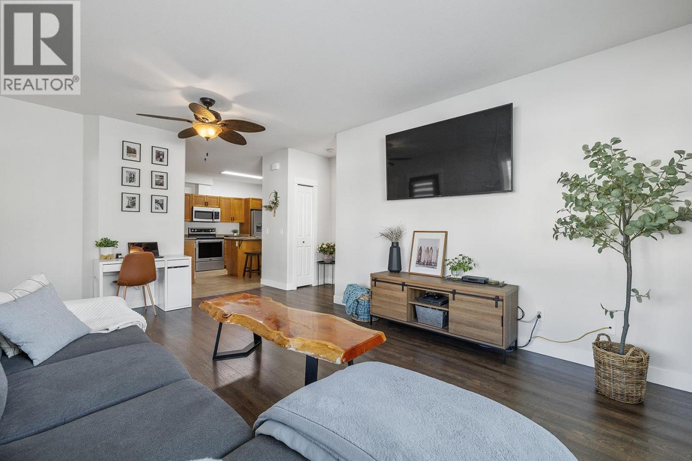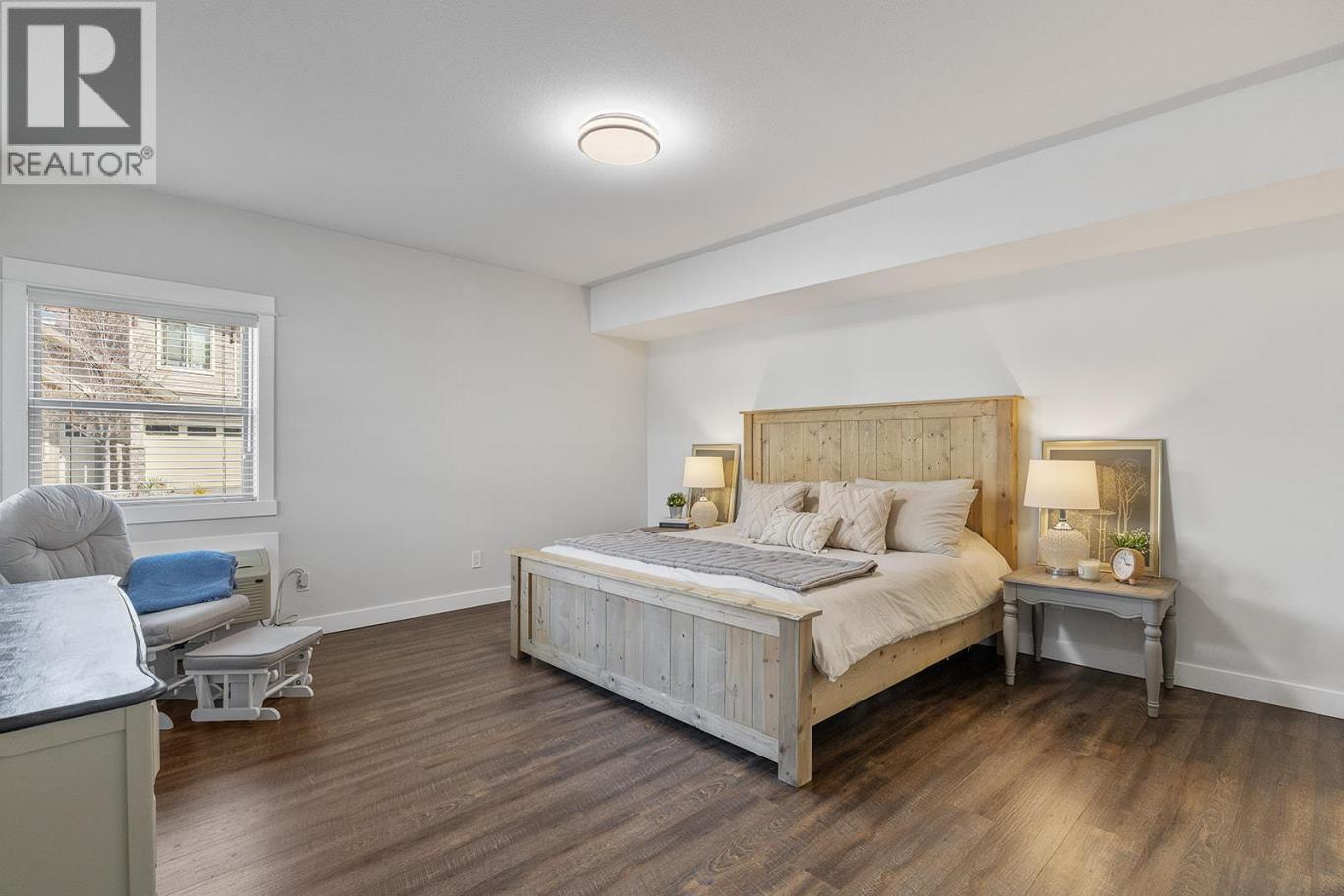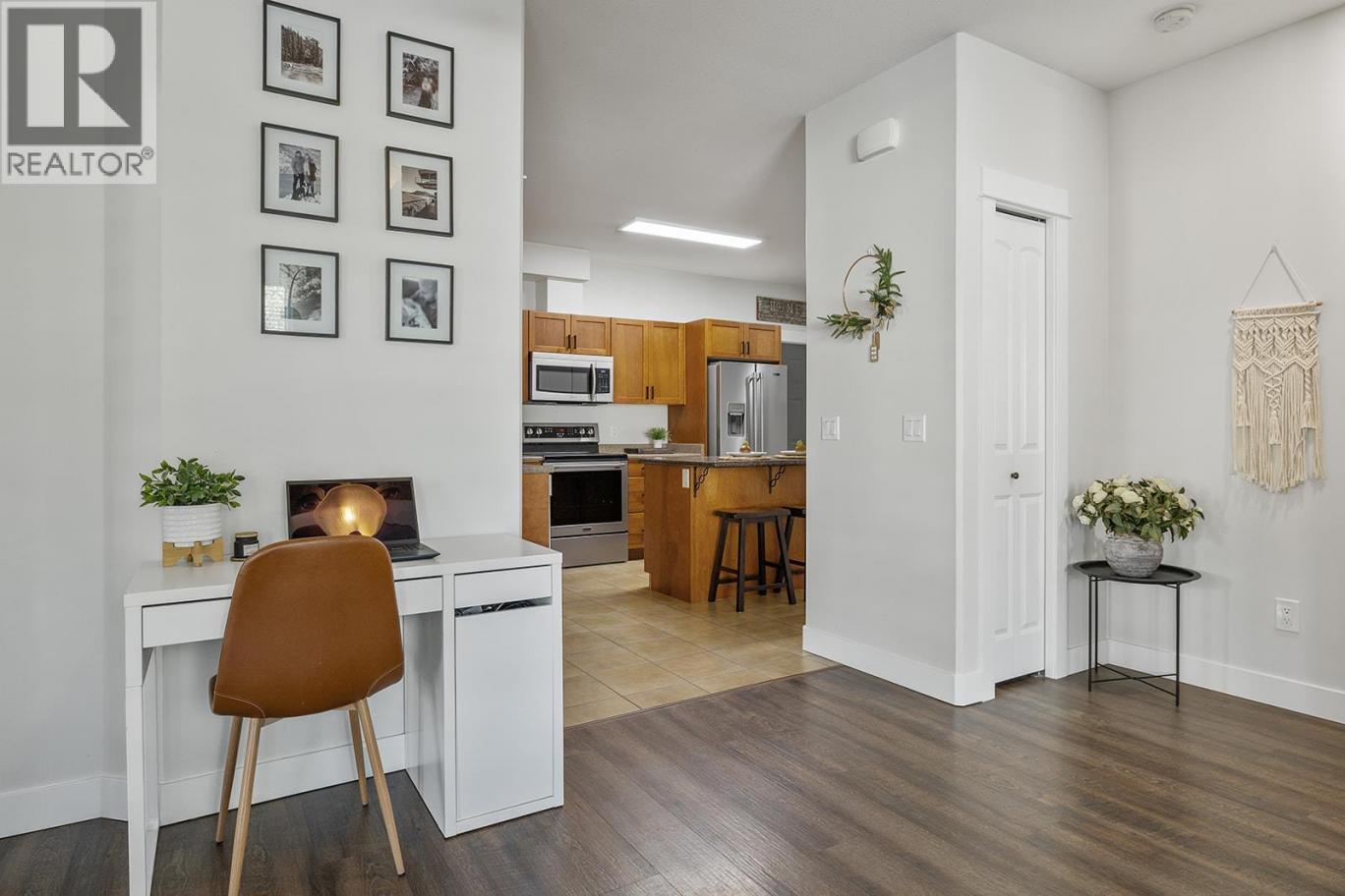 Welcome to this charming ground-floor 2 bed, 2 bath home offering comfort, convenience, and exceptional value. Immaculately maintained and freshly painted throughout, this unit is move-in ready and thoughtfully designed. The bright kitchen features updated stainless steel appliances, an eat-up island, and direct access to the attached single-car garage—perfect for everyday ease. A private front entry also leads directly into the kitchen for added functionality. The spacious living room opens onto a covered concrete patio and grassy area, creating a seamless indoor-outdoor living experience. The well-designed split-bedroom layout ensures privacy, with a generously sized primary bedroom featuring a 3-piece ensuite and walk-in shower. The second bedroom is bright and inviting, with convenient access to a full 4-piece bathroom. Thoughtful upgrades include newer lighting with dimmable features, a newer hot water tank, and two new P-TAC systems for efficient heating and cooling. Plus, low strata fees keep ownership affordable. Pet lovers will appreciate the rare allowance of 2 dogs or cats with no size restrictions. The attached garage provides parking for one car w/ storage with convenient access to first-come, first-serve parking for residents & visitors just outside. Steps to The Rail Trail, Beasley Park & beach—enjoy lake days, trails & easy Lake Country living right at your doorstep. A fantastic opportunity for first-time buyers, downsizers, or investors alike! (id:6769)