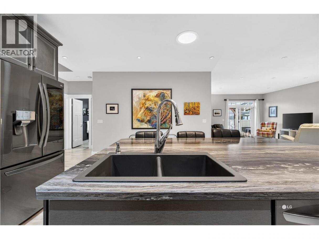 Affordable Okanagan Lake living in beautiful Parker Cove. This executive-style rancher sits on one and a half lots in a gated lakeside community with exclusive Okanagan Lake access. Just a 5-minute walk from the beach and only a short drive from Vernon. Registered lease runs until 2056, providing long-term security while offering one of the most affordable opportunities for lake lifestyle living in the North Okanagan. High-quality construction is highlighted by a spacious foyer, grand front door, and impressive 11-foot ceilings. Thoughtfully designed for convenient one-level living, the primary bedroom is privately located at one end of the home with two additional bedrooms situated at the opposite end. Built with ICF blocks, the home is efficient to heat and cool. Kitchen features a large island, pendant lighting, pull-out storage, top-of-the-line appliances, and a butler pantry. Outside, enjoy a private fully fenced yard, patio with a four-season gazebo, and raised flower beds. Highlights include a huge crawlspace for storage and a 5-foot attic space with pull-down ladder access from the oversized attached garage. 30 Amp RV parking spot, and recent upgrades include new solar tubes, updated flooring and paint, Hunter Douglas blinds, a water purification system, and LED lighting. Over 2,000 feet of shared Okanagan Lake waterfront, a private boat launch, and easy access to nearby North Okanagan hiking and biking trails. Call Tom Scott for more info: 236 888 5816 (id:6769)