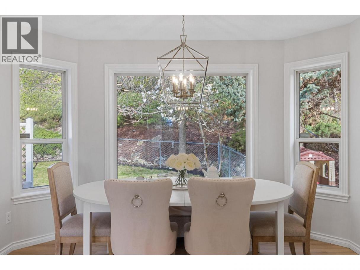 Live the dream in the Okaganan in this beautifully finished 5 bedroom home complete with a 2 bdrm mortgage helper suite and located in the highly sought-after community of Dilworth. Spanning on 1/3 acre lot, this home is situated in close proximity to beach, vineyards, shopping and everything Kelowna has to offer. The lower level is a self-contained suite with separate entrace to 2 bdrms, full bath, spacious family room, full kitchen, storage room and ensuite laundry, with versatility to extend into the main home with any future needs. Fall in love with this brand new kitchen featuring quartz countertops, dreamy faucets, granite farm sink and functional design. The upper level includes 2 good-sized bdrms and a primary bdrm of your dreams including a walk-in closet complete with laundry and a private patio perfect for evenings in the hot tub. The high-end finishes are carried on throughout in the private ensuite and main bathroom complete with soaker tub. The main level also features 2 dining areas, a family room and living room opening to a private patio with grapevine trellis, perfect for entertaining. The large picture windows showcase the peaceful valley views and beautiful mature trees. A rare lifestyle highlight is direct backyard access from your private trail leading to a scenic lakeview recreation area with ping-pong table, bar seating, and playground. Features: vinyl plank flooring, upgraded plumbing (no Poly B), modern pot lighting, large fenced yard, double garage. (id:6769)
