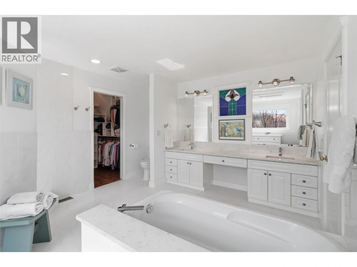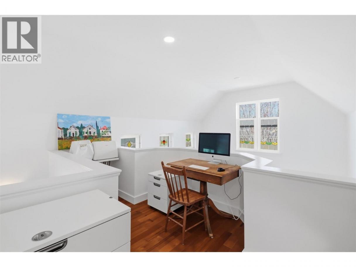 Stunning Upper Sahali home on a quiet cul-de-sac with exceptional curb appeal. Enter through a gate and white picket fence into a bright, window-filled space. Substantially renovated in 2016, the open floor plan connects the kitchen, family room, and dining area seamlessly. The family room overlooks gorgeous park-like landscaping, while the living room boasts a gas fireplace, high ceilings, and stained glass accents. Two large bedrooms and a 4-piece bathroom complete the main level. The top floor features a versatile nook ideal for crafting or a home office, leading to a stunning primary suite with a large ensuite including a soaker tub, walk-in tile shower, and walk-in closet. An adjoining flex room is perfect as a nursery, office, or additional living space with lovely views. The lower level offers a second family room with gas fireplace, laundry, storage, a 2-piece bathroom, and access to the double garage. The professionally landscaped yard by Lyons Landscaping features an 11-zone irrigation system and exceptional privacy - like having your own private park! Walking distance to McGowan Elementary and water park, a 5-minute drive to Sahali Secondary, and steps to the bus stop. Easy access to uptown amenities and shopping. Day before notice required for showings. (id:6769)