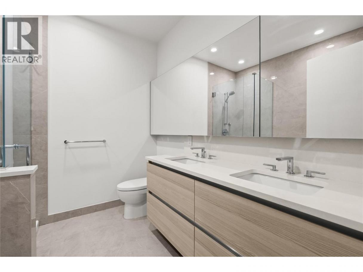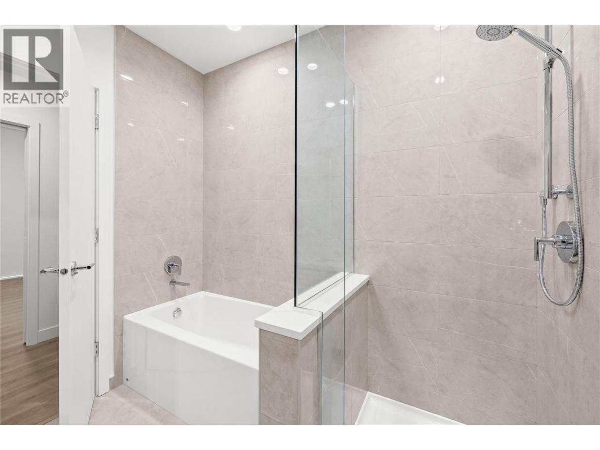 Waterstreet by the Park continues to define downtown Kelowna living as one of the city’s most recognizable and well designed addresses, known for connection, comfort, and long term value. This 3 bedroom plus den residence offers over 1,400 sqft of bright, modern living with sweeping southwest lake views. A 500 sqft wraparound balcony plus a second private balcony create seamless indoor outdoor flow and multiple vantage points to enjoy the scenery. Inside, a light, spa inspired designer palette complements the open concept layout and soaring 10 foot ceilings for an airy, calming feel. The gourmet kitchen features a gas range, wall oven, integrated fridge and freezer, and wine fridge, ideal for entertaining or everyday living. The primary suite includes balcony access, a walk thru closet, and a well appointed ensuite with double vanity, soaker tub, and separate shower. Two additional bedrooms are privately positioned on the opposite side of the home. Two side by side parking stalls and over 4,200 sqft of resort style amenities complete this downtown offering, steps from beaches, dining, and shopping. (id:6769)