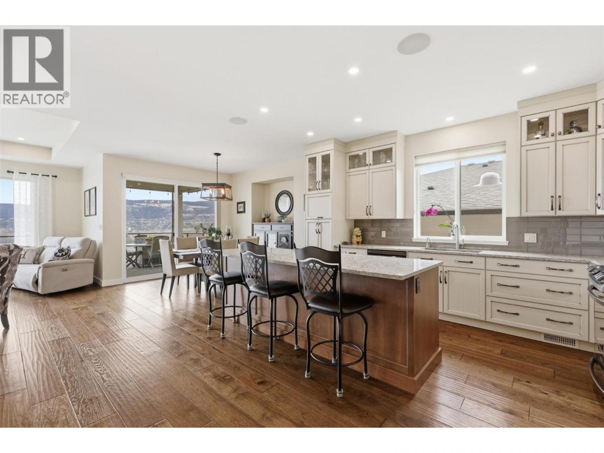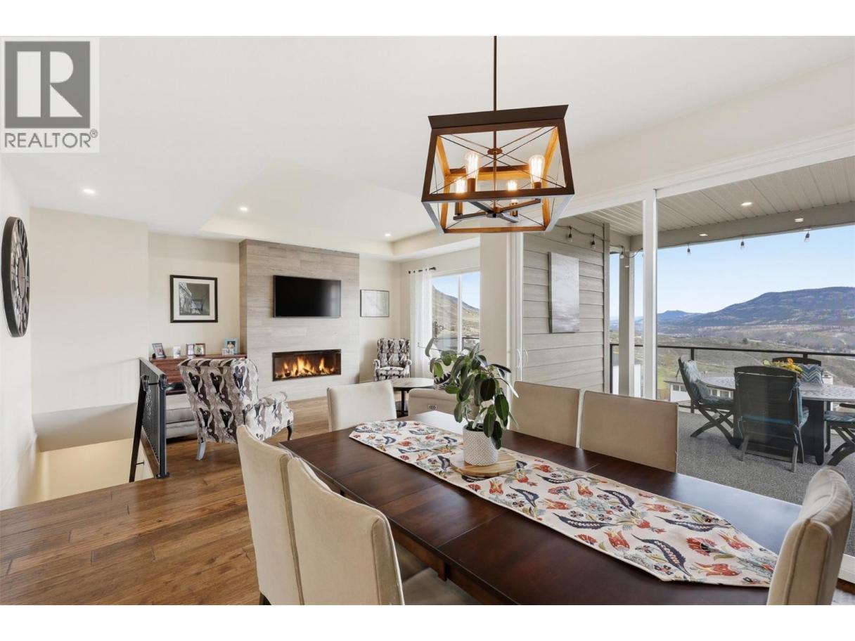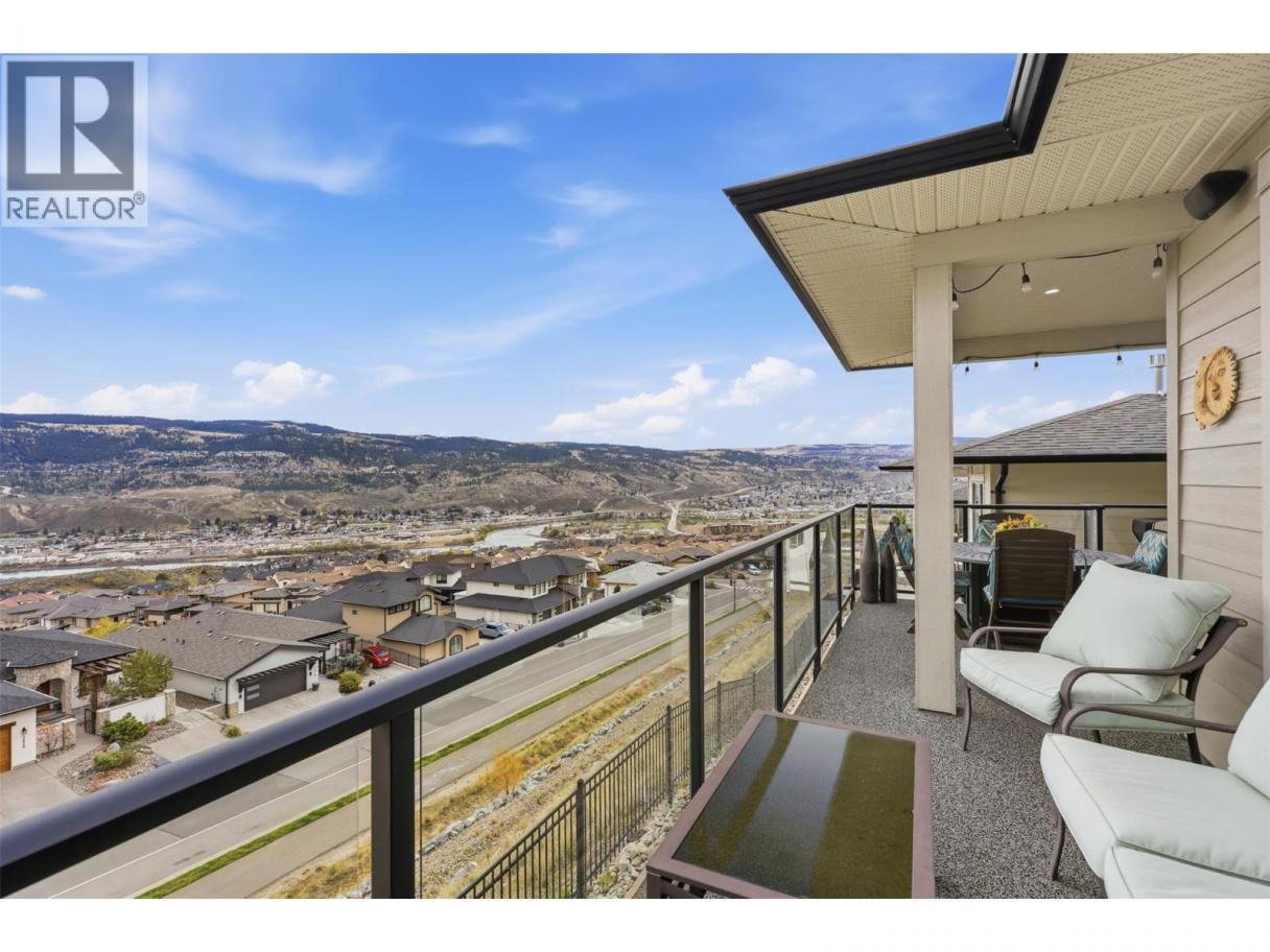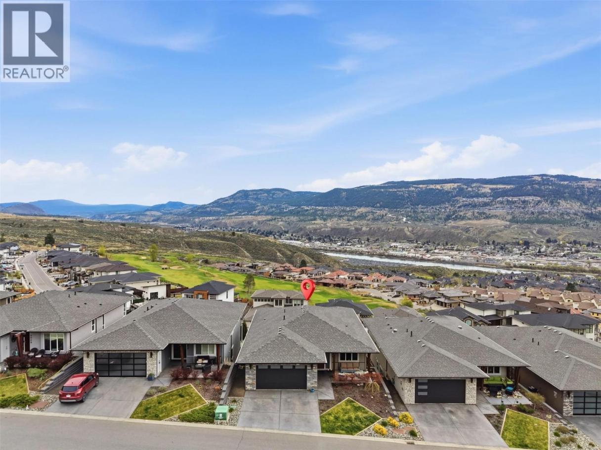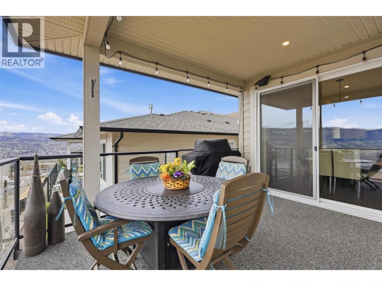Welcome to refined living in the sought-after Rio Vista community of Sun Rivers. This beautifully maintained 3 bedroom + den, 3 bathroom rancher with full basement offers a bright, open concept main floor designed for both everyday comfort and effortless entertaining. The kitchen features quality cabinetry, ample counter space, and a central island, flowing seamlessly into the dining and living areas where a modern electric fireplace creates a warm focal point. The main level includes a spacious primary bedroom with walk-in closet and ensuite, a dedicated office, convenient 2-piece powder room, and main floor laundry. Sonos sound is wired into the kitchen, ensuite, and upper deck, enhancing the indoor-outdoor lifestyle. Downstairs, the fully finished basement offers a generous rec room, two bedrooms, a full bathroom, and a dedicated media room complete with wet bar and beer fridge—perfect for movie nights and entertaining—plus a separate wine storage area. Geothermal heating and cooling provides efficient year-round comfort. Additional features include rough-in for central vacuum, gas BBQ hookup on the upper deck, and electrical rough-in for a hot tub on the lower deck. Enjoy low maintenance outdoor living with hillside and city views, all just minutes from downtown Kamloops, golf, and walking trails. (id:6769)
