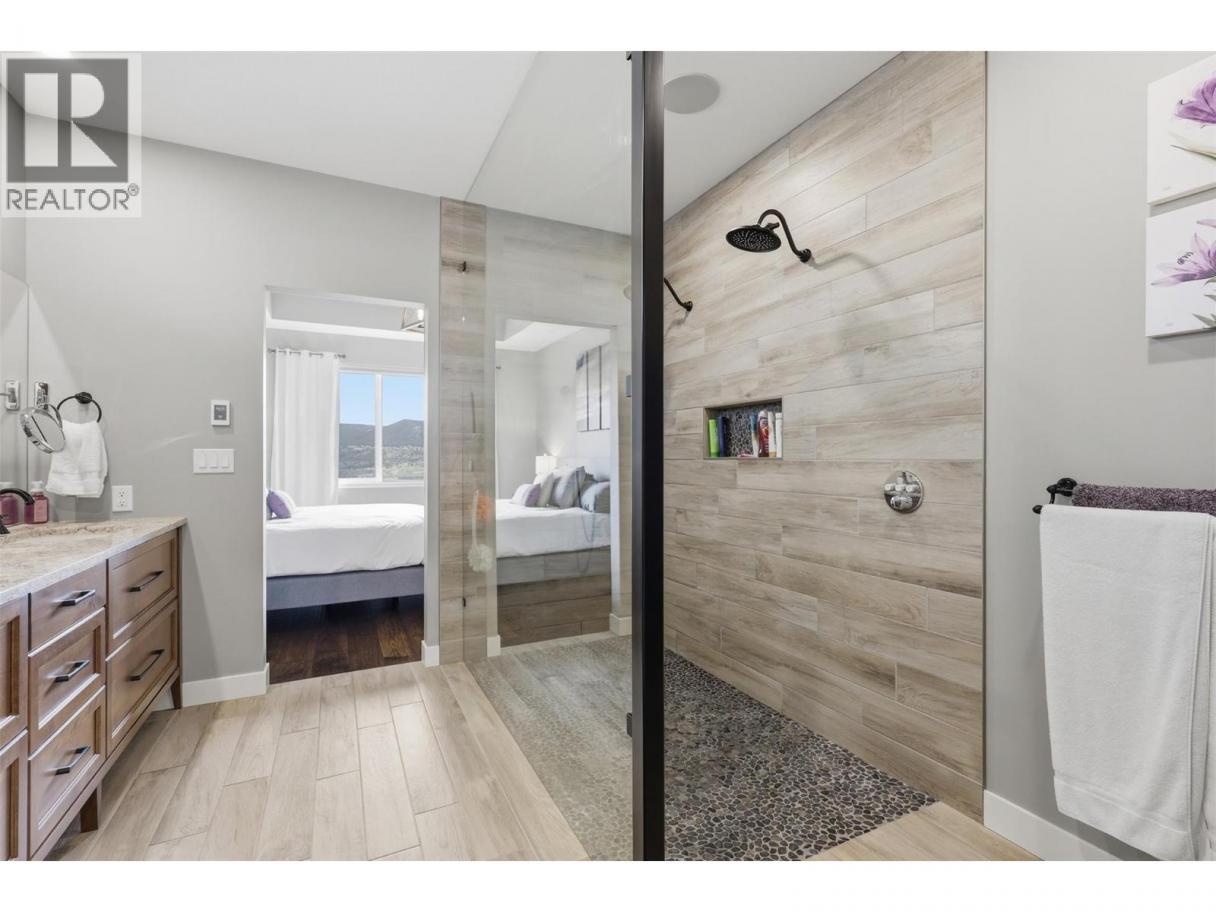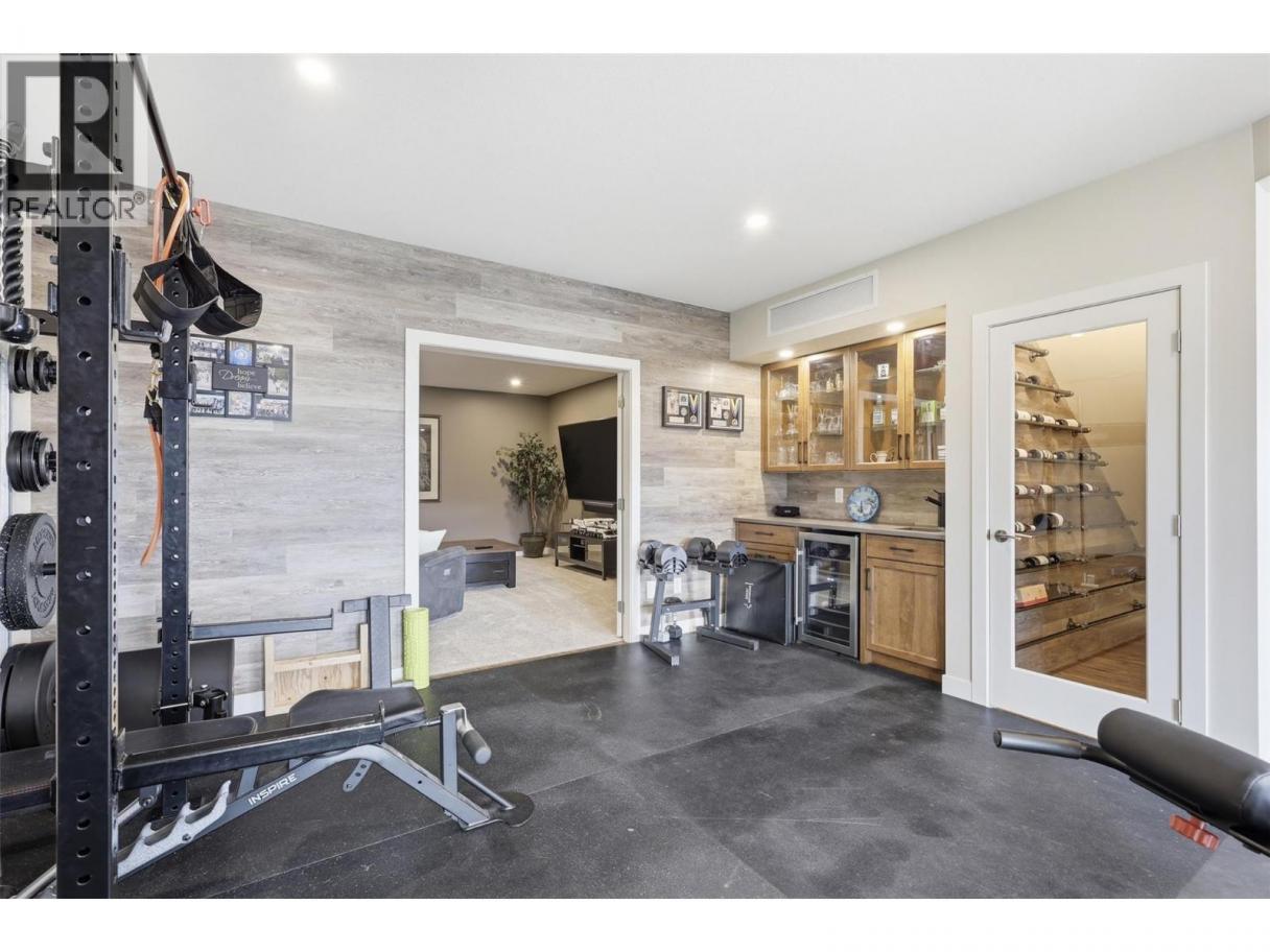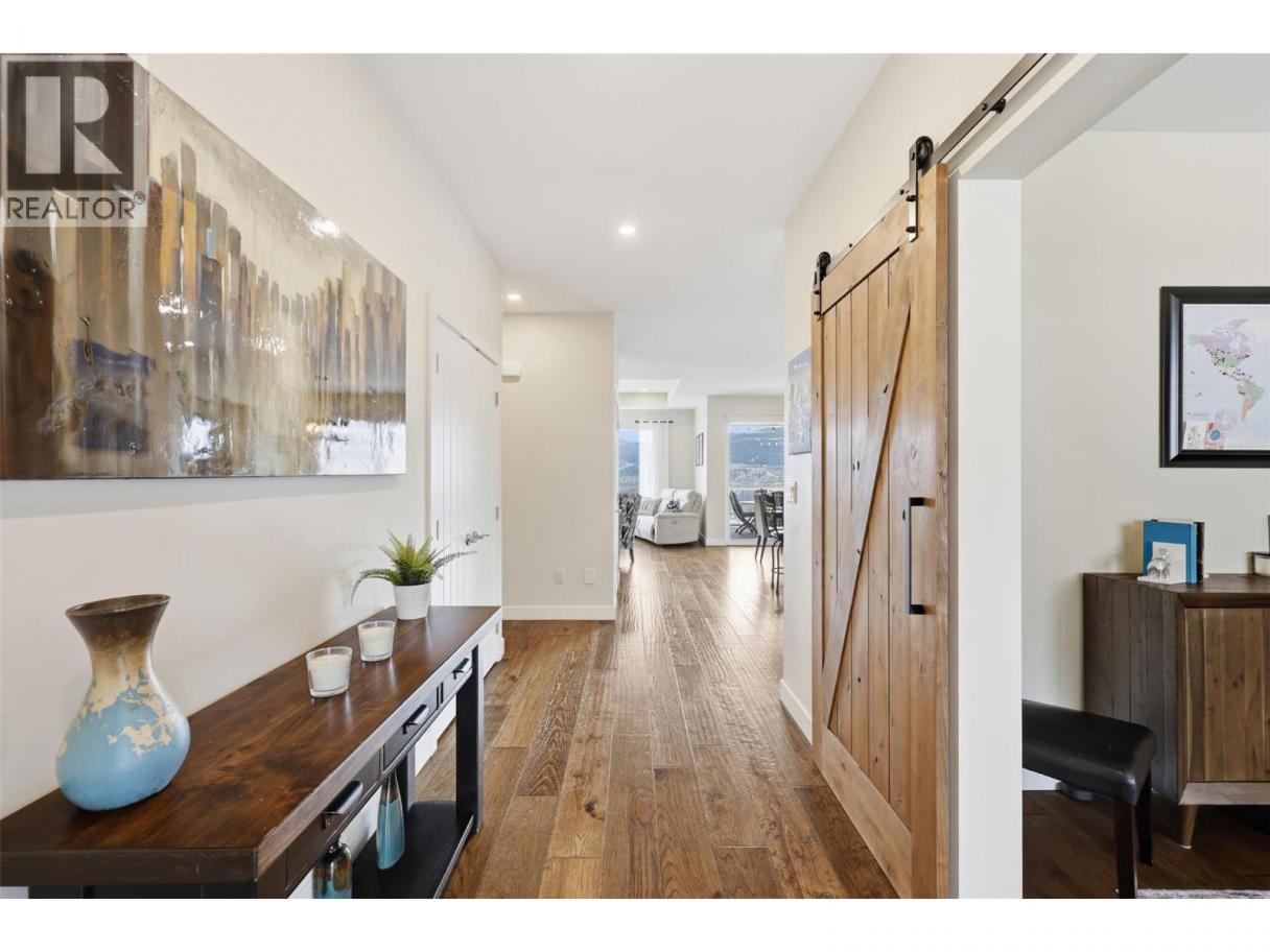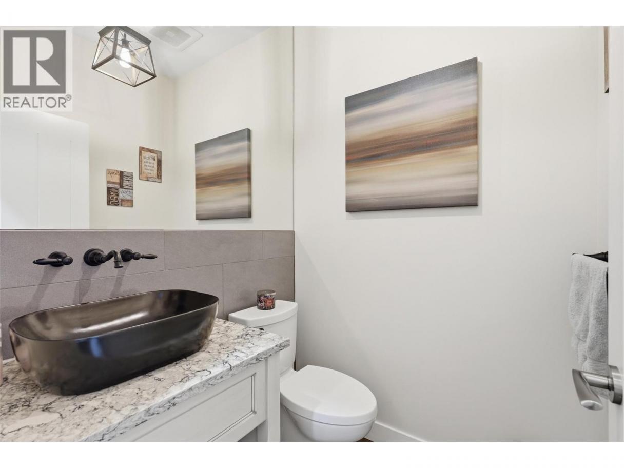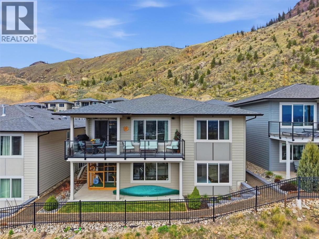 Welcome to refined living in the sought-after Rio Vista community of Sun Rivers. This beautifully maintained 3 bedroom + den, 3 bathroom rancher with full basement offers a bright, open concept main floor designed for both everyday comfort and effortless entertaining. The kitchen features quality cabinetry, ample counter space, and a central island, flowing seamlessly into the dining and living areas where a modern electric fireplace creates a warm focal point. The main level includes a spacious primary bedroom with walk-in closet and ensuite, a dedicated office, convenient 2-piece powder room, and main floor laundry. Sonos sound is wired into the kitchen, ensuite, and upper deck, enhancing the indoor-outdoor lifestyle. Downstairs, the fully finished basement offers a generous rec room, two bedrooms, a full bathroom, and a dedicated media room complete with wet bar and beer fridge—perfect for movie nights and entertaining—plus a separate wine storage area. Geothermal heating and cooling provides efficient year-round comfort. Additional features include rough-in for central vacuum, gas BBQ hookup on the upper deck, and electrical rough-in for a hot tub on the lower deck. Enjoy low maintenance outdoor living with hillside and city views, all just minutes from downtown Kamloops, golf, and walking trails. (id:6769)