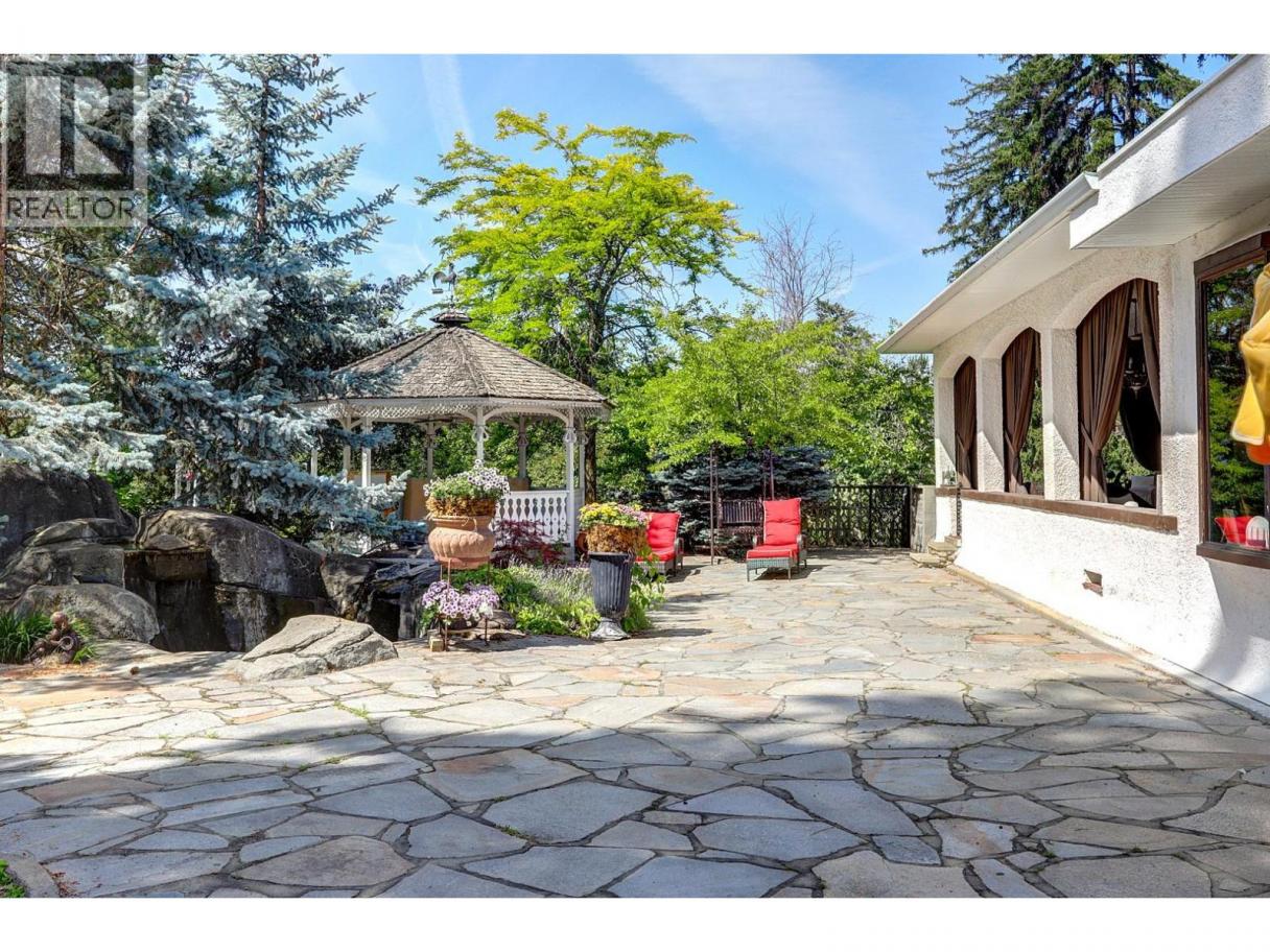Rare opportunity to own an iconic family estate rich in history and character. Originally built in 1910, this distinguished property blends timeless craftsmanship with thoughtful updates over its 5,500+ sq ft of combined living space. The gourmet kitchen features a large island, brick accents, high-end appliances, and a breakfast nook that opens to a stunning 500+ sq ft covered wrap-around porch. Entertain with ease in the formal dining room or unwind in the elegant living room with a grand stone fireplace and intricate millwork. The spacious main-floor primary suite and laundry offer convenient living. Upstairs, find three large bedrooms, a beautifully renovated bathroom with freestanding tub, and a sprawling rec room complete with a wet bar and deck. The basement has a separate entrance, and includes a workshop, sauna, multiple storage rooms, and a separate suite. Outdoors, enjoy the expansive terrace, irrigated gardens, pond, and extensive parking. Bonus features include a studio carriage house, two garage bays, storage sheds, and large barn with pull off and excellent road exposure. Gated and private, this exceptional estate offers a combination of legacy, luxury, and lifestyle in the heart of the North Okanagan. (id:6769)
