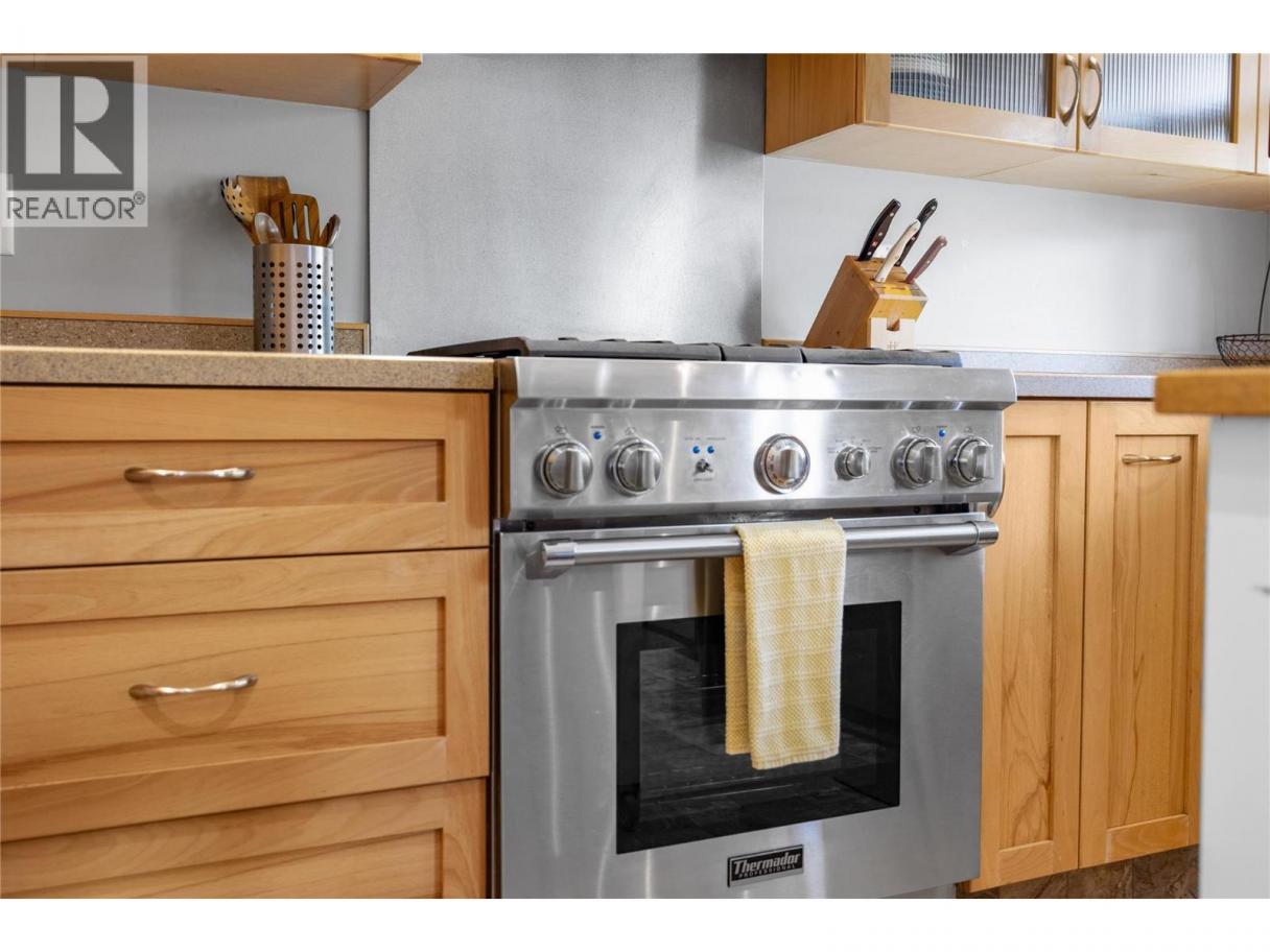 Tucked away on a beautifully landscaped 0.27 acre lot backing onto Shuttleworth Creek, this custom-built 2010 rancher offers a peaceful, move-in ready retreat designed for easy Okanagan living. From the moment you walk in, the home feels bright and intentional, with an open concept layout, wide plank birch flooring, and a cozy wood stove anchoring the space. Large windows and thoughtful design capture views of the private backyard and creek, bringing the outdoors in year-round. The spacious custom kitchen features high-end appliances, a gas range, and a built-in workstation, making it just as functional for everyday living as it is for working from home or entertaining. With two bedrooms and two full bathrooms, including a generous primary suite with ensuite and jetted tub, this home is perfectly suited for retirees, single buyers, or anyone looking to simplify without sacrificing comfort. Step outside to two expansive decks, complete with gas hookup and power awning, ideal for relaxing and enjoying the quiet, natural setting. A detached shop with workbench offers space for hobbies or bike storage, while the attached carport and additional parking provide everyday convenience. Expansive crawlspace adds excellent storage. Located just a couple minutes’ drive to the beach and local amenities, this home offers the perfect balance of privacy and accessibility. A true Okanagan lifestyle property, ready for you to move in and enjoy. (id:6769)