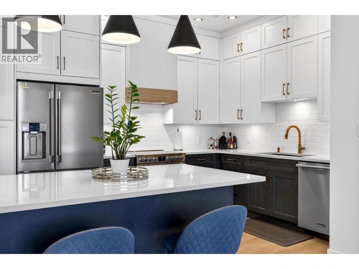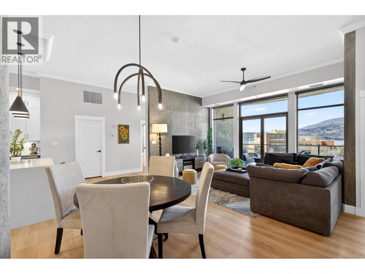 Welcome to #502 1329 Ellis, an elevated take on downtown living in one of Kelowna’s iconic concrete residences, The Lofts, set in the heart of the Cultural District. This fully renovated 5th-floor residence offers over 1,300 sq. ft. of bright, open living with lake and city views that reflect the Okanagan lifestyle. With only five homes per floor, enjoy a quiet, boutique feel within a vibrant urban setting. Over $160,000 in renovations have transformed this home into a refined, move-in ready space. The redesigned kitchen features new cabinetry, updated appliances, and a quartz island with matching countertops—blending function with a clean, modern aesthetic. New lighting, paint, baseboards, and fully redone bathrooms—including the main and ensuite—carry a consistent level of finish throughout. The primary suite is complemented by a custom walk-through closet with built-ins. Soaring 11-foot ceilings, exposed concrete, and expansive windows create a bright, airy space that feels both modern and timeless. The layout offers flexibility for both everyday living and entertaining. Step outside and enjoy walkable access to beaches, restaurants, cafes, and the waterfront. Residents of The Lofts enjoy a fitness centre and social room, along with secure parking, a storage locker, and generous in-unit storage. A rare opportunity in a building known for its design, scale, and location. Book your showing today! (id:6769)