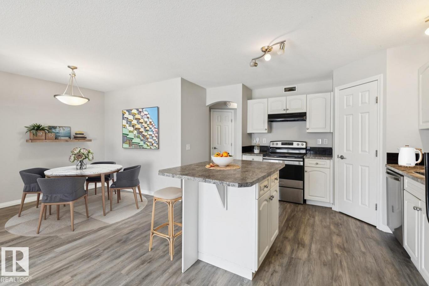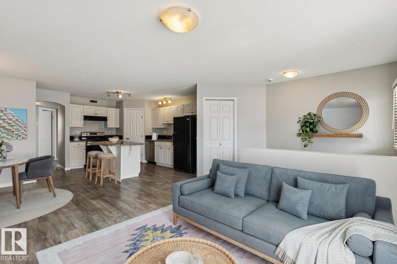 Nicely maintained and updated condo in desirable Ellerslie area! This 830 sqft carriage style bungalow unit shows like new and will certainly impress. Spacious living area, bright and open kitchen w/useful island, and large dining area. Two good sized bedrooms, 4-pc bath, in-suite laundry, storage space, and parking stall. New vinyl flooring, freshly painted, and newer appliances. Quiet location within the complex that backs onto a beautiful greenspace. Located close to all amenities making this a great buy in a great area! (id:6769)