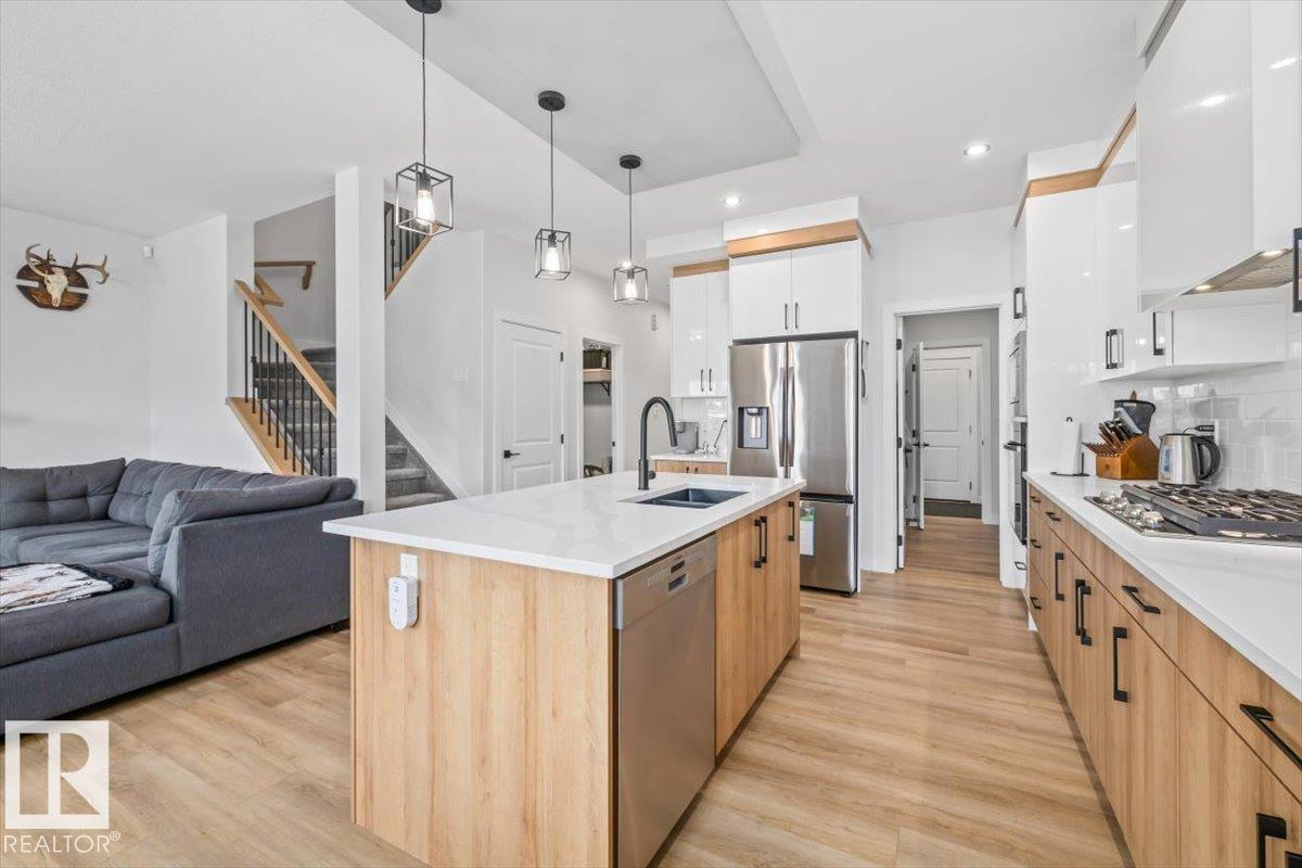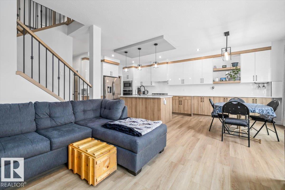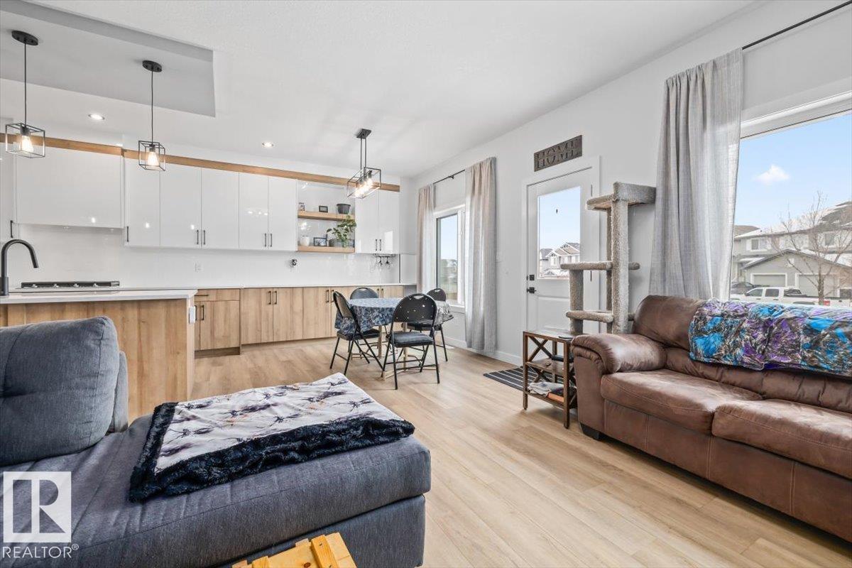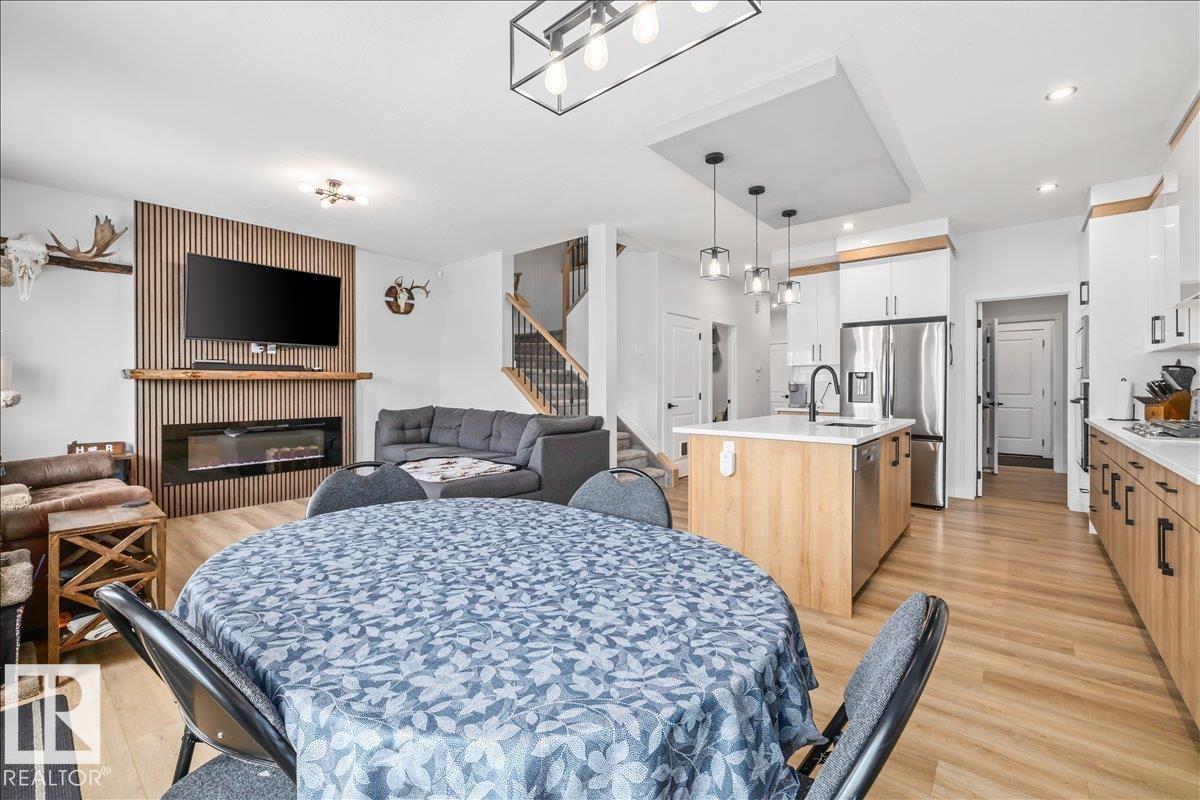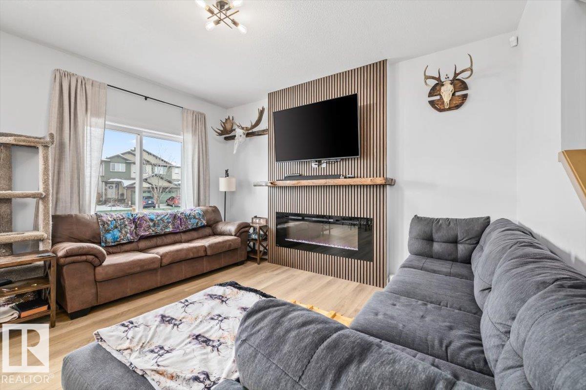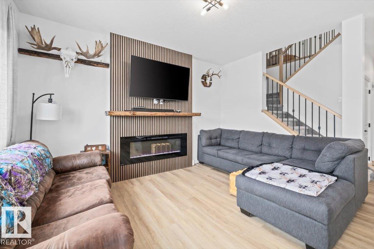 This beautifully designed 2,180 sq. ft. two-storey home offers the perfect blend of style, space, and functionality. Upon entry, you’re welcomed by a bright front foyer that leads into a thoughtfully designed main floor featuring a versatile den, a convenient 3-piece bathroom, and a functional mudroom. The kitchen truly is the heart of the home, showcasing modern finishes, includes all appliances, a walk-in pantry, and an extended buffet-style counter along the dining area—ideal for entertaining or added storage. The open-concept layout seamlessly connects to the cozy great room, highlighted by a sleek electric fireplace that creates a warm and inviting atmosphere. Upstairs, you’ll find a spacious bonus room, a well-appointed laundry room with a sink, and three generously sized bedrooms. The primary suite is a true retreat, complete with a large walk-in closet and a luxurious 5-piece ensuite featuring a soaker tub, double sinks, and a separate shower. Bedroom in basement framed and drywalled. (id:6769)
