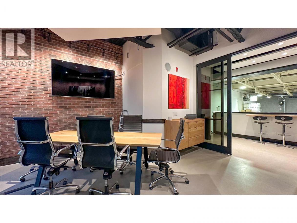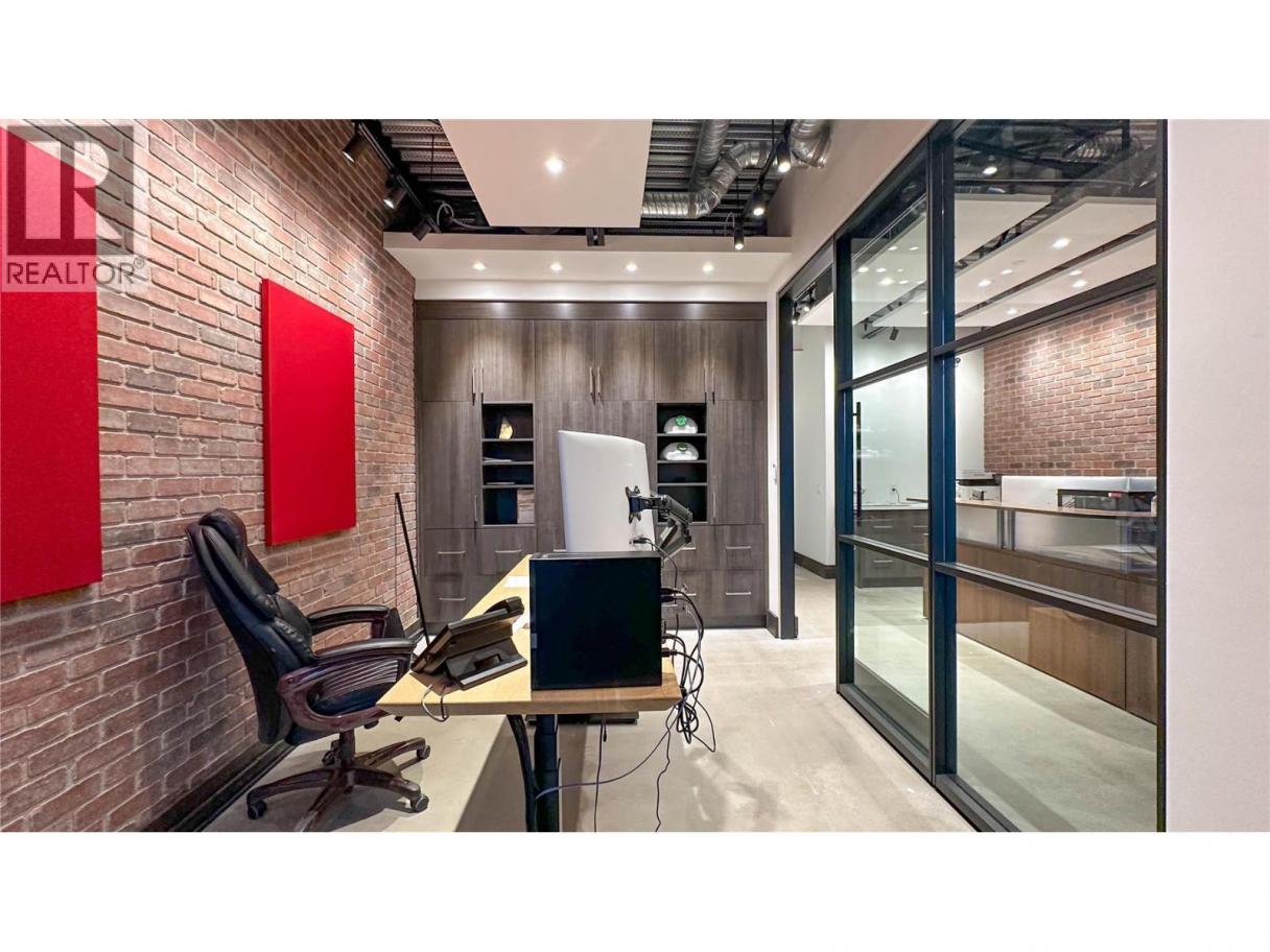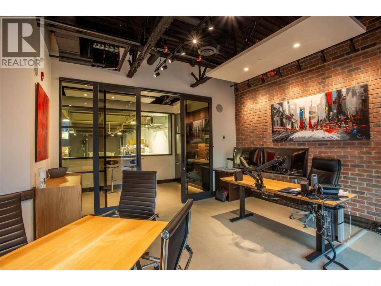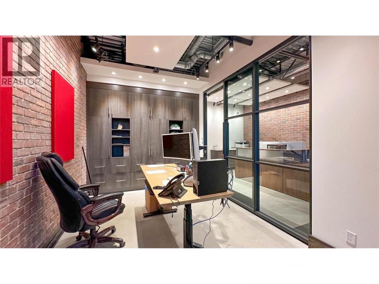 Rare opportunity to lease a beautifully improved 2,032 sq. ft. commercial space in the heart of Downtown Kelowna. Located on highly sought-after Clement Avenue, this two-storey unit offers exceptional street presence with a garage-style storefront entry, prominent street-front signage, and three assigned parking stalls included. Situated within industrial zoning that allows for a wide variety of business and office uses, this is an ideal opportunity for professional offices, creative studios, design firms, tech companies, consulting groups, wellness businesses, showrooms, and many other permitted uses. Fully built-out and move-in ready, spaces of this size and quality in Downtown Kelowna are exceptionally hard to find. The main floor features extensive tenant improvements throughout, including built-in office areas, a stunning glass boardroom, a finished bar area with plumbing, a small kitchen, and two full bathrooms, including one with a shower. The beautifully finished loft creates an impressive second-level workspace or lounge area and adds to the unique character of the space. Designed for both functionality and comfort, the unit is fully soundproofed and serviced by three separate heating and cooling systems, allowing for excellent climate control throughout both levels. The flexible layout offers a combination of private offices, open workspace, meeting areas, and client-facing space, making it suitable for a variety of business operations. (id:6769)
