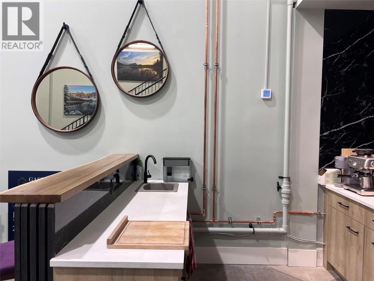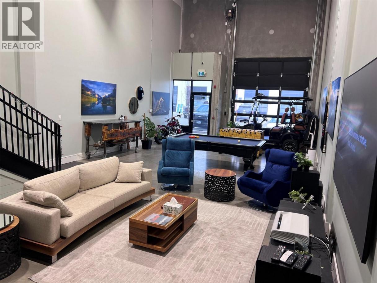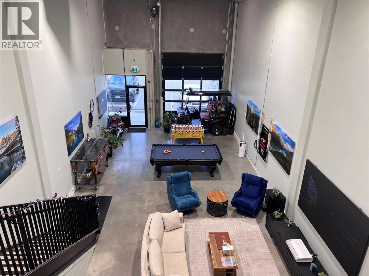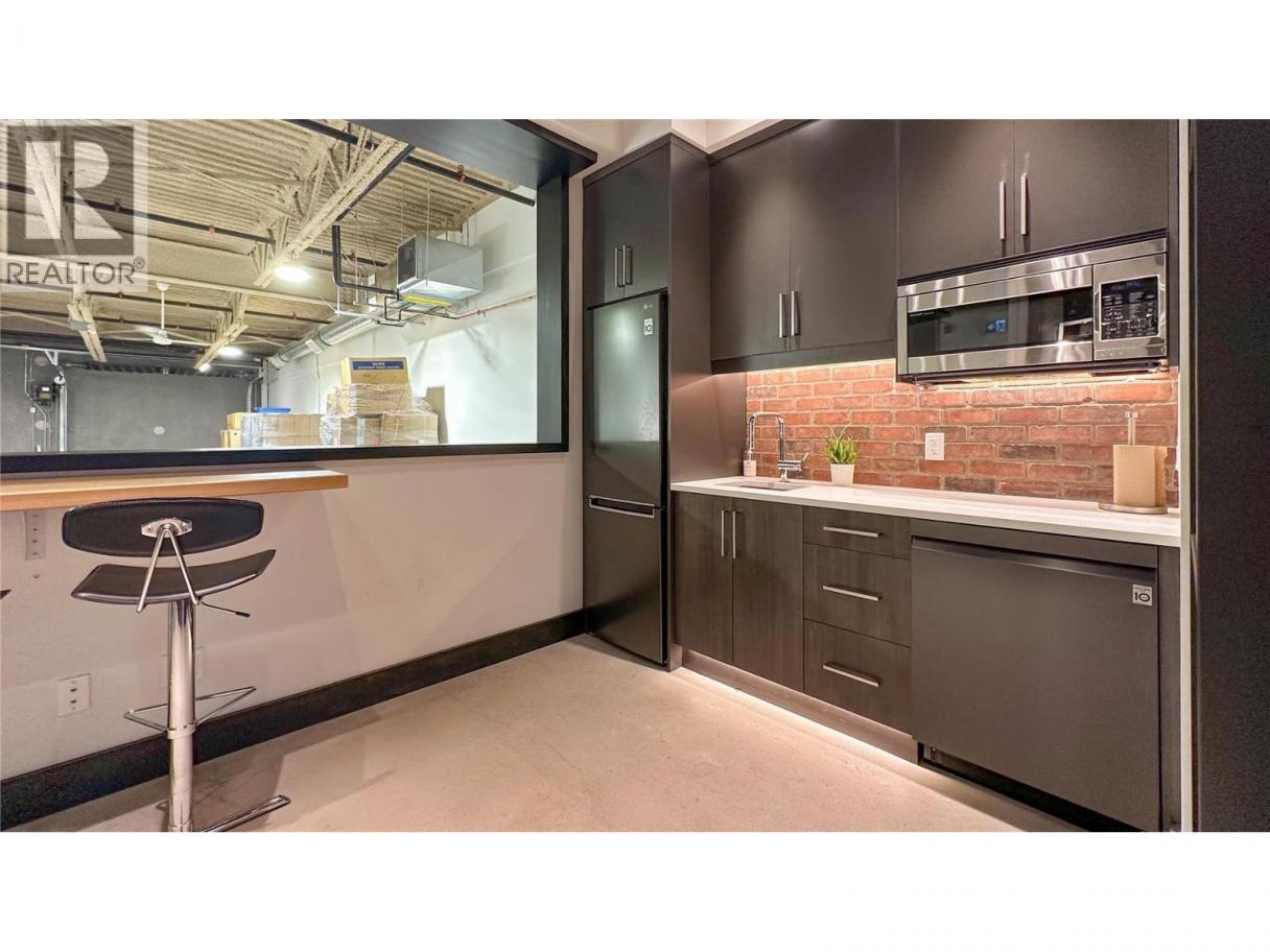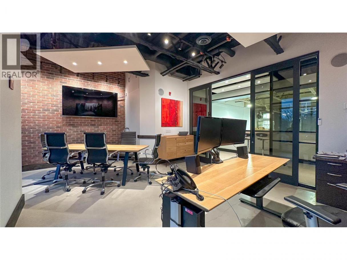 Rare opportunity to lease a beautifully improved 2,032 sq. ft. commercial space in the heart of Downtown Kelowna. Located on highly sought-after Clement Avenue, this two-storey unit offers exceptional street presence with a garage-style storefront entry, prominent street-front signage, and three assigned parking stalls included. Situated within industrial zoning that allows for a wide variety of business and office uses, this is an ideal opportunity for professional offices, creative studios, design firms, tech companies, consulting groups, wellness businesses, showrooms, and many other permitted uses. Fully built-out and move-in ready, spaces of this size and quality in Downtown Kelowna are exceptionally hard to find. The main floor features extensive tenant improvements throughout, including built-in office areas, a stunning glass boardroom, a finished bar area with plumbing, a small kitchen, and two full bathrooms, including one with a shower. The beautifully finished loft creates an impressive second-level workspace or lounge area and adds to the unique character of the space. Designed for both functionality and comfort, the unit is fully soundproofed and serviced by three separate heating and cooling systems, allowing for excellent climate control throughout both levels. The flexible layout offers a combination of private offices, open workspace, meeting areas, and client-facing space, making it suitable for a variety of business operations. (id:6769)