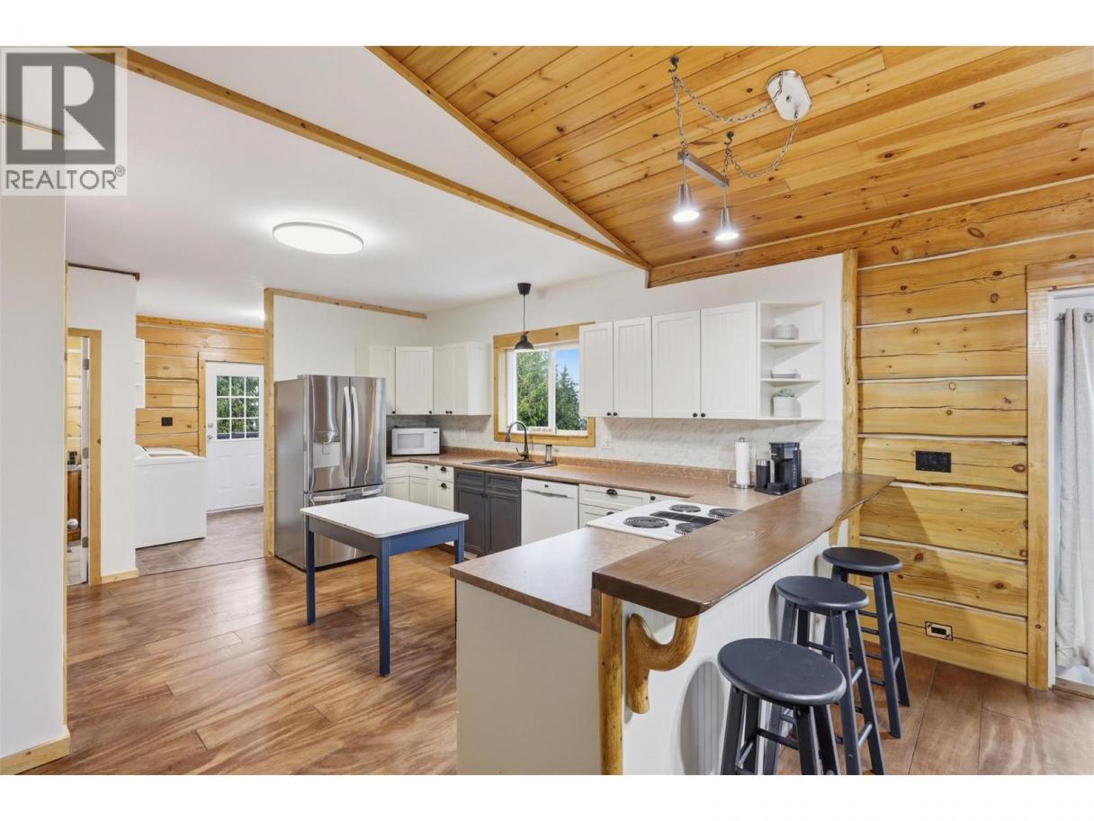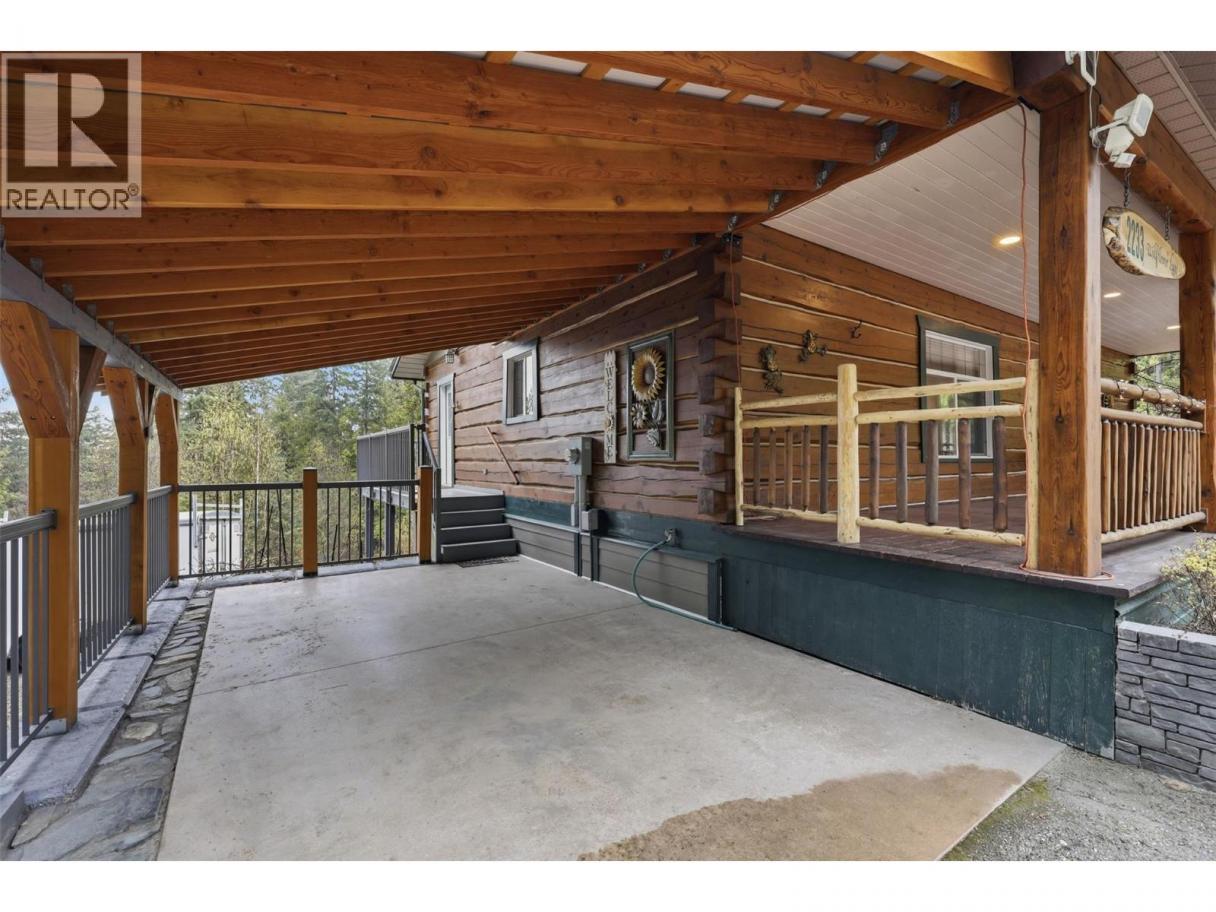 Tucked away on a quiet no-through road in Notchhill Estates, this one-owner lodge-style home offers a rare blend of modern convenience, privacy and lifestyle. Set on a usable 0.9 acre lot and surrounded by mature landscaping, the property has been thoughtfully developed to create a setting that feels both functional and quietly removed. The home reflects careful planning and pride of ownership throughout, with a layout designed for ease of living and connection to the outdoors. Recent updates have elevated the overall presentation, making it move-in ready for its next chapter. The main floor features a bright open concept with a spacious primary bedroom, convenient laundry, pantry, built-in workspace and direct access to outdoor living and BBQ areas. The walk-out basement adds a comfortable family room with pellet stove, cold room, second bedroom and a versatile bonus space ideal as a third bedroom, hobby room or office. Outside, a horticultural landscape. Established grapes, raspberries and a productive garden support a hands-on lifestyle, while multiple sitting areas including a covered front porch, composite sun deck and shaded swing space provide options for sun or retreat. A 15’ x 24’ detached workshop, garden shed, single carport and wrap-around driveway offer excellent parking and storage. Additional features include ICF foundation, 200 amp service, central vacuum, community water and exterior water taps.let’s make this your next home to discover. (id:6769)