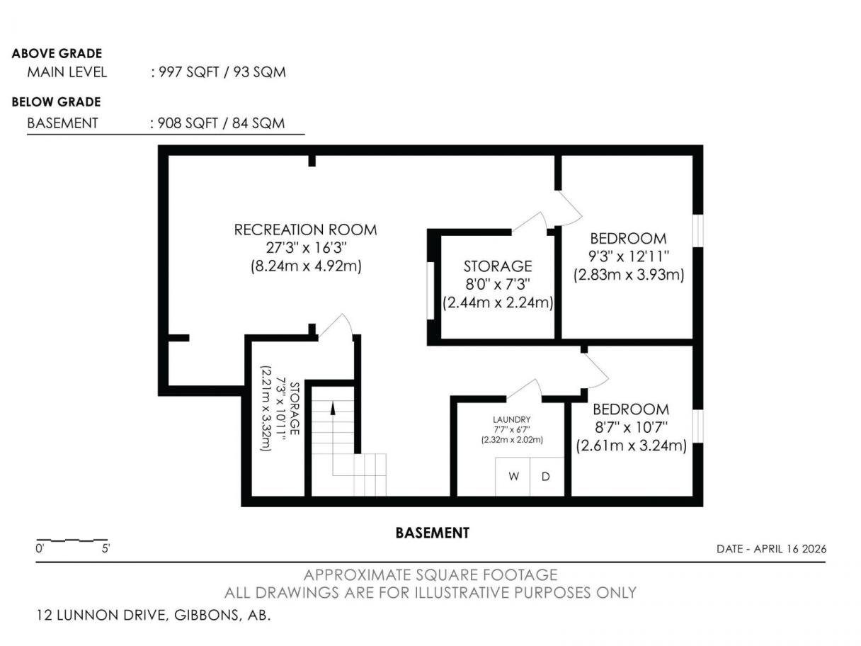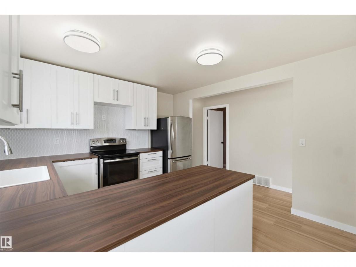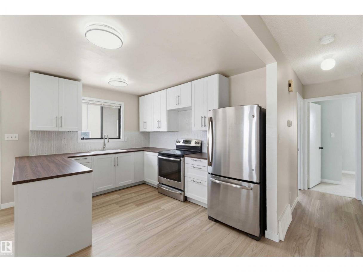 This charming 993 sq. ft. bungalow in Gibbons is the quintessential starter home, offering an unbeatable mix of affordability and high-value modern updates. The main floor features three comfortable bedrooms and has been beautifully refreshed with brand-new flooring and a stunning kitchen completed just months ago, while the finished basement provides a spacious rec room and two additional bedrooms (please note basement windows do not meet current egress codes). You can enjoy total peace of mind with major mechanical upgrades including a new furnace and central AC installed in 2022, along with a lovely new deck built last year that is perfect for summer entertaining. Ideally situated for convenience, this move-in-ready gem is located just 15 minutes from the military base, making it a fantastic opportunity for service members or first-time buyers looking for a solid investment in a friendly community. some picture are virtually Stages (id:6769)