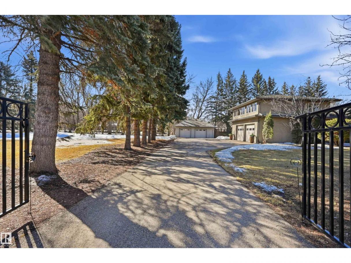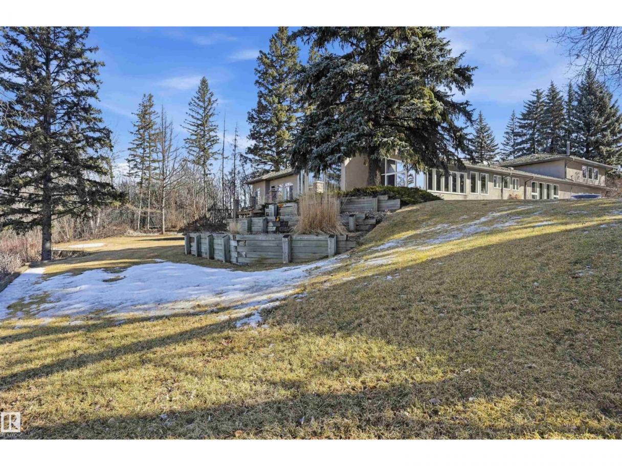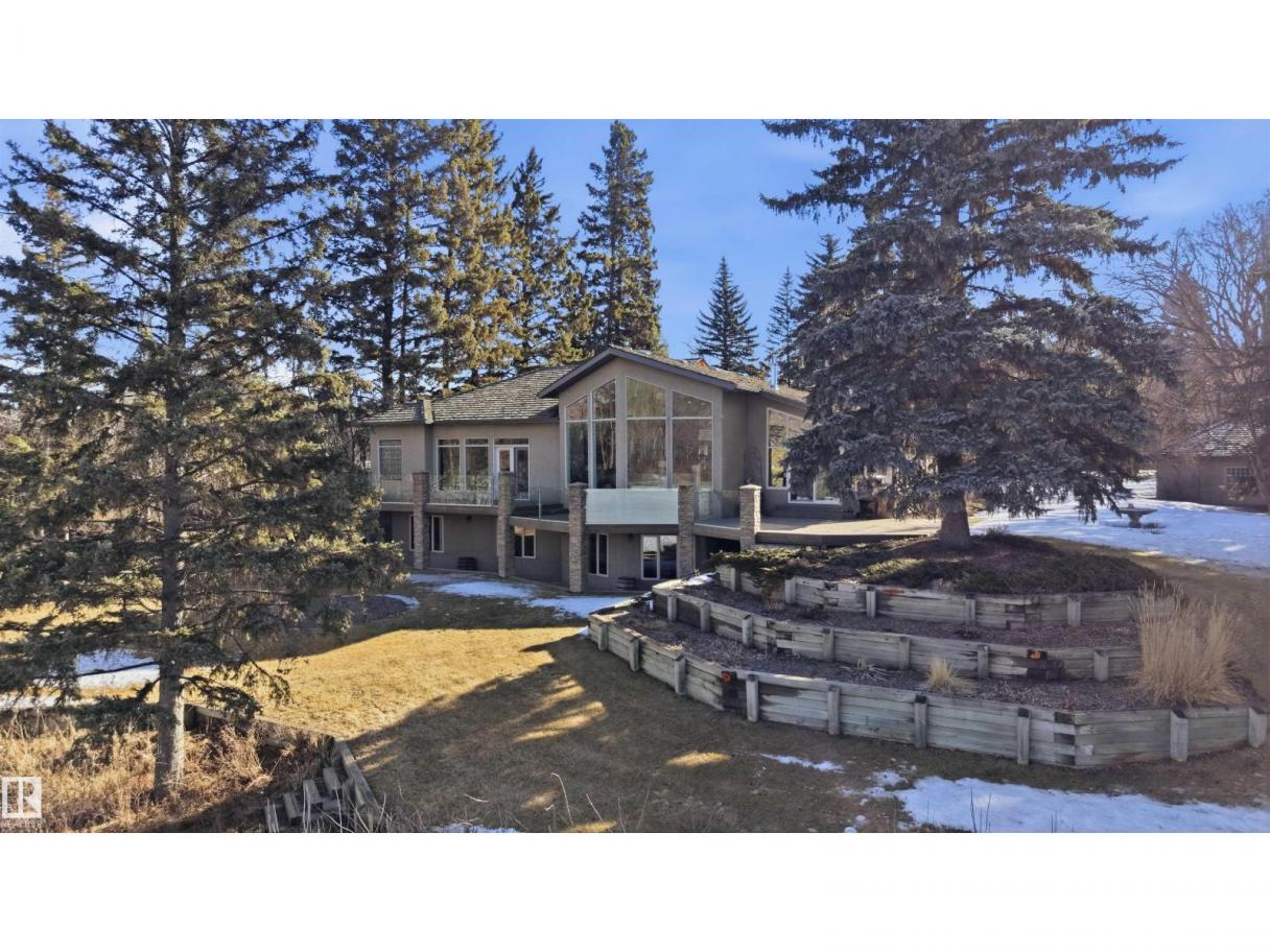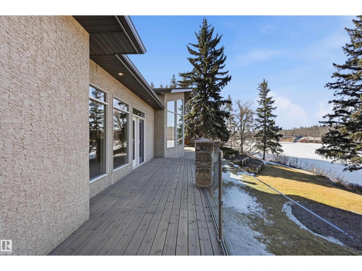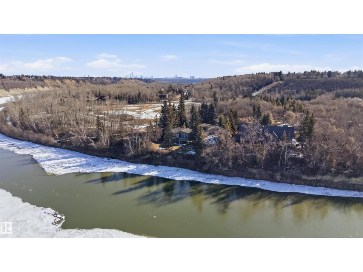 A RARE GEM nestled in the River Valley w/unparalleled views of the North Saskatchewan River. Generational home exudes elegance & charm. For 50 years this 5300 sf+ home has remained in the family w/memories to be cherished for a lifetime & now it’s time for a new family to create their memories. Walkout 6 bedrm/5 full bathrm bungalow is situated on a private 1 acre treed lot in the heart of the City (room for a rink or tennis/pickle ball court). Rebuilt in 2000, this renovated home features a Chef inspired kitchen (2015). Panoramic views from the A-frame Great Room w/a 2 sty high stone FP & soaring windows blending the outdoors to the inside seamlessly. Massive dining rm for family gatherings & parties when entertaining. Primary bedrm w/amazing views & a cabin getaway w/the loft. Teens will love the cozy basement to hang out w/their friends. Enjoy the sunsets from the full width west facing deck. Massive driveway & 2 double garages. Country feel w/City water & a 12-17 min commute to the U of A & Downtown (id:6769)