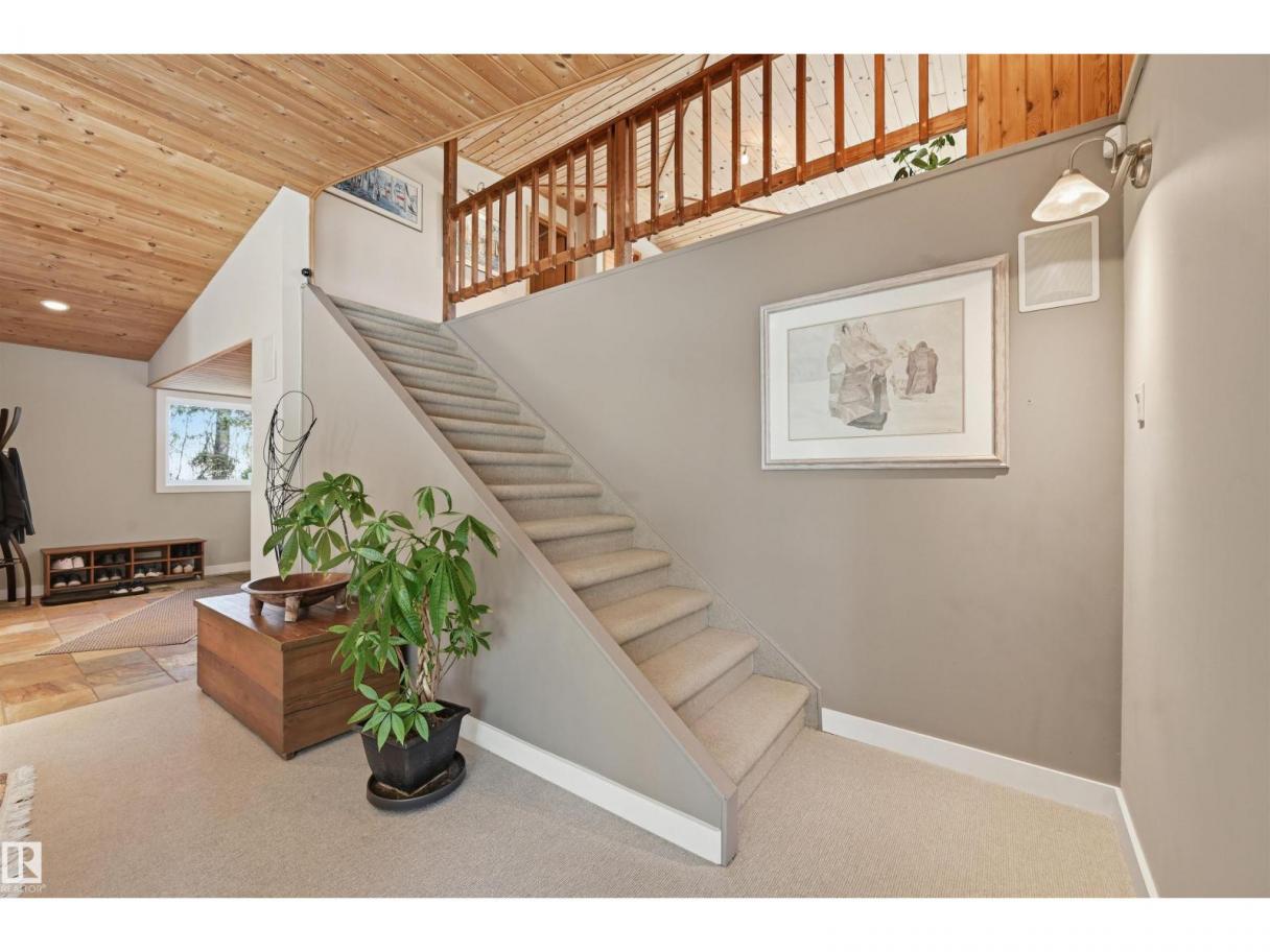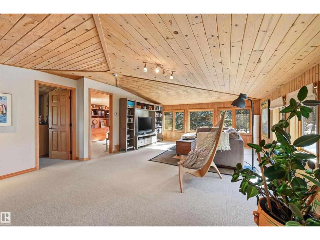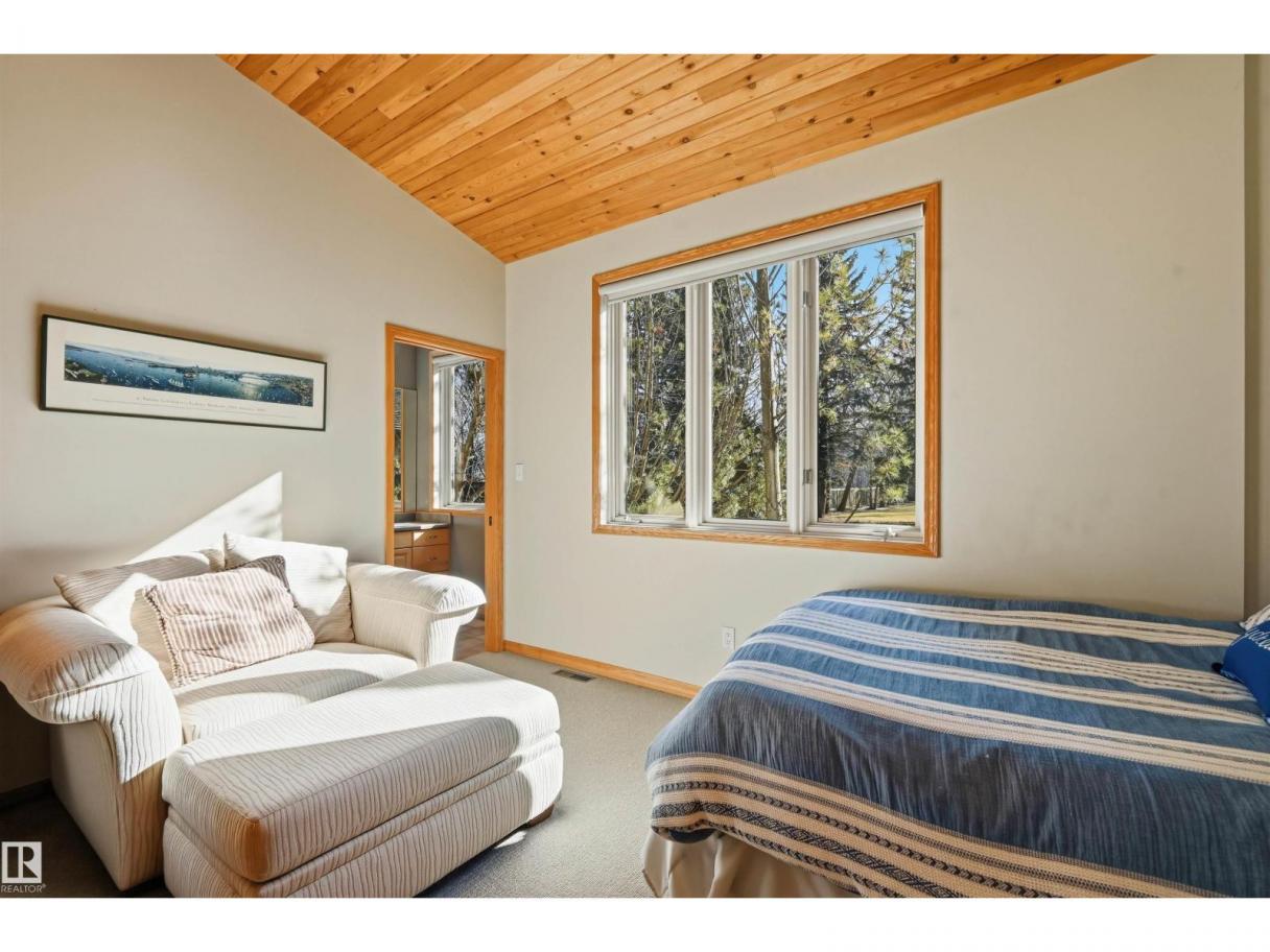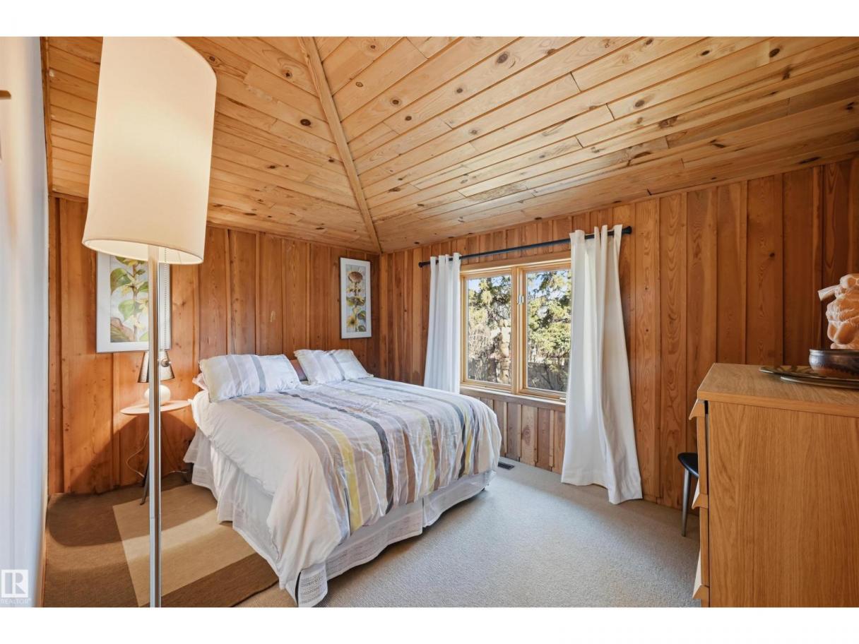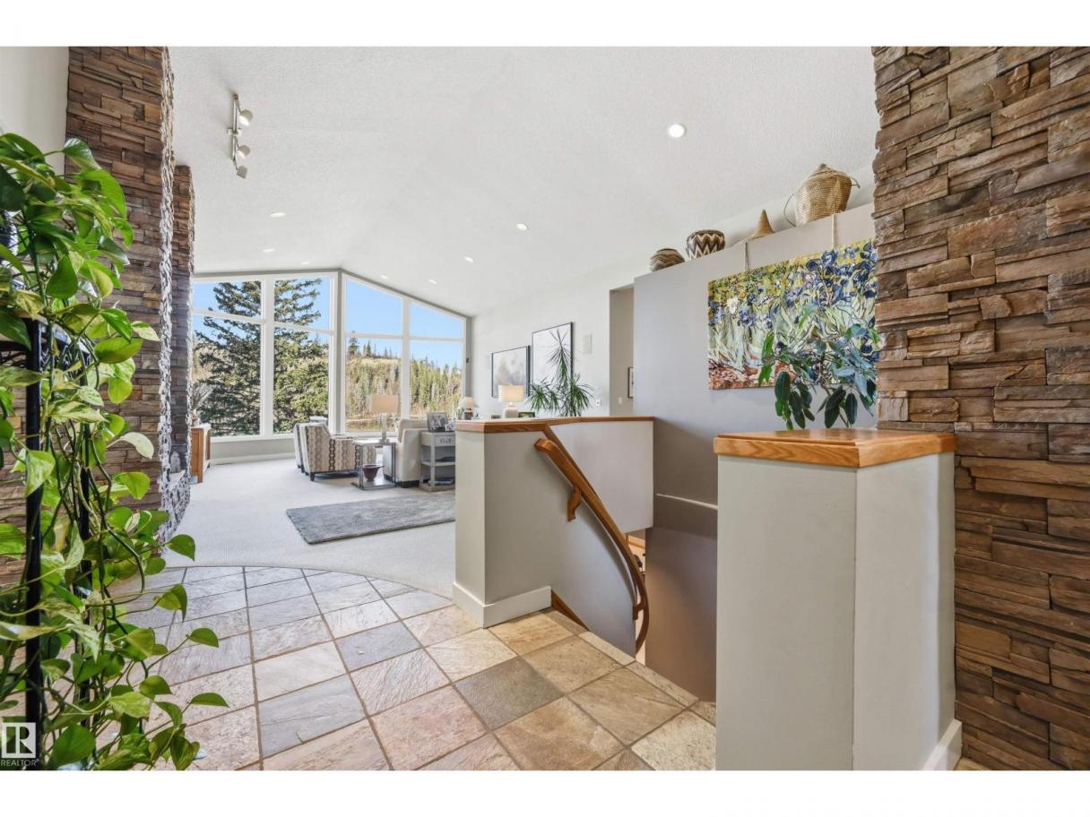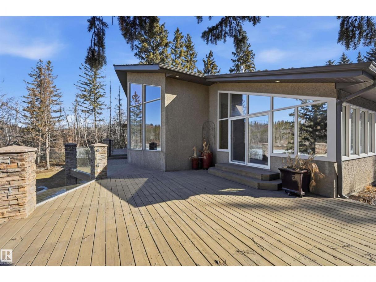 A RARE GEM nestled in the River Valley w/unparalleled views of the North Saskatchewan River. Generational home exudes elegance & charm. For 50 years this 5300 sf+ home has remained in the family w/memories to be cherished for a lifetime & now it’s time for a new family to create their memories. Walkout 6 bedrm/5 full bathrm bungalow is situated on a private 1 acre treed lot in the heart of the City (room for a rink or tennis/pickle ball court). Rebuilt in 2000, this renovated home features a Chef inspired kitchen (2015). Panoramic views from the A-frame Great Room w/a 2 sty high stone FP & soaring windows blending the outdoors to the inside seamlessly. Massive dining rm for family gatherings & parties when entertaining. Primary bedrm w/amazing views & a cabin getaway w/the loft. Teens will love the cozy basement to hang out w/their friends. Enjoy the sunsets from the full width west facing deck. Massive driveway & 2 double garages. Country feel w/City water & a 12-17 min commute to the U of A & Downtown (id:6769)