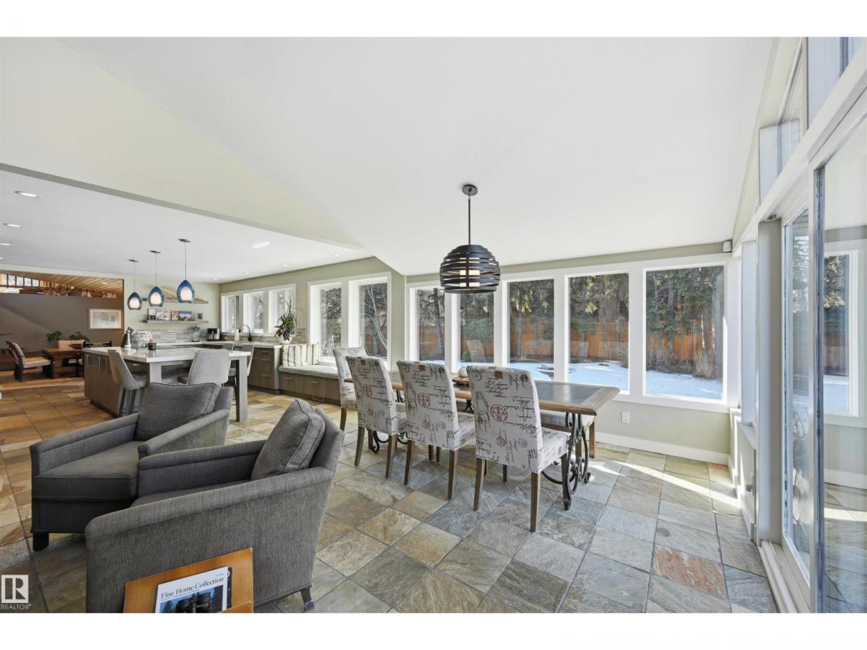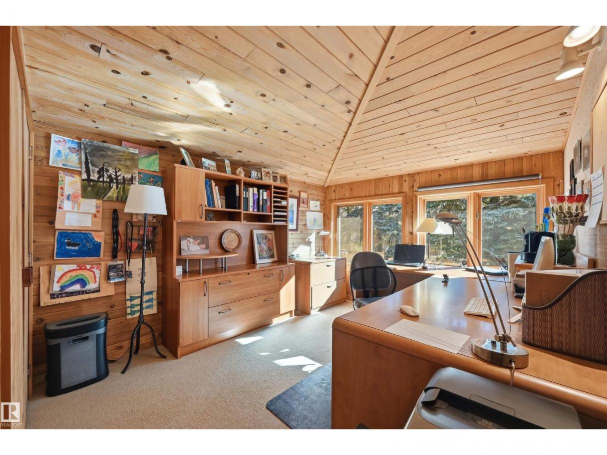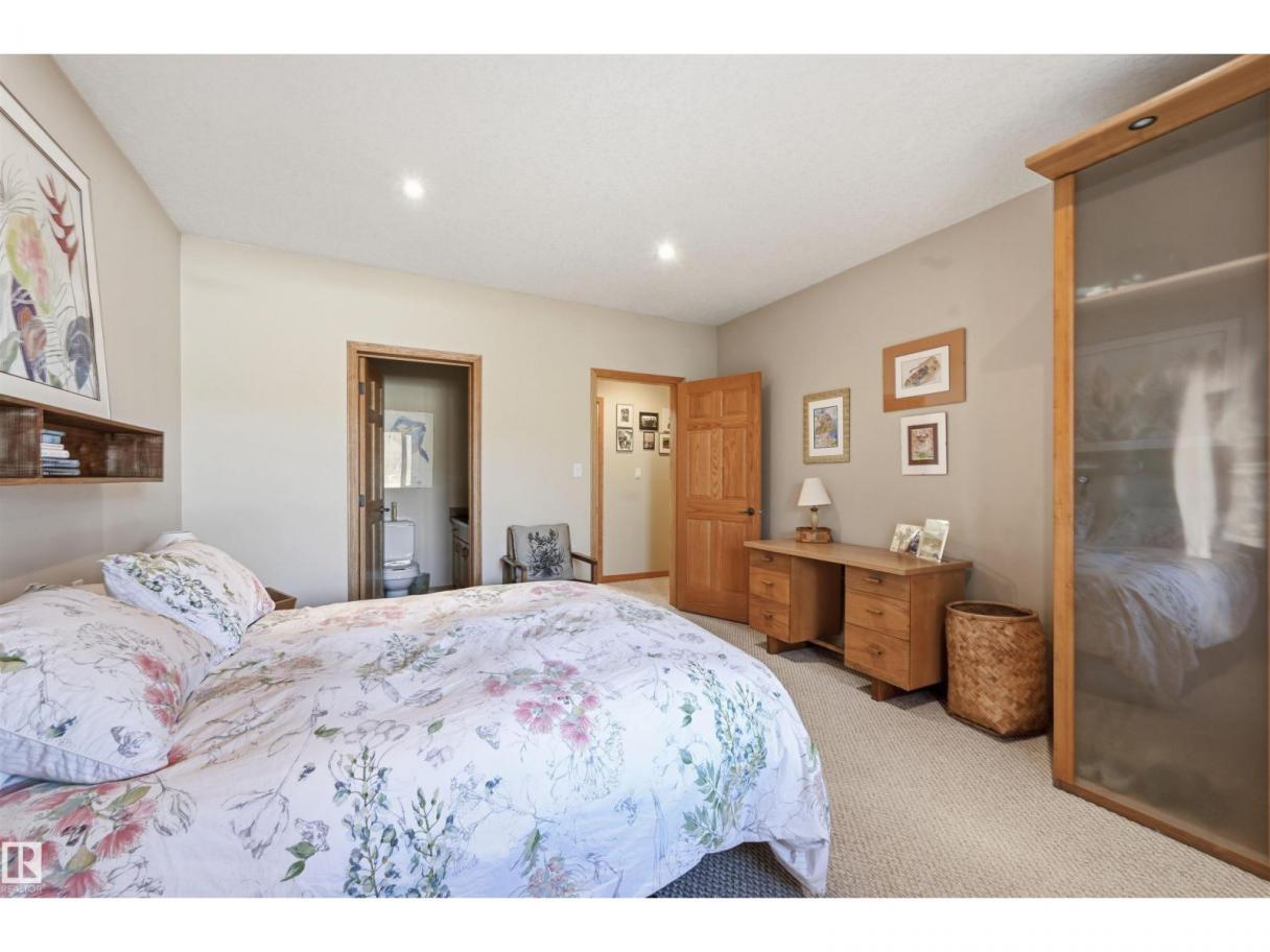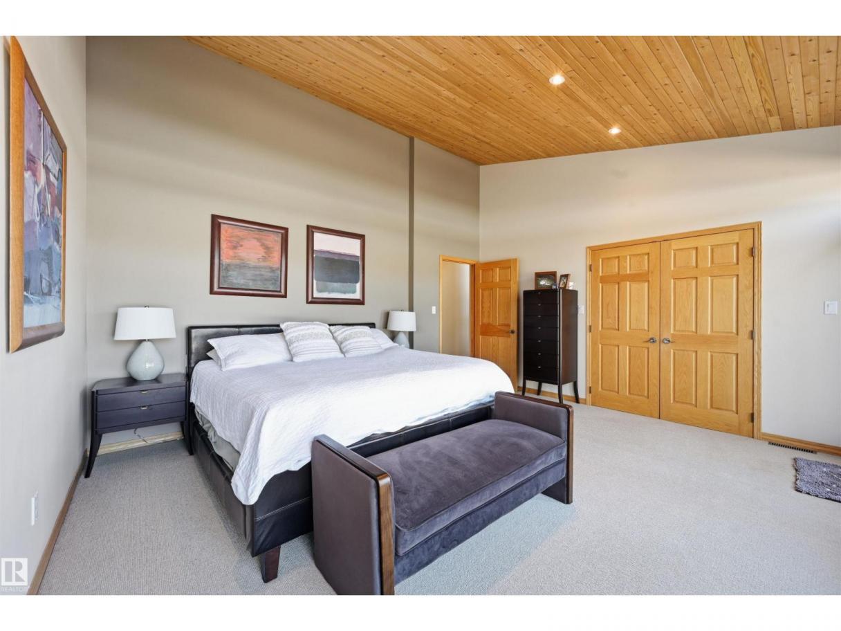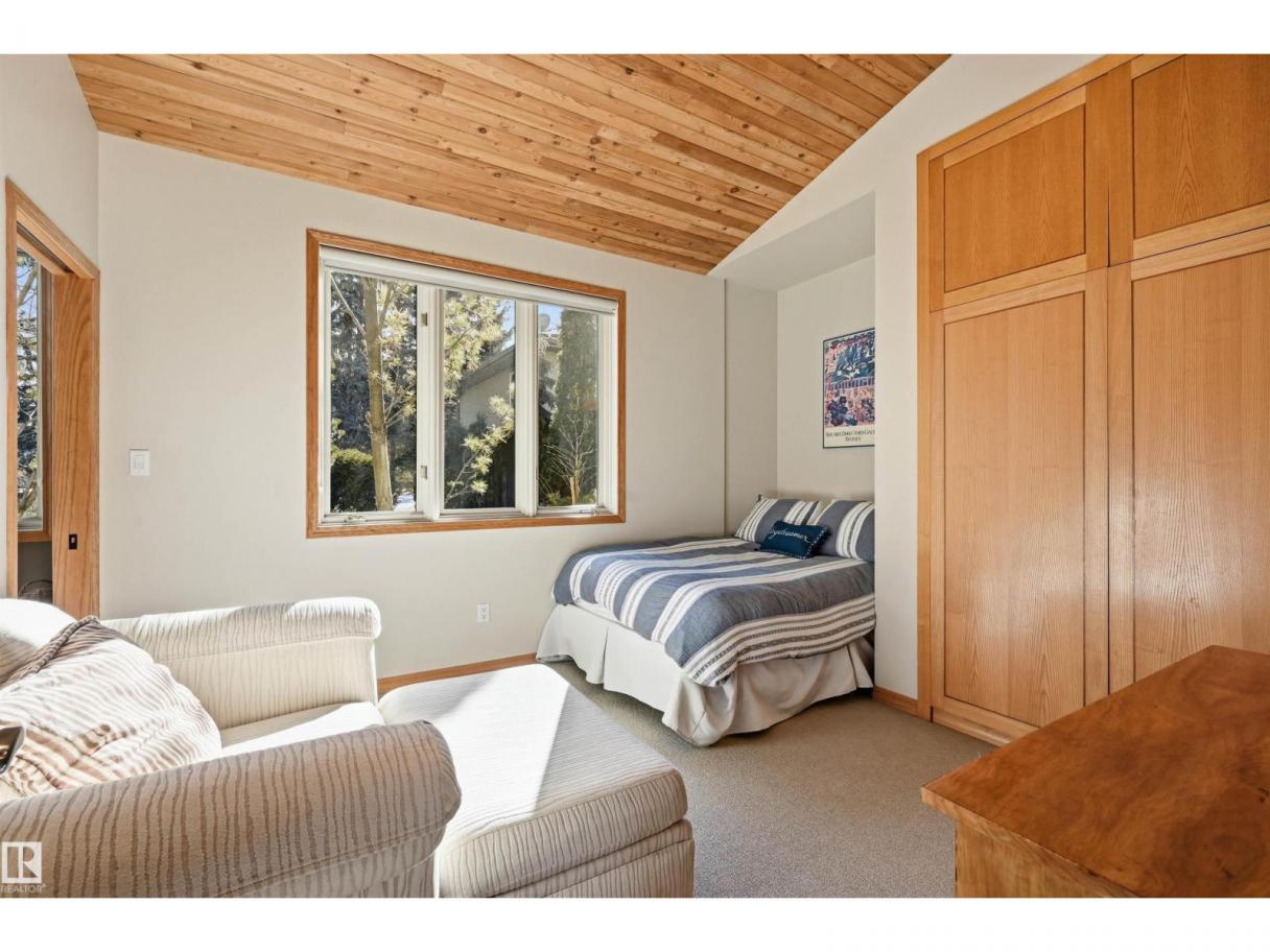 A RARE GEM nestled in the River Valley w/unparalleled views of the North Saskatchewan River. Generational home exudes elegance & charm. For 50 years this 5300 sf+ home has remained in the family w/memories to be cherished for a lifetime & now it’s time for a new family to create their memories. Walkout 6 bedrm/5 full bathrm bungalow is situated on a private 1 acre treed lot in the heart of the City (room for a rink or tennis/pickle ball court). Rebuilt in 2000, this renovated home features a Chef inspired kitchen (2015). Panoramic views from the A-frame Great Room w/a 2 sty high stone FP & soaring windows blending the outdoors to the inside seamlessly. Massive dining rm for family gatherings & parties when entertaining. Primary bedrm w/amazing views & a cabin getaway w/the loft. Teens will love the cozy basement to hang out w/their friends. Enjoy the sunsets from the full width west facing deck. Massive driveway & 2 double garages. Country feel w/City water & a 12-17 min commute to the U of A & Downtown (id:6769)