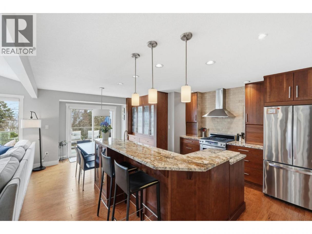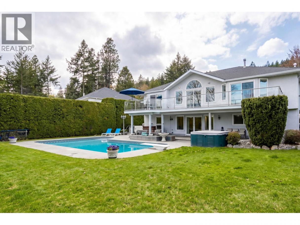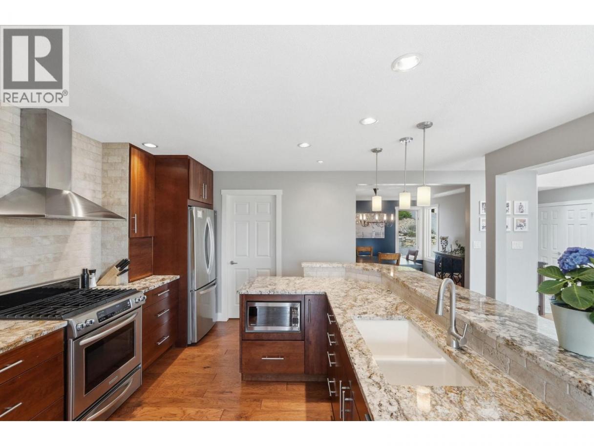 Refined walkout rancher in sought-after West Kelowna Estates offering exceptional privacy and the lifestyle people move here for! Tucked on a quiet no-through street backing onto lush greenery, this home blends peaceful outdoor living w/ functional family space- perfect for summer pool days & relaxing evenings on the deck. This 5 bed, 3 bath home features a bright, open layout w/ vaulted ceilings, large windows & seamless indoor-outdoor flow. The main level showcases hand-scraped hickory hardwood flooring & a gourmet kitchen w/ solid cherry cabinetry, granite countertops, gas stove & large island opening to a spacious great room anchored by a linear fireplace. Step onto the expansive 41’ deck overlooking the private backyard, pool & surrounding greenery with lake glimpses. The landscaped & irrigated yard is a true highlight complete with an L-Shaped pool w/ deep end diving board for the biggest cannonballers, hot tub & stamped concrete patios- Perfect for entertaining. The walkout basement offers a games room w/ included pool table, wet bar, wine fridge, cozy family room w/ gas fireplace + wired-in surround sound, two bedrooms, a full bath & travertine flooring. Plush carpet adds comfort in the bedrooms, with excellent suite potential. Additional features include 200-amp service, EV charger, HE furnace, double garage & ample parking. Walk to Rose Valley Elementary & enjoy nearby trails. A rare opportunity offering space, privacy & flexibility in a prime family neighbourhood. (id:6769)