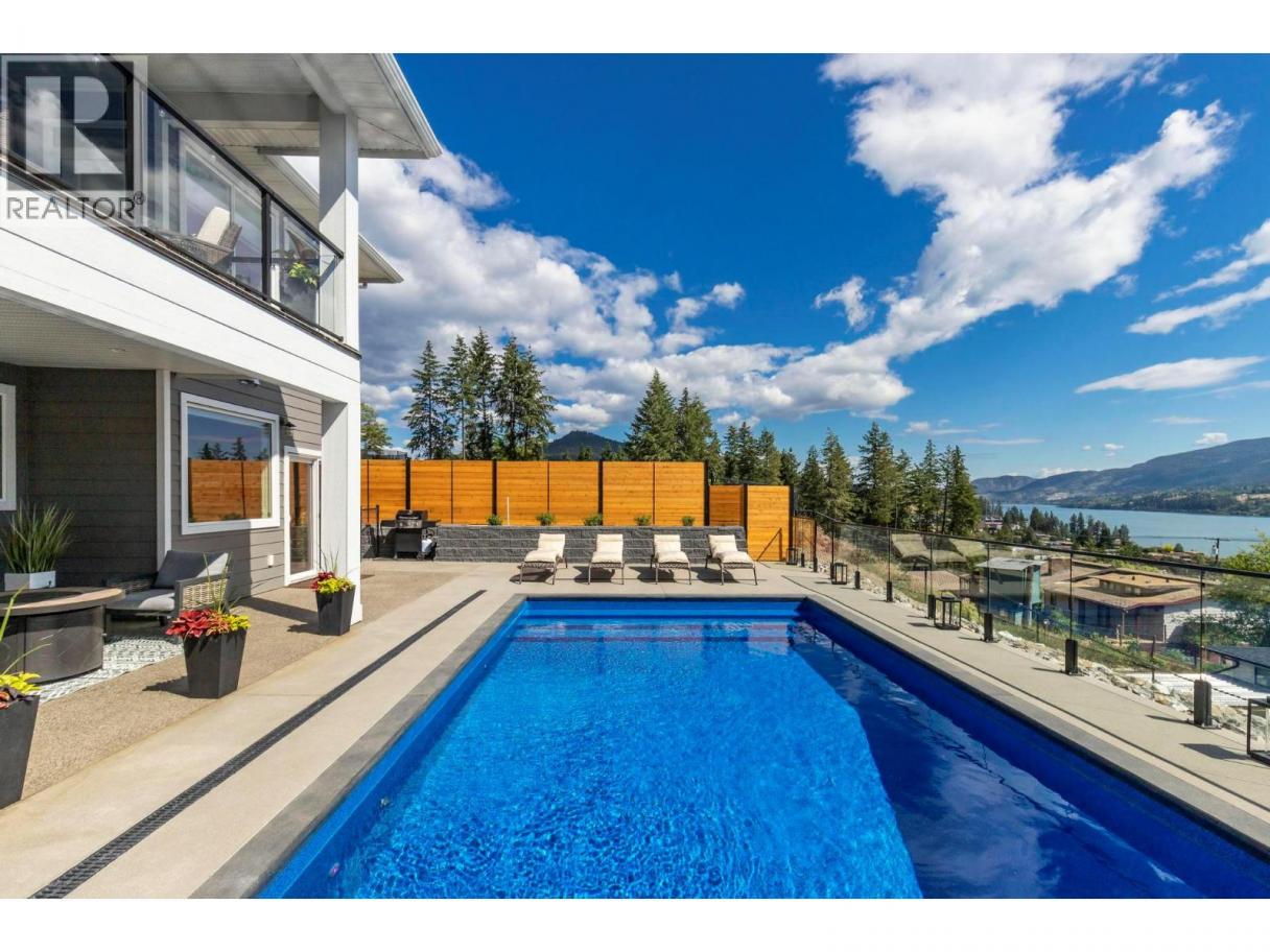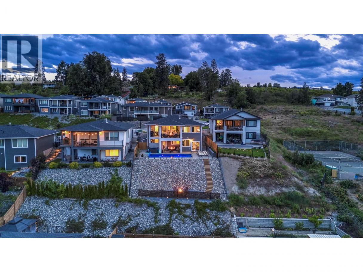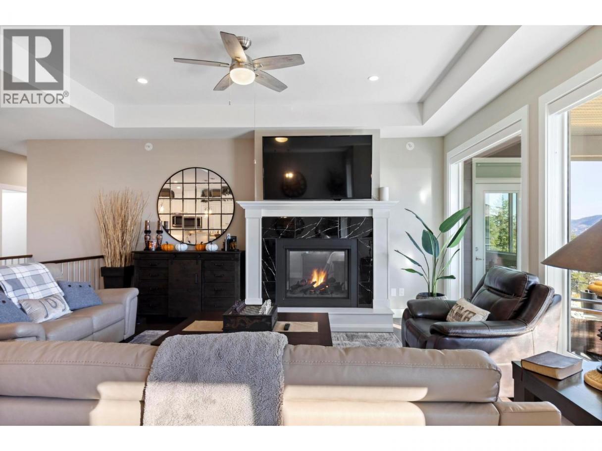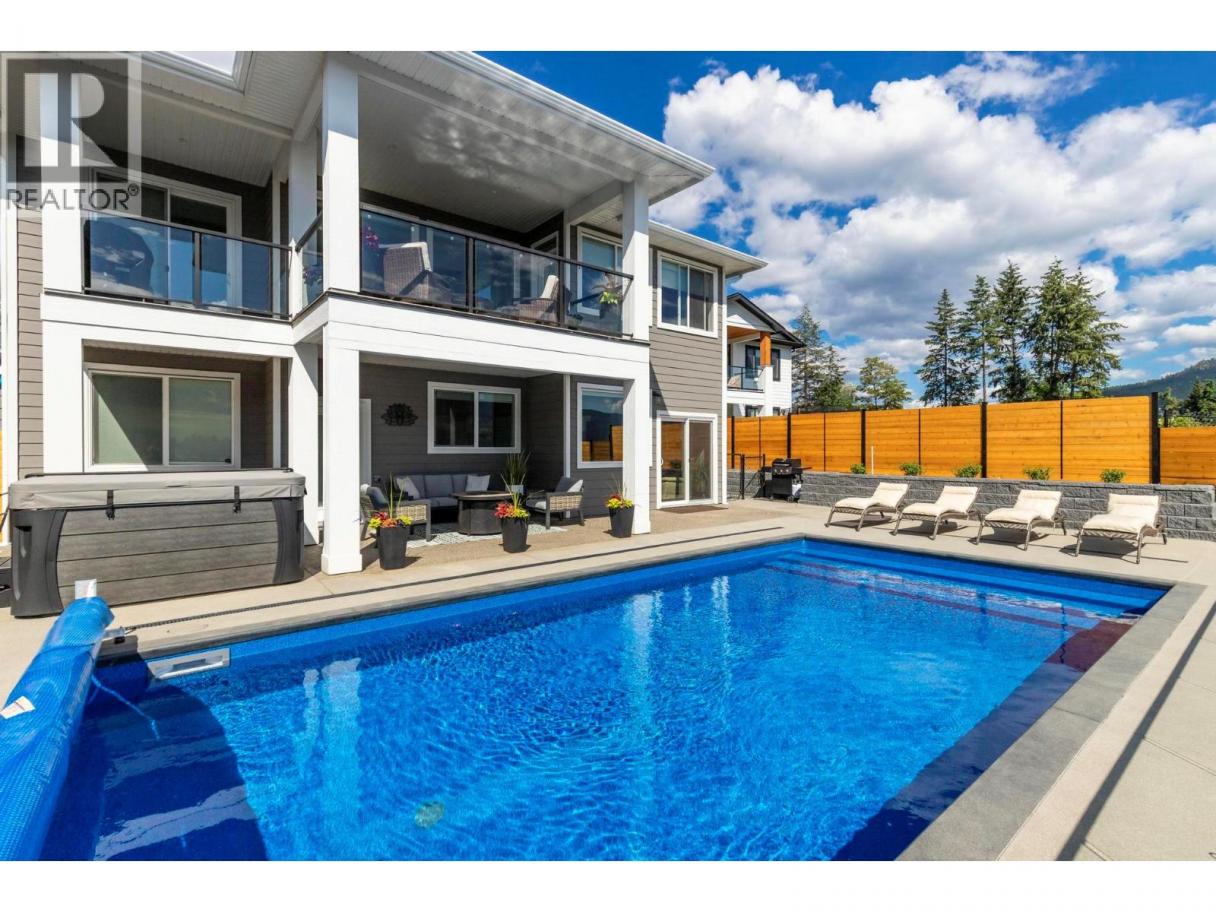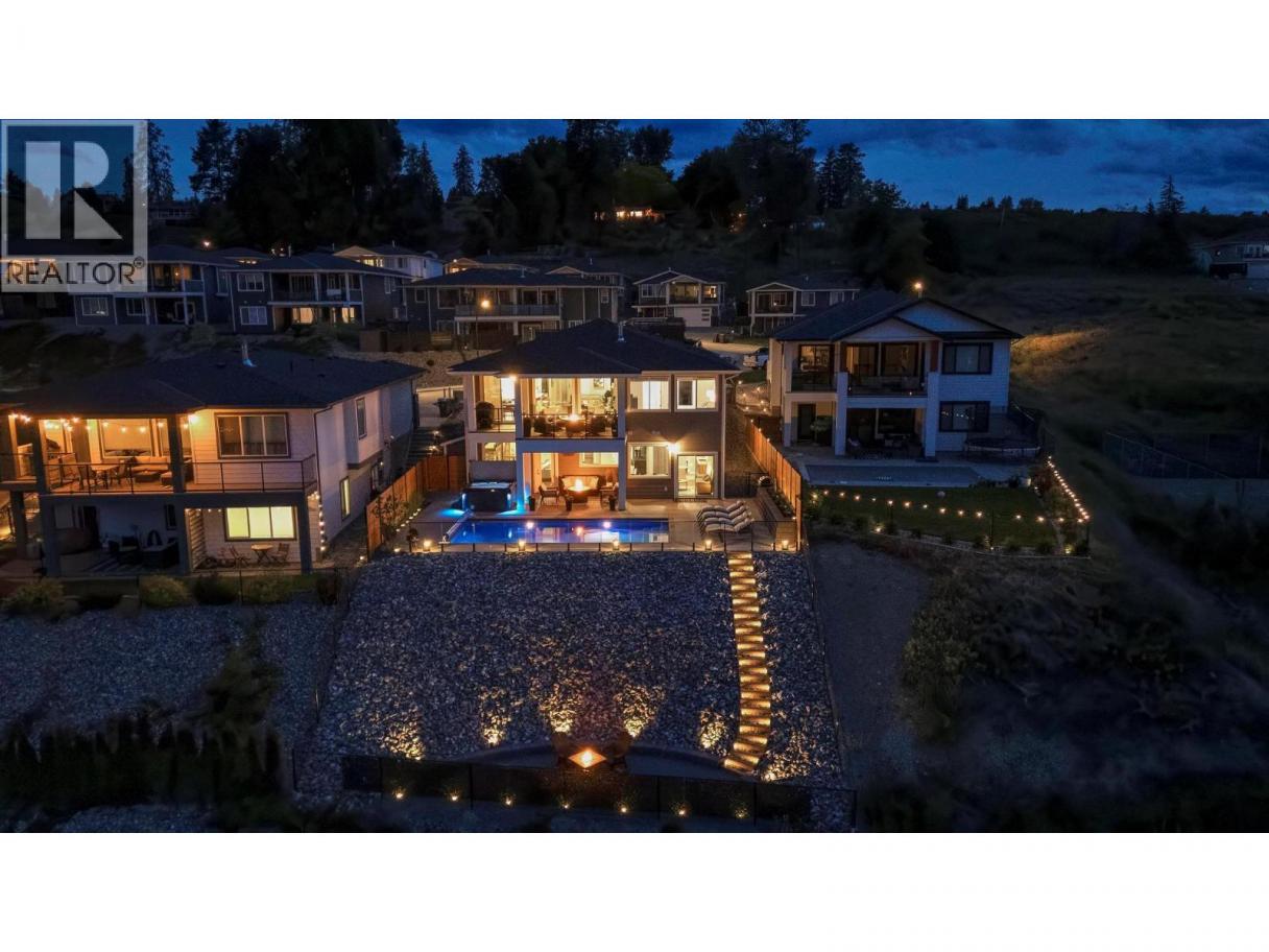 This stunning Lake Country home delivers it all: a 2-bedroom legal suite with proven Airbnb income, breathtaking lake and valley views, and a resort-style backyard oasis that defines the Okanagan dream. Offering over 3,040 sq ft of modern living, this 6-bed, 4-bath 2019-built walkout rancher blends elegance and flexibility for families and investors alike. The bright, open-concept main level showcases soaring ceilings, quartz countertops, hardwood floors, and a double-sided fireplace shared between the living room and primary suite, creating warmth and sophistication in perfect balance. The chef’s kitchen features stainless steel appliances, a large island, and seamless flow to the expansive upper deck where you’ll enjoy incredible lake and valley views, the perfect spot for morning coffee or evening wine. Step outside to pure luxury with over $250,000 invested in a complete backyard transformation featuring a heated saltwater pool, hot tub, and three firepits across multiple tiers, including a lower yard with an intimate firepit lounge. All of this is surrounded by professional landscaping and ambient lighting for unforgettable evenings. Downstairs, the beautiful 2-bedroom legal suite offers exceptional flexibility, allowing you to operate it as a lucrative Airbnb or provide comfortable extended-family living. With RV and boat parking, an epoxy-finished garage, and the option to purchase fully furnished, this home captures everything the Okanagan lifestyle promises. (id:6769)