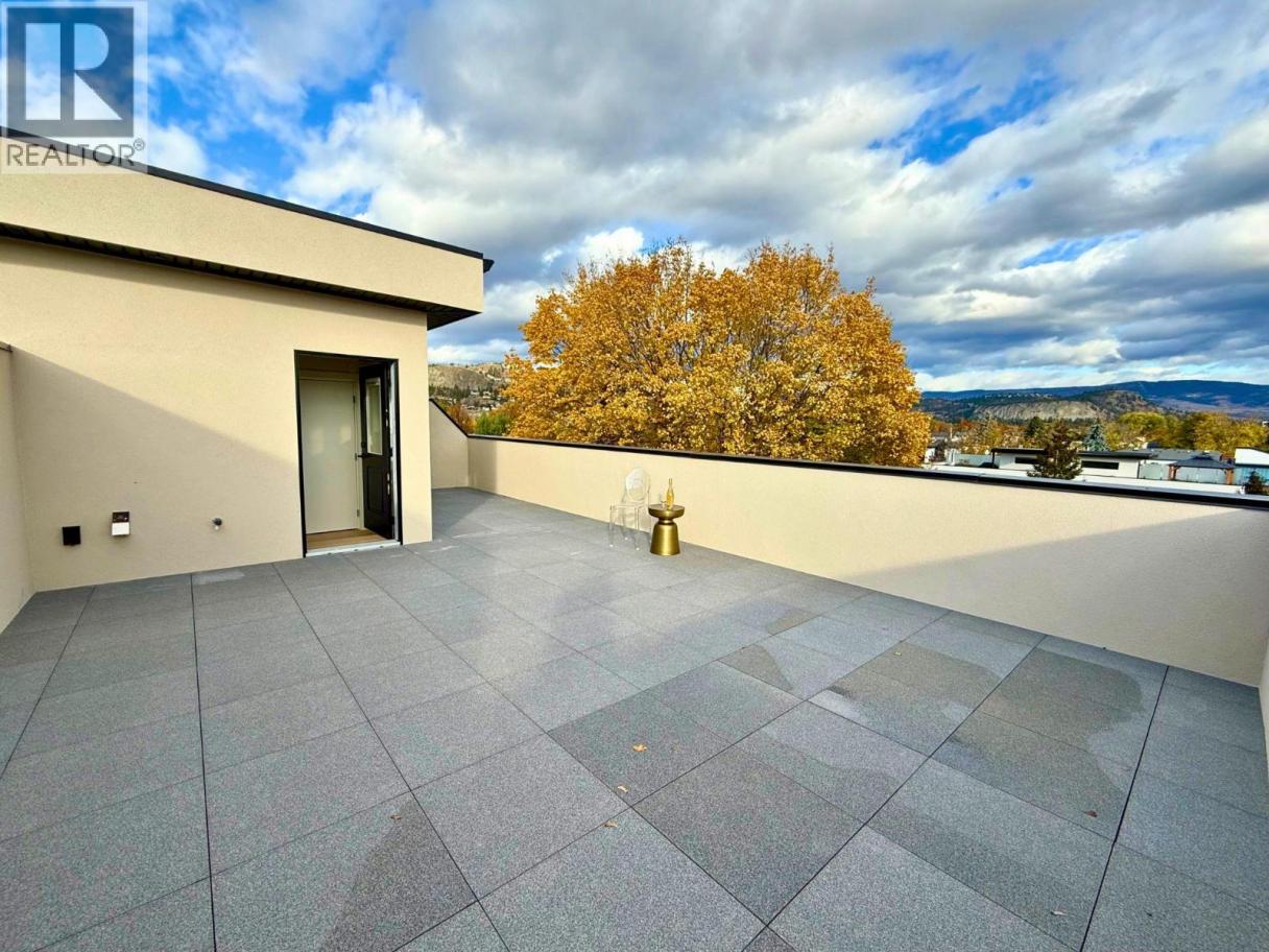 Stop compromising—this is urban living done right. THE LIFT AT MARTIN is a boutique 4-plex style Townhomes in Kelowna’s core, designed for buyers who want space, style, and convenience—without giving anything up. Each residence offers 3 full levels + private rooftop + in-unit elevator—a rare feature at this price point. (wheelchair-friendly) Over 2,100 sq ft | 4 Bed | 2.5 Bath • Private elevator to every level • Open-concept main floor with designer kitchen + hidden pantry • 4 bedrooms including flexible office/nursery options • Primary suite with spa-inspired ensuite • 536 sq ft private rooftop patio with wet bar + mountain views • Multiple outdoor spaces including balcony, fenced yard & rooftop • Dedicated laundry room+ smart, functional layout This is built for real life: work from home, host on the rooftop, lock-and-leave when you travel. Location wins: walkable to downtown Kelowna, restaurants, parks, and shops. (id:6769)