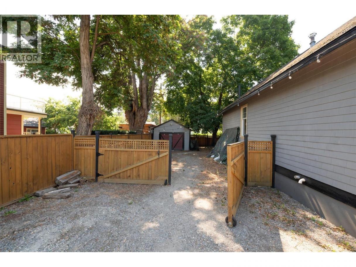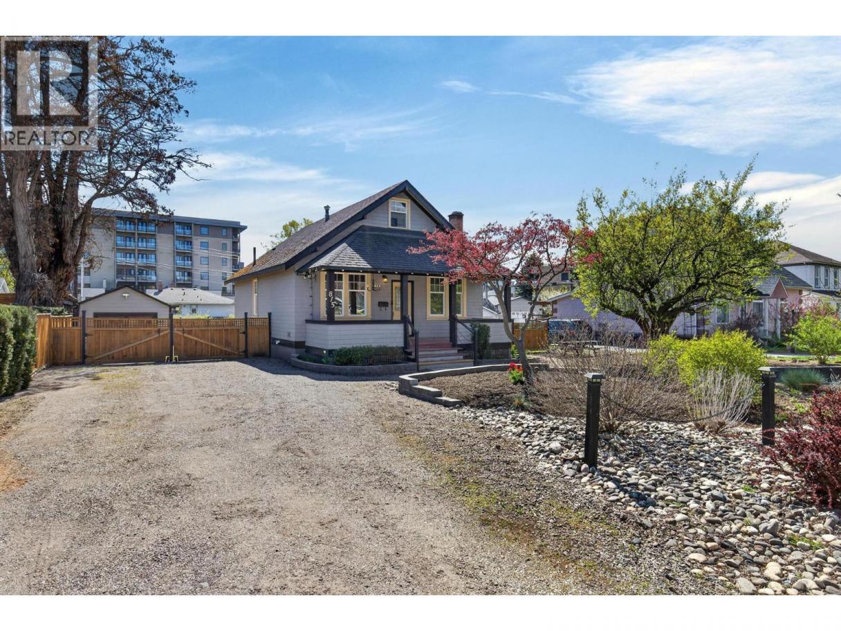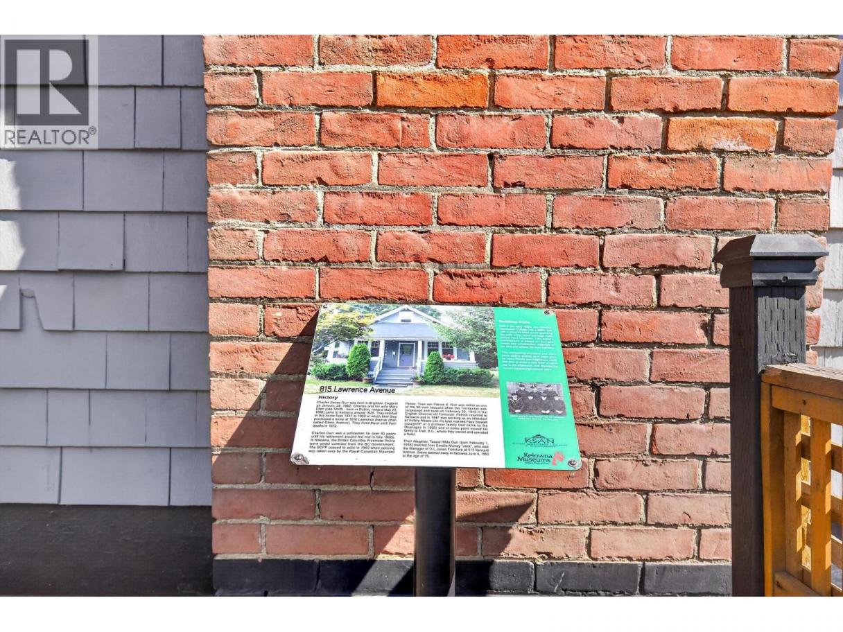 Steps away from downtown and nestled in Kelowna’s historic core, 815 Lawrence Ave seamlessly blends heritage charm with modern comfort. Known as the “Gurr House,” this 1920 Craftsman bungalow holds a special place in the Bernard, Lawrence neighbourhood, valued for its architectural character and connection to one of Kelowna’s early prominent citizens. Set on a generous 75' x 118' (.21 acre) lot with rear lane access, the home with 10' ceilings has been tastefully updated with, double-glazed windows, and major upgrades including electrical, plumbing, furnace, and hot water on demand. The upper level offers a private primary retreat with a Juliet balcony and ensuite, while the main floor features open-concept living and dining with a decorative brick fireplace, a bright kitchen with access to a covered deck, plus two bedrooms, an office, and a full bath. Outside, enjoy a fenced, zero-scape yard with in-ground irrigation, a detached single-car garage, and ample parking. Just steps to downtown amenities, beaches, restaurants, and shopping, this property offers both lifestyle appeal and future development potential. (id:6769)